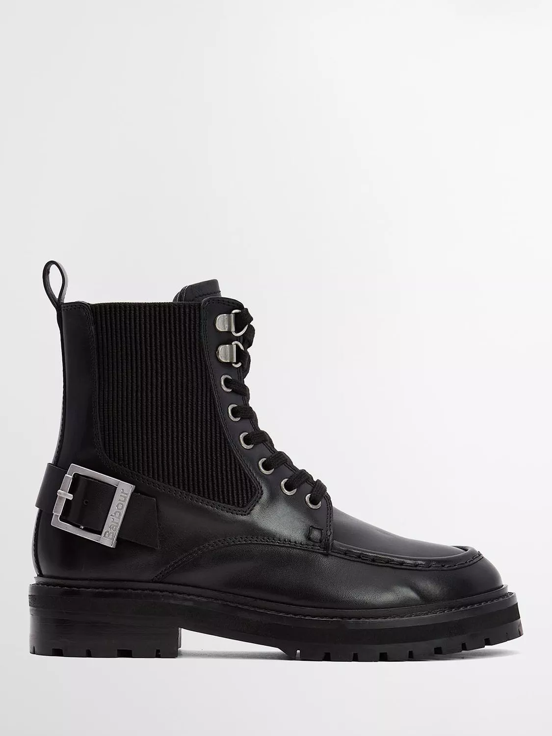 Inspired by the trends of the season, these Barbour Leonie Lace-Up Boots bring together the rugged utility style of biker boots with their chunky cleated sole, branded buckle detail and lace-up fastening, while a hand-stitched moccasin toe gives them a contemporary look. Crafted from 100% leather, they add a premium finish to any look.