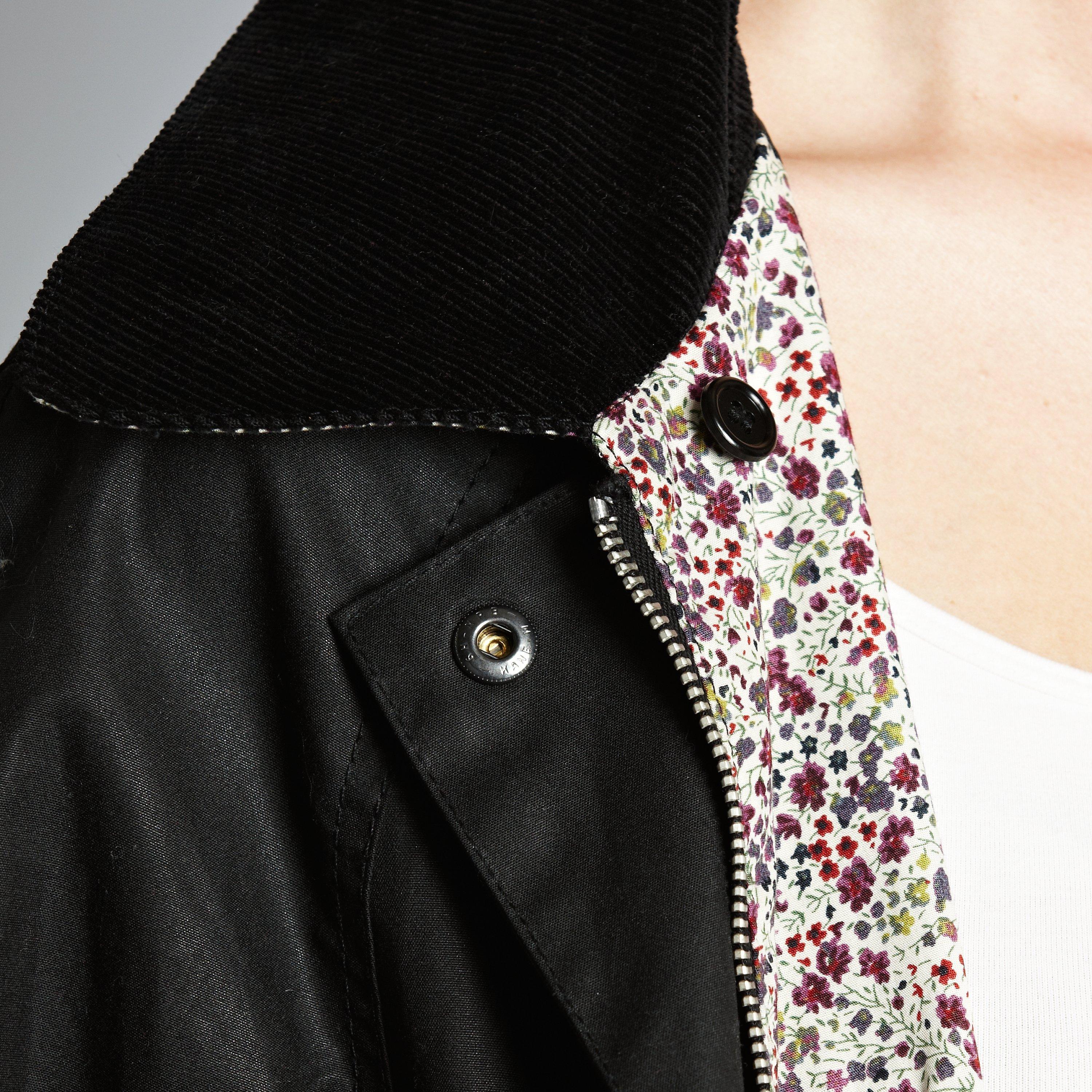 A traditional sylkoil waxed style Barbour lined in a charming Liberty Print, the Beadnell offers an interactive zip-in liner, a cord textured collar, poppers for optional hood attachments and deep front pockets.