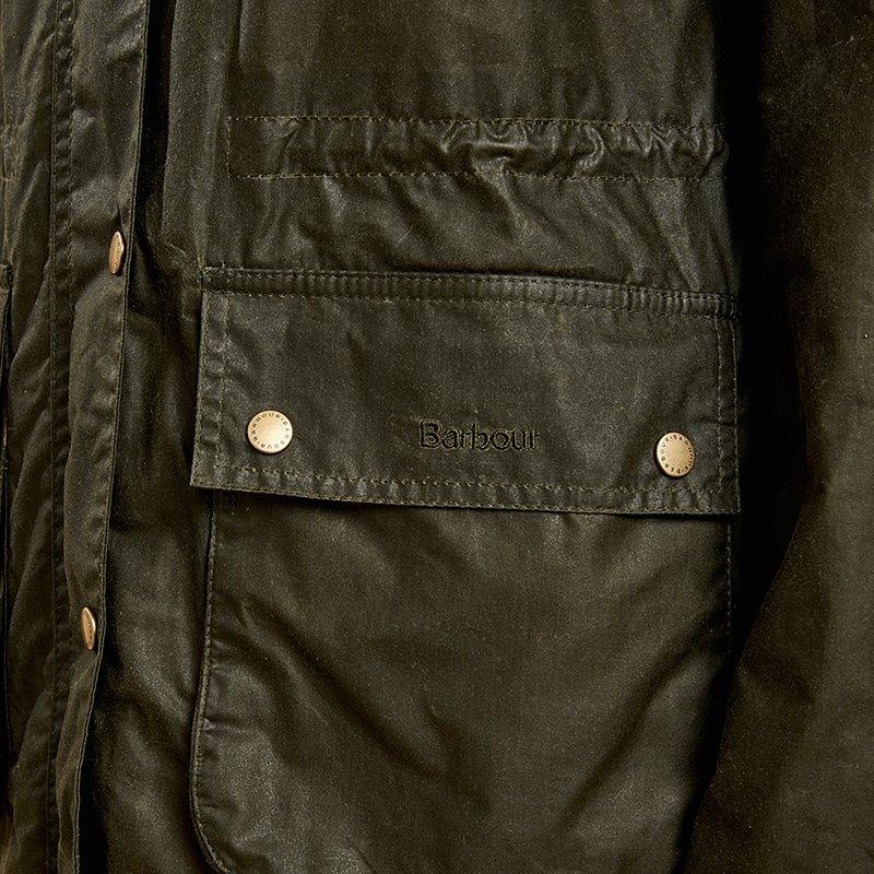 Composed of quality waxed cotton, this outerwear essential features a concealed zip fastening with press stud storm flap, two front flapped pockets, a generous hood and tartan lining which gives a nod to the brand's heritage.