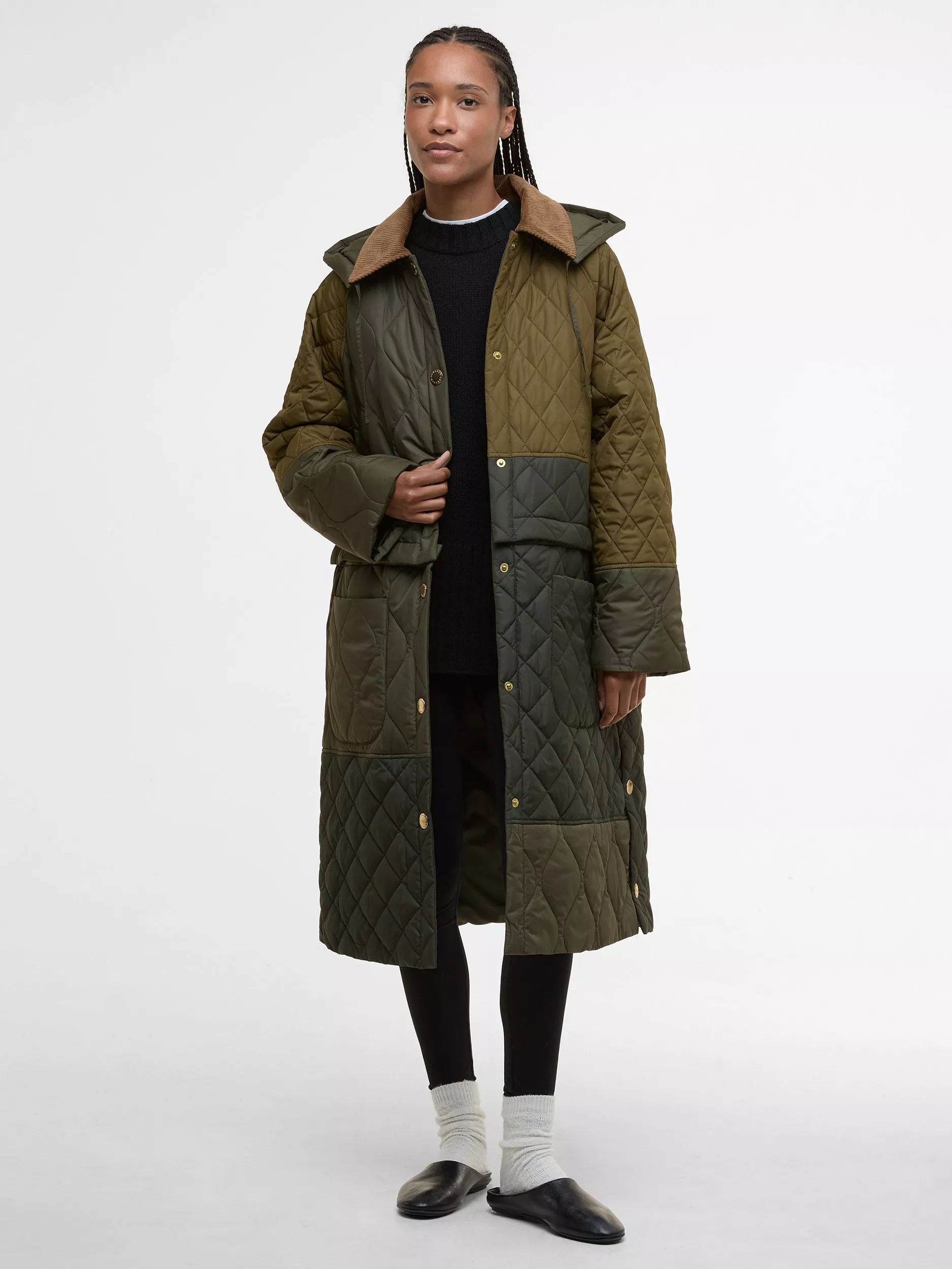 Alongside Barbour's signature waxed cotton, the Barbour archives feature a variety of quilting designs as showcased on the Barbour Lilian Quilted Jacket. Not only does this longline jacket feature a patchwork of onion, two-inch diamond and two-inch box quilting for a contemporary yet heritage-inspired look, it also offers the option to detach the hood and lower body section for a 2-in-1 look.