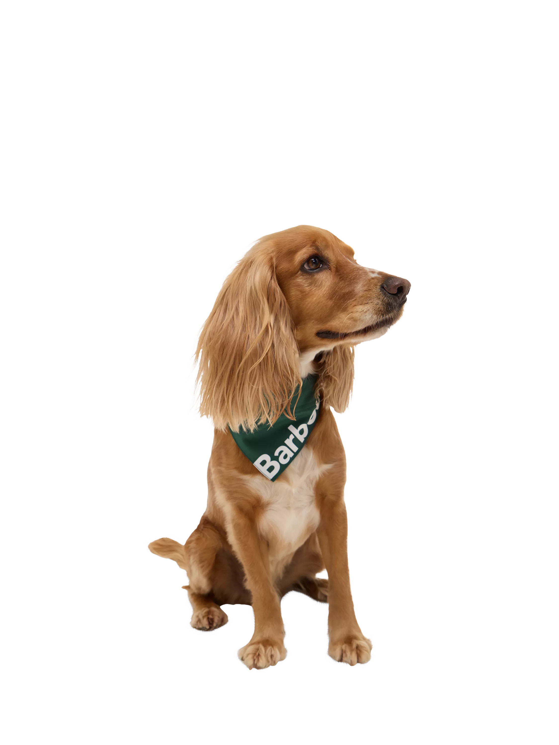 The Barbour Logo Dog Bandana is crafted from 100% cotton in a triangular shape, designed to fit comfortably over Barbour dog collars. Featuring an oversized Barbour logo print, this stylish accessory adds a touch of signature heritage branding to your pet’s everyday look, combining practicality with distinctive, playful design.