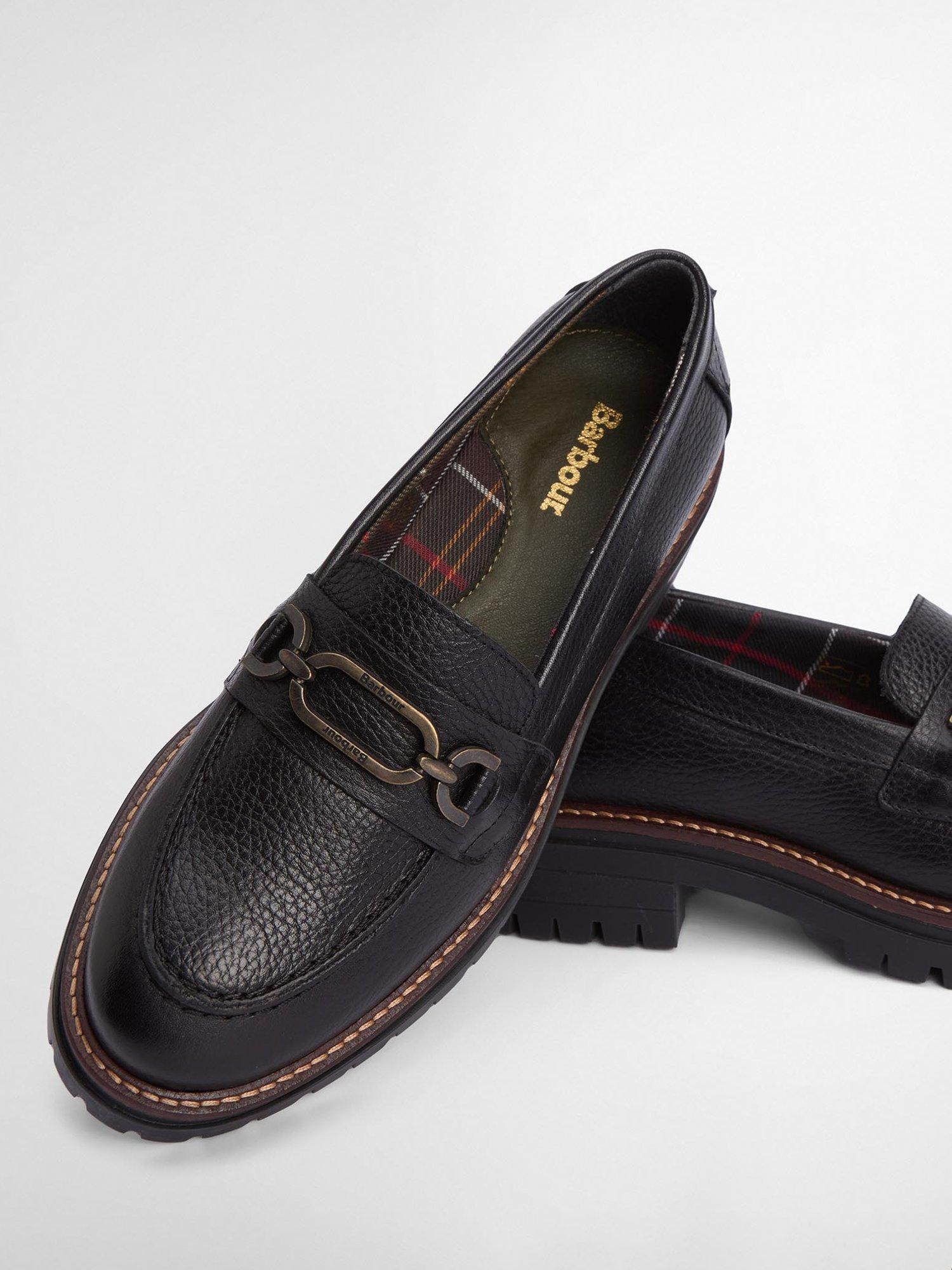 The Barbour Maddie Loafers are expertly crafted from premium leather for soft, supple comfort all day long. Designed with a durable rubber sole and a low heel, this polished pair is elevated with antique brass hardware detailed with Barbour embossing for a signature finish.