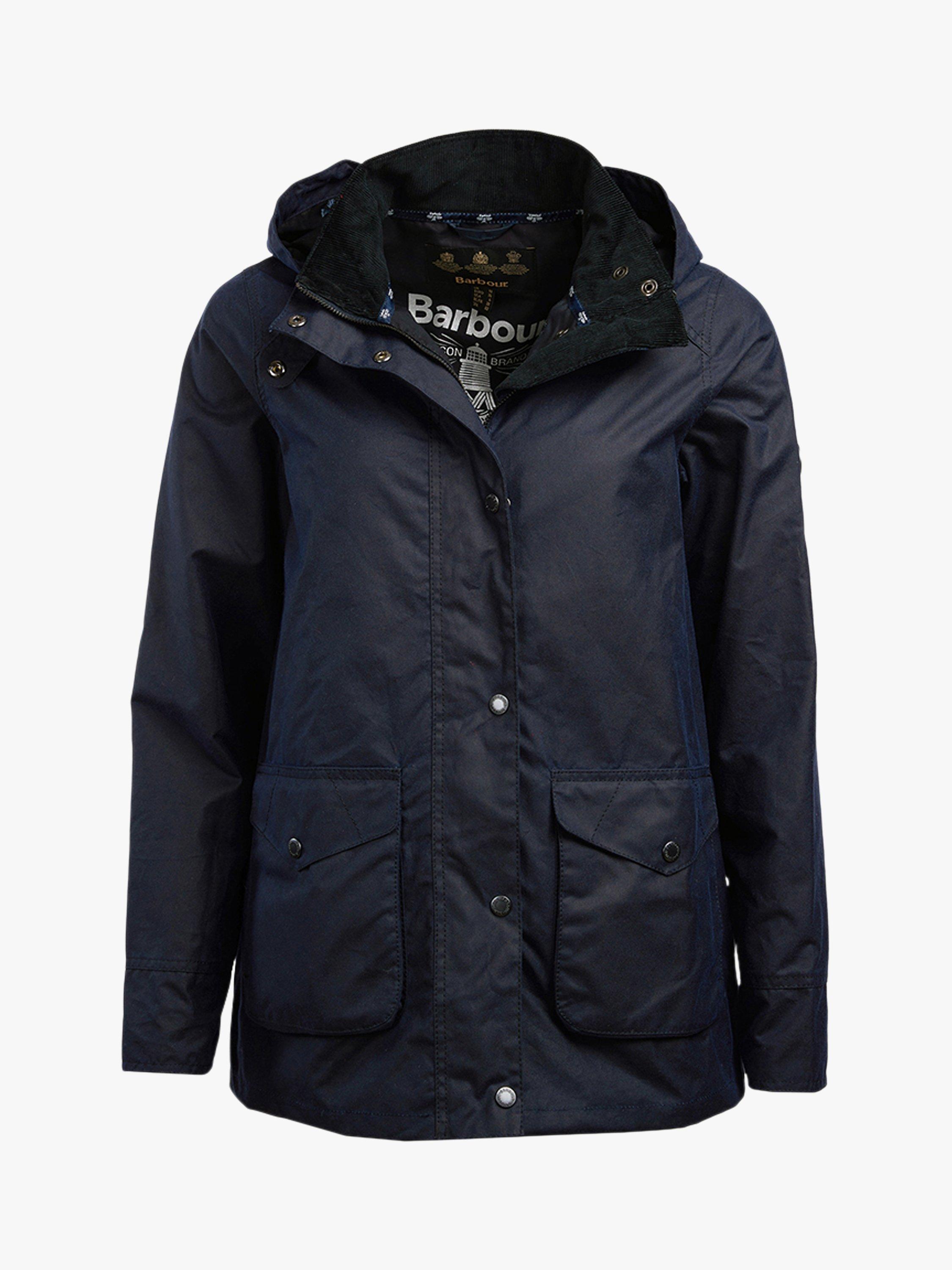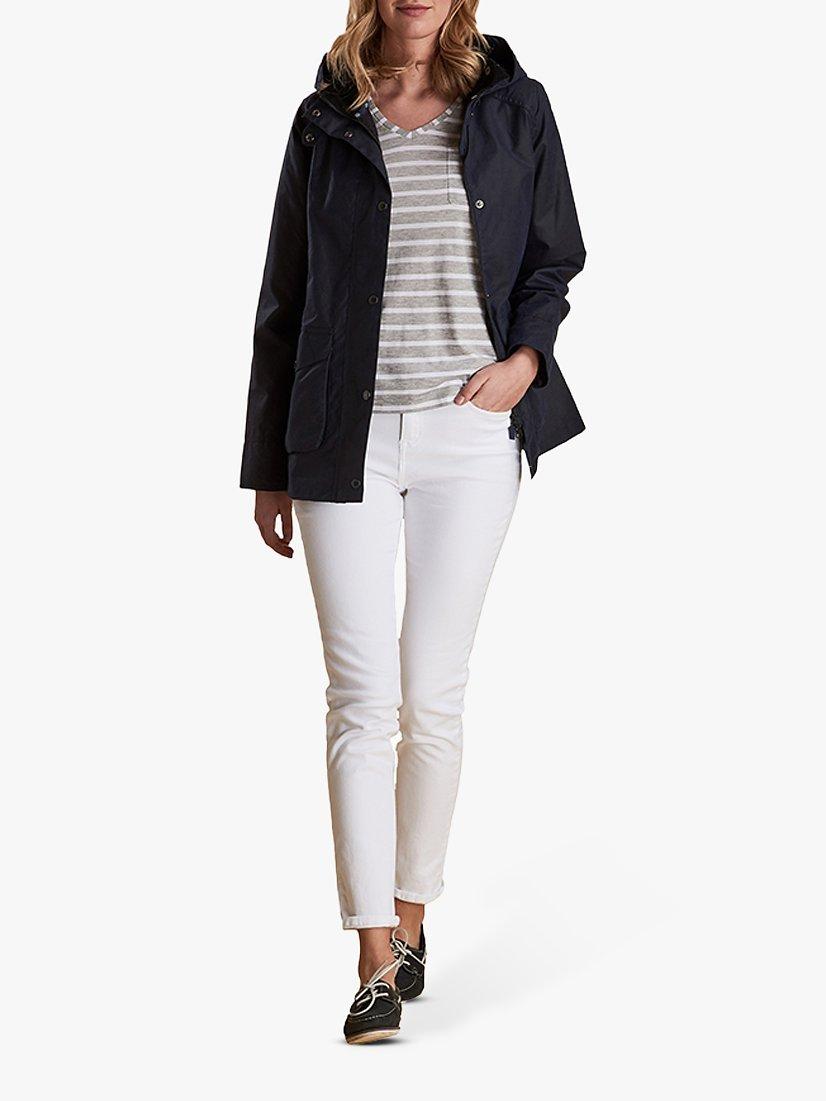 An outerwear staple in waxed cotton to protect from the rain, this jacket from Barbour has a neat silhouette so you can wear it in the city and country. Part of the brand's coastal collection with bellowed pockets, stitch detailing and a curved back yoke, it is finished with a cord inner collar for textural contrast.