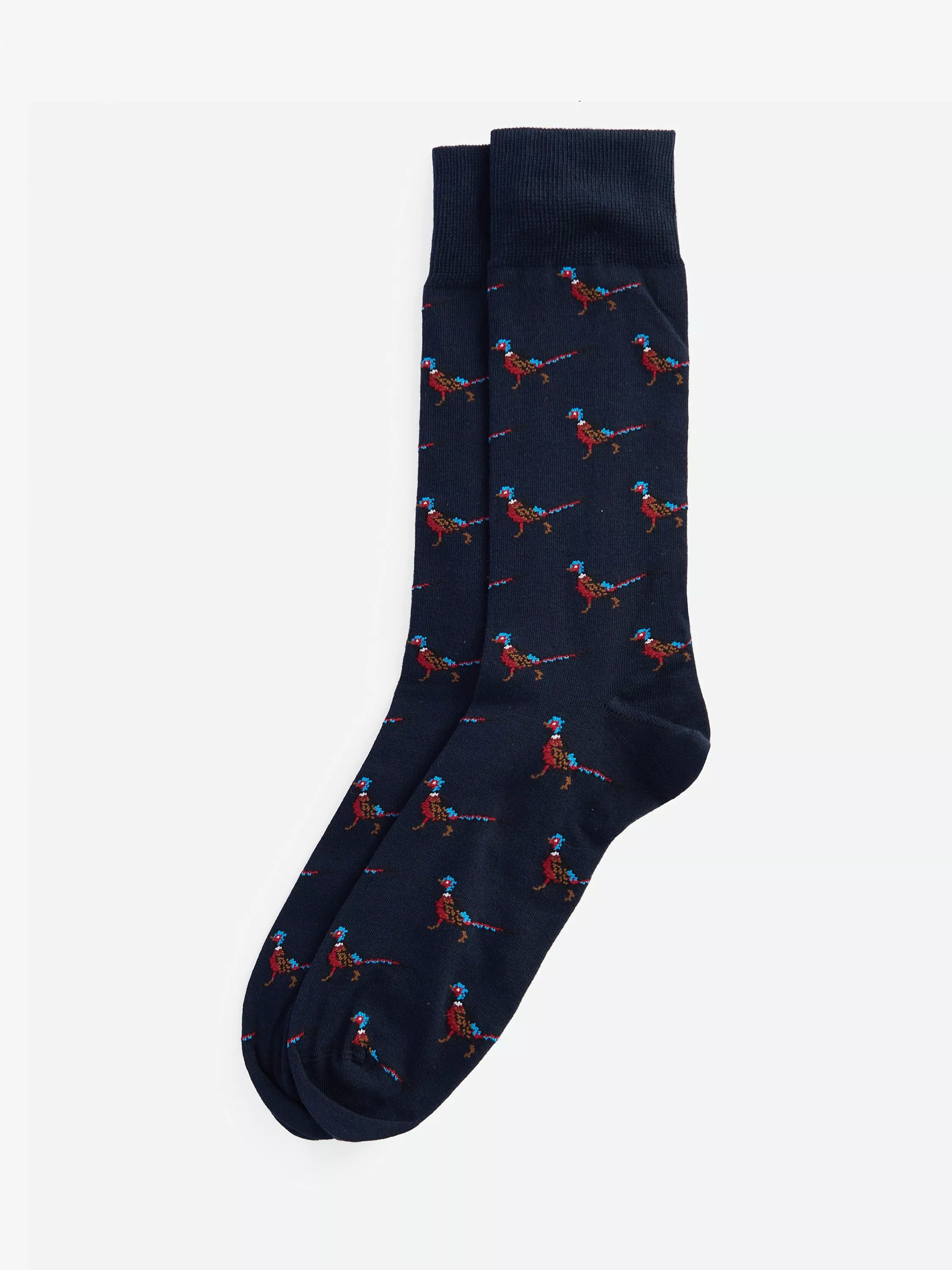 Barbour's Mavin socks are constructed in an intarsia knit with a playful patterned pheasant design. Cut to an ankle length, they're made from a comfortable stretch-cotton blend and finished with an elasticated ribbed cuff for a secure hold.