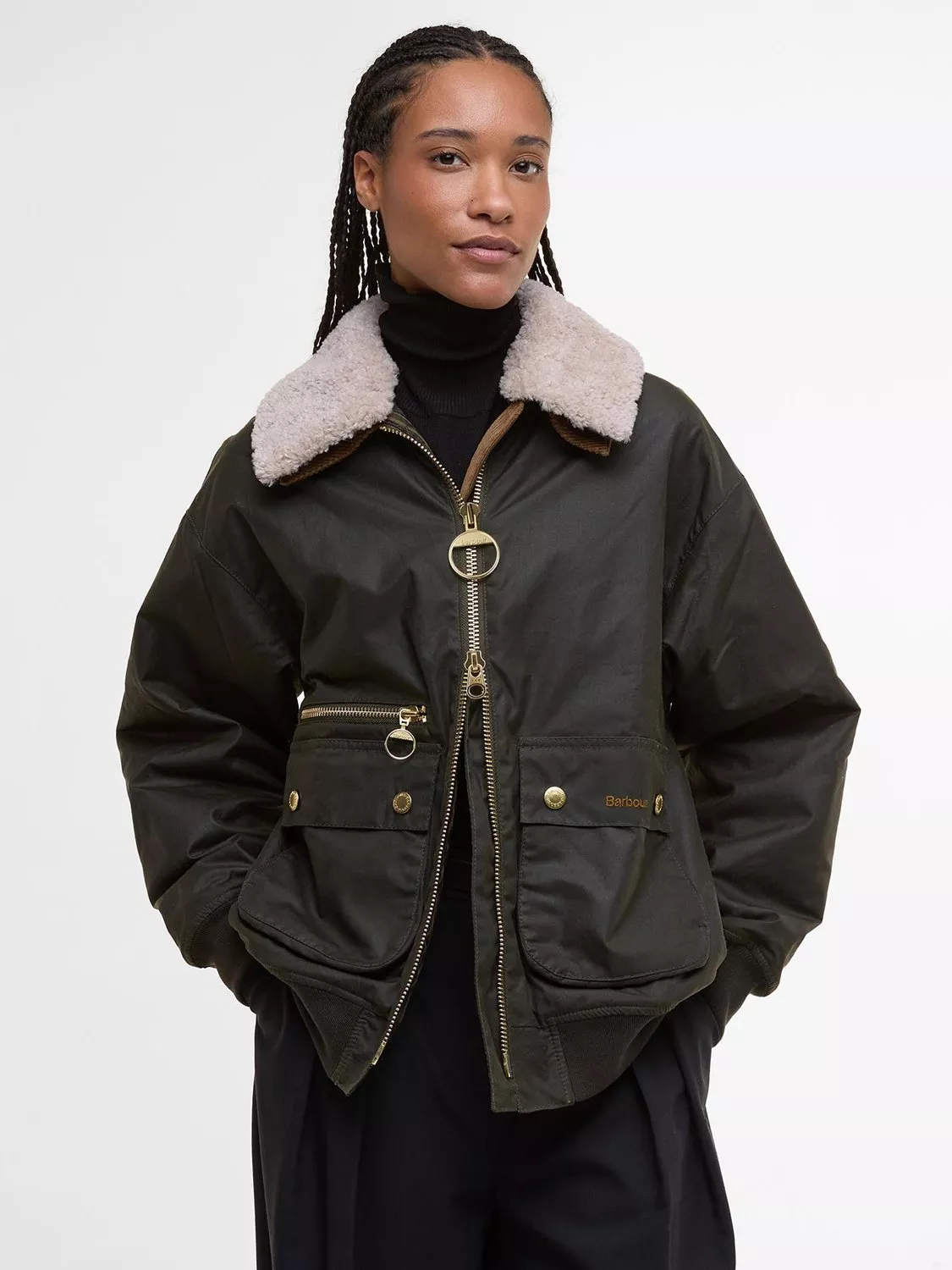 This oversized jacket combines timeless charm with practical functionality, featuring a detachable teddy collar, durable metal zip, and classic ribbed cuffs for a contemporary look.
