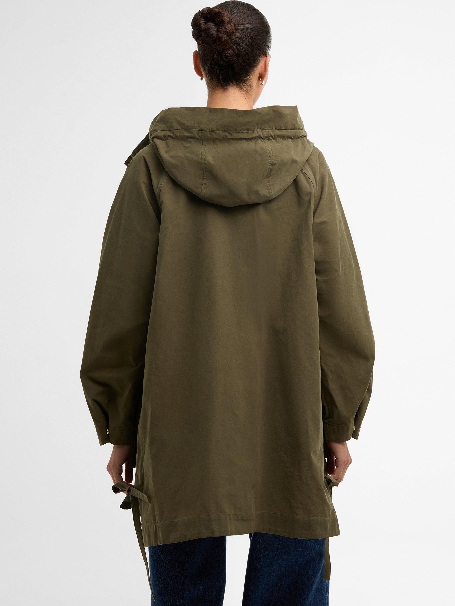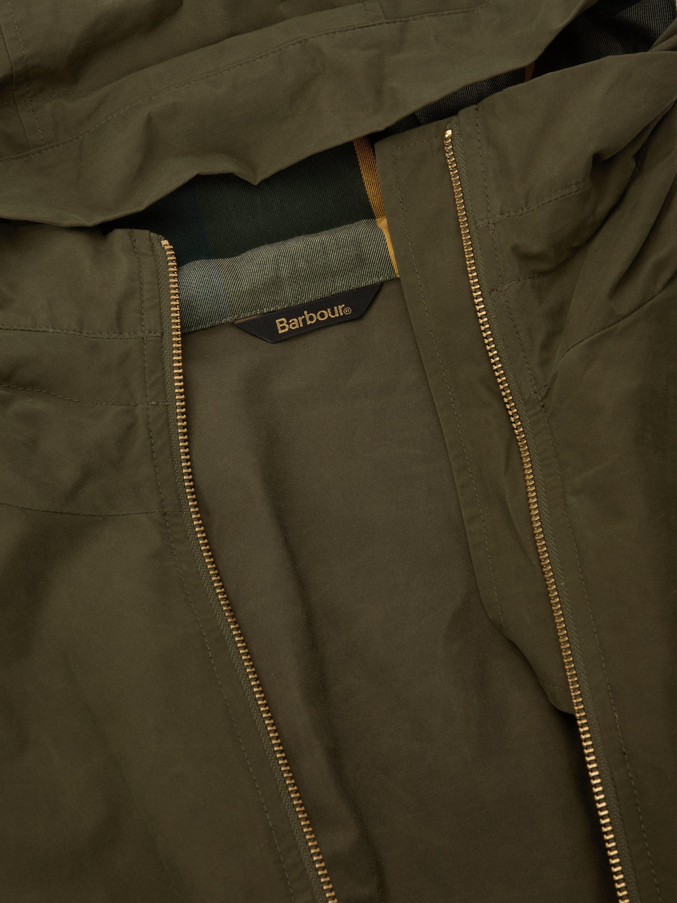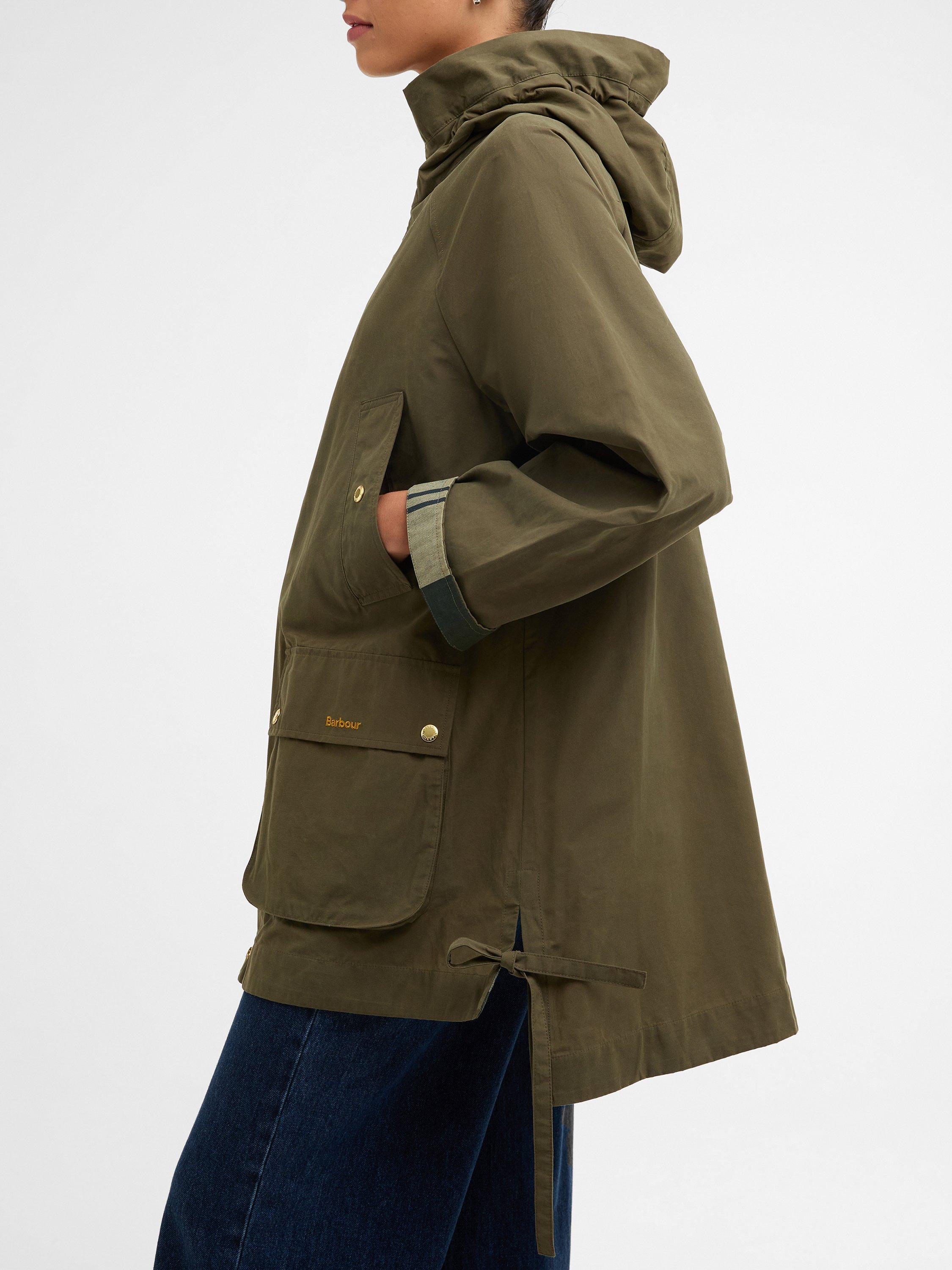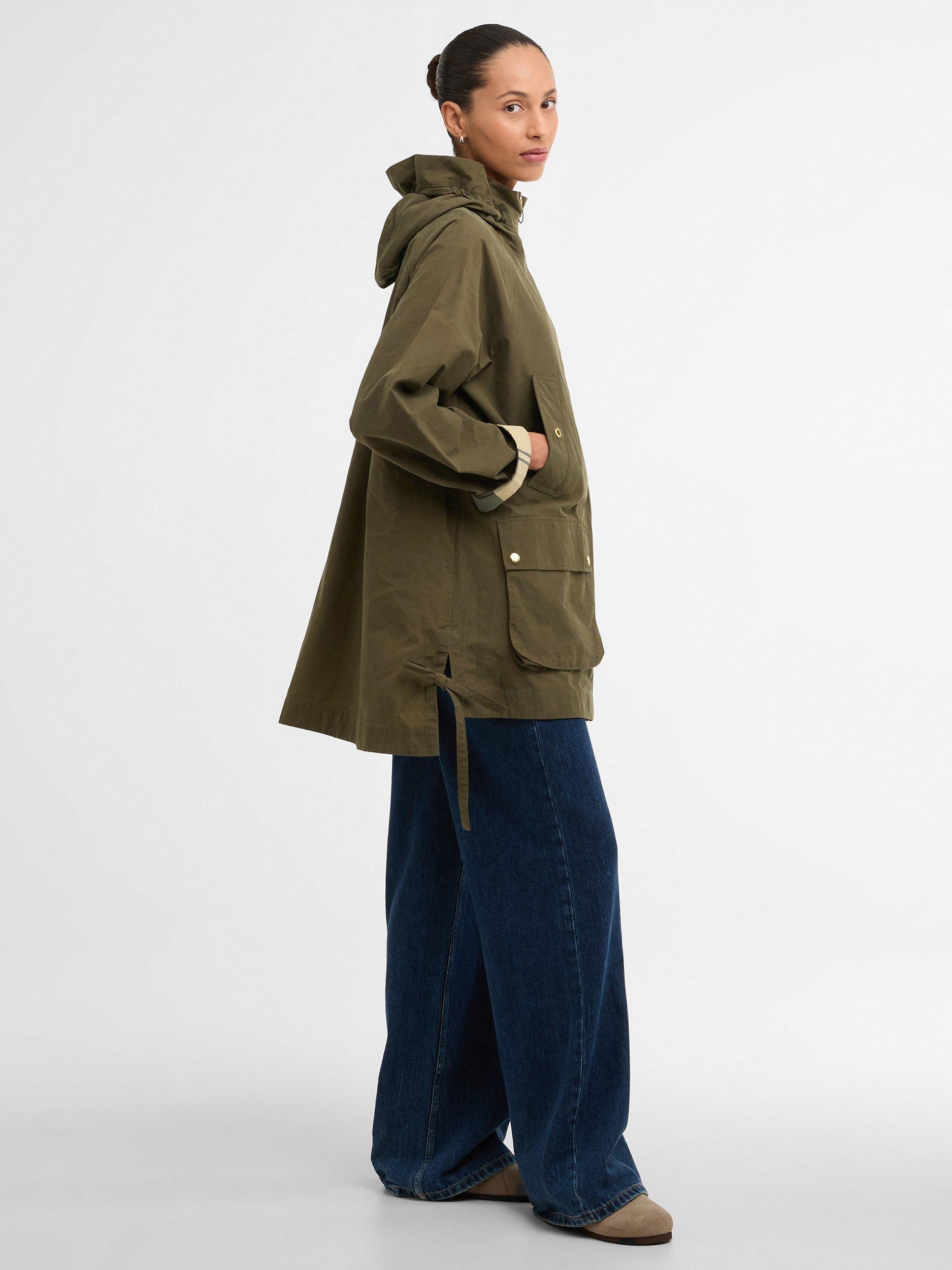 Designed with plenty of functional accents, this showerproof coat by Barbour comes in a flattering longer length and fastens with a practical zip.
