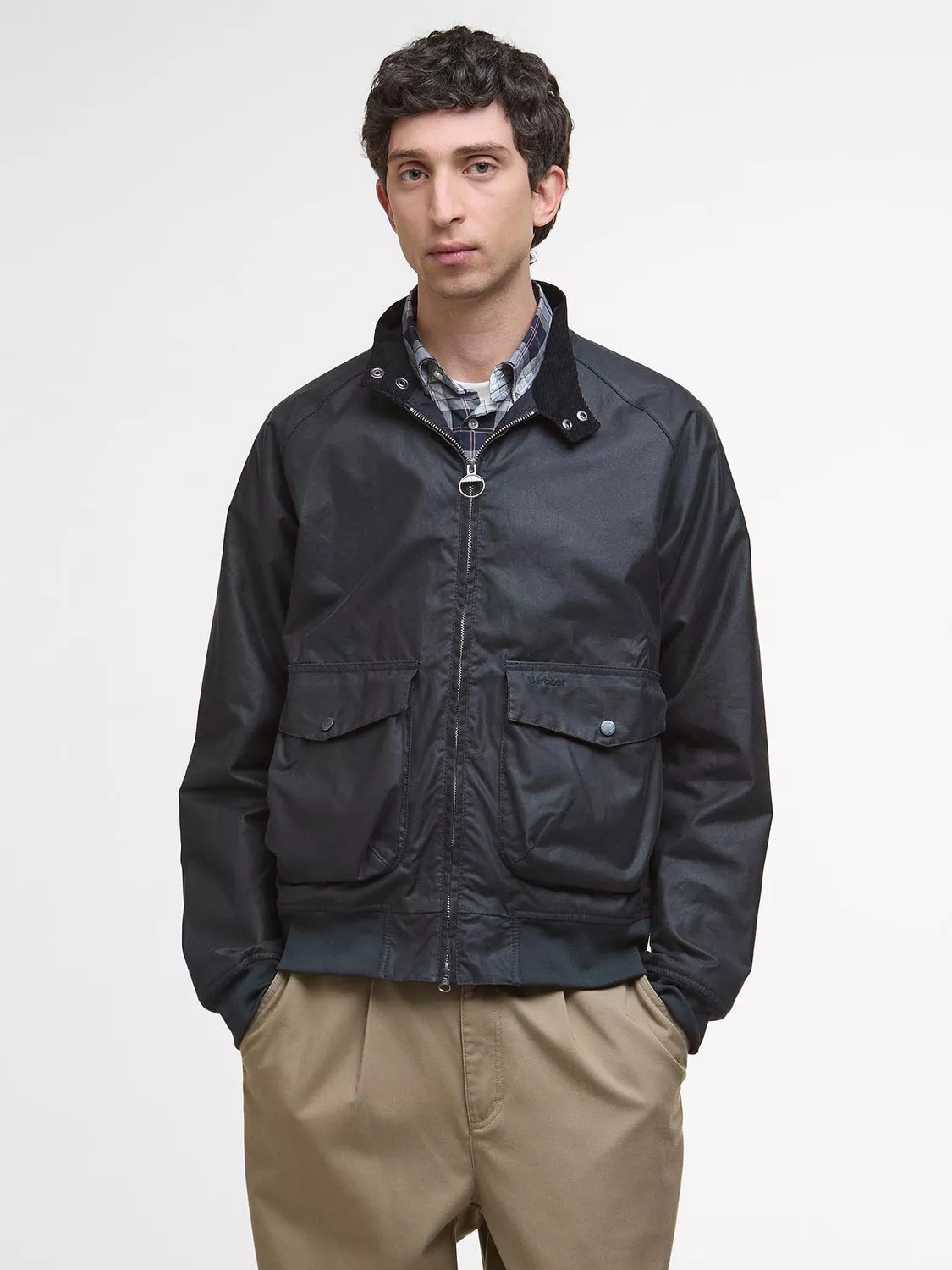 Crafted from Barbour's signature waxed cotton, the Modern Royston Waxed Jacket offers a high level of protection from the elements. The jacket is inspired by classic Harrington silhouettes and has a streamlined, modern fit. It features a two-way zip that goes up to a stand collar with a soft needlecord lining. Finished with ribbed cuffs and hem, the jacket has an authentic, sporty feel.