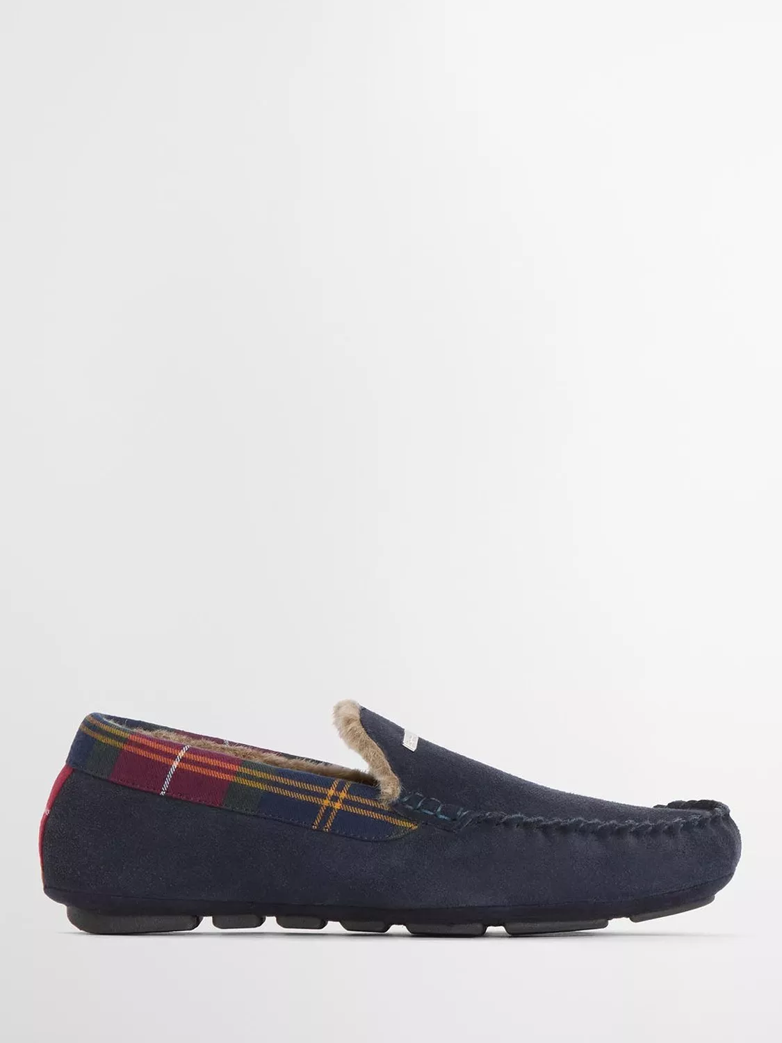These flexible feel moccasin slippers have suede uppers detailed with tartan trims for a nod to Barbour’s heritage.