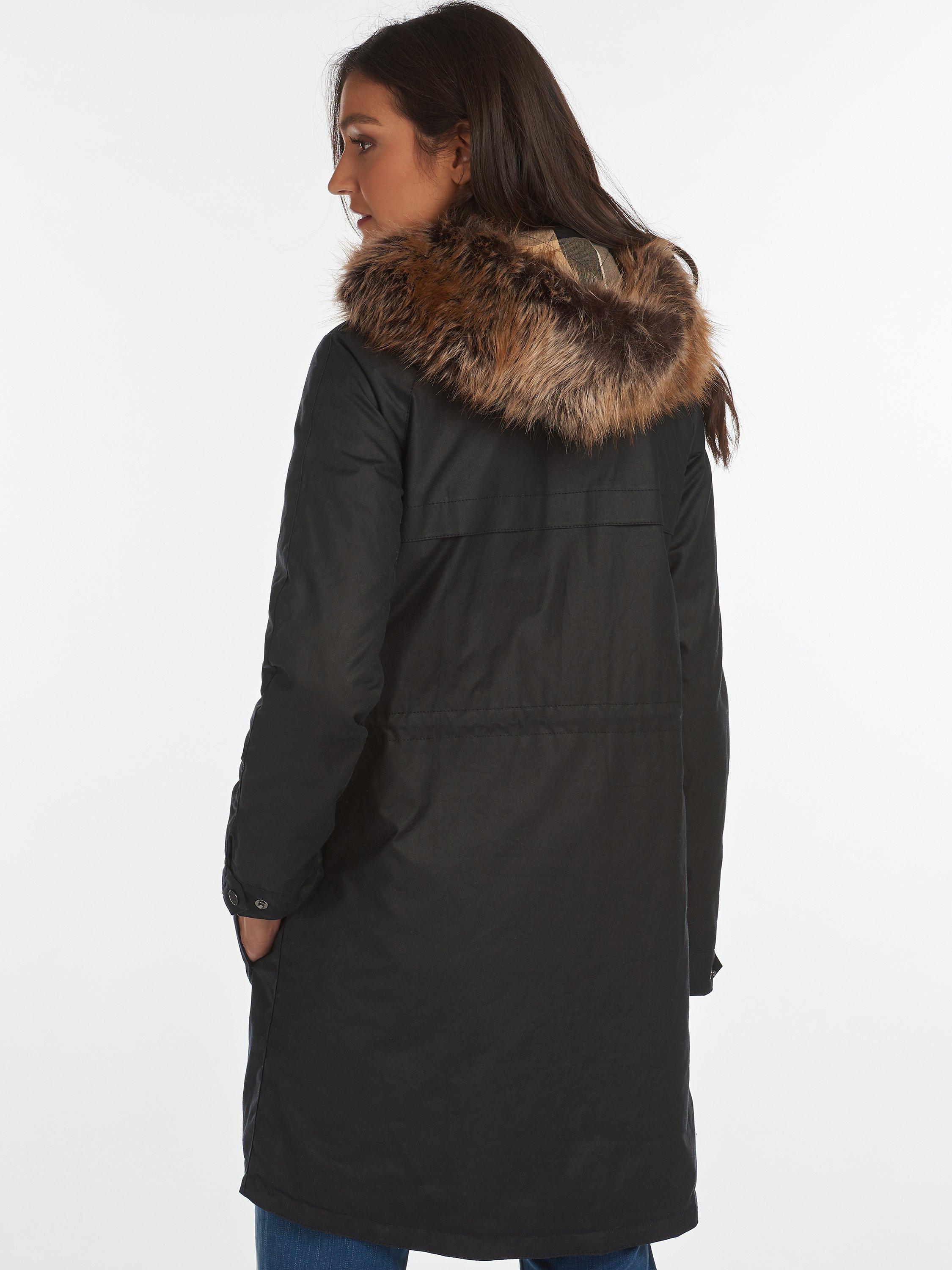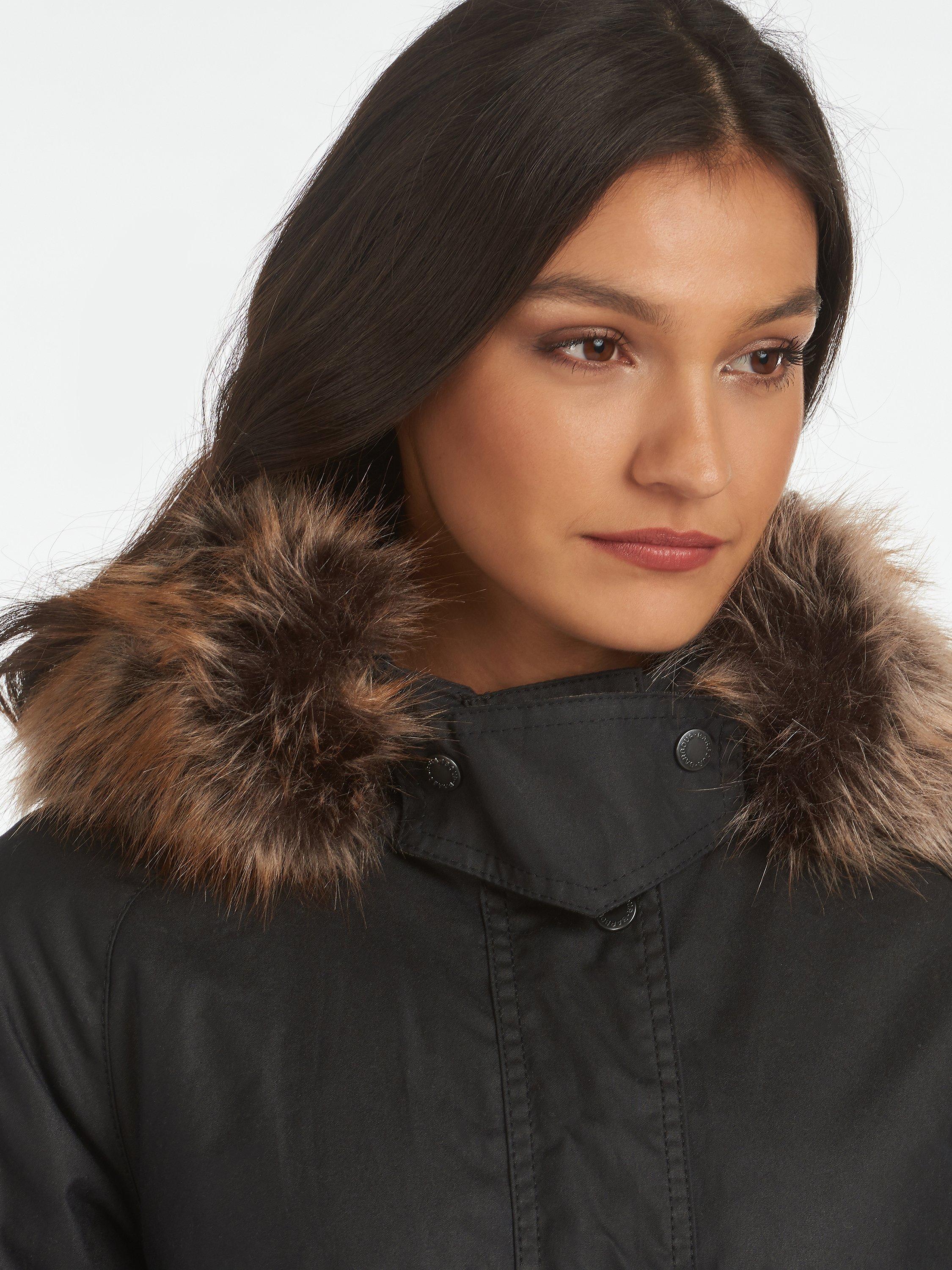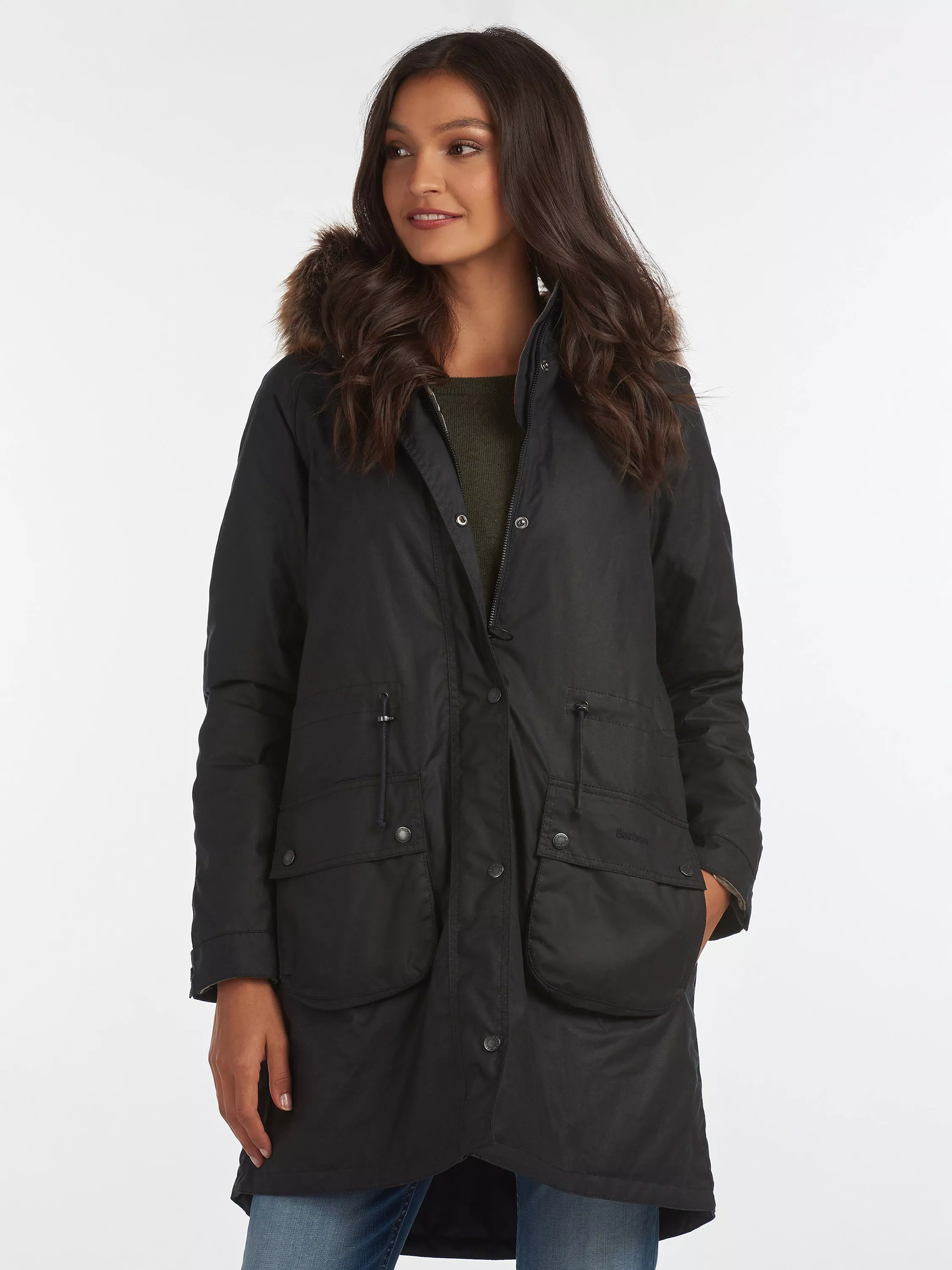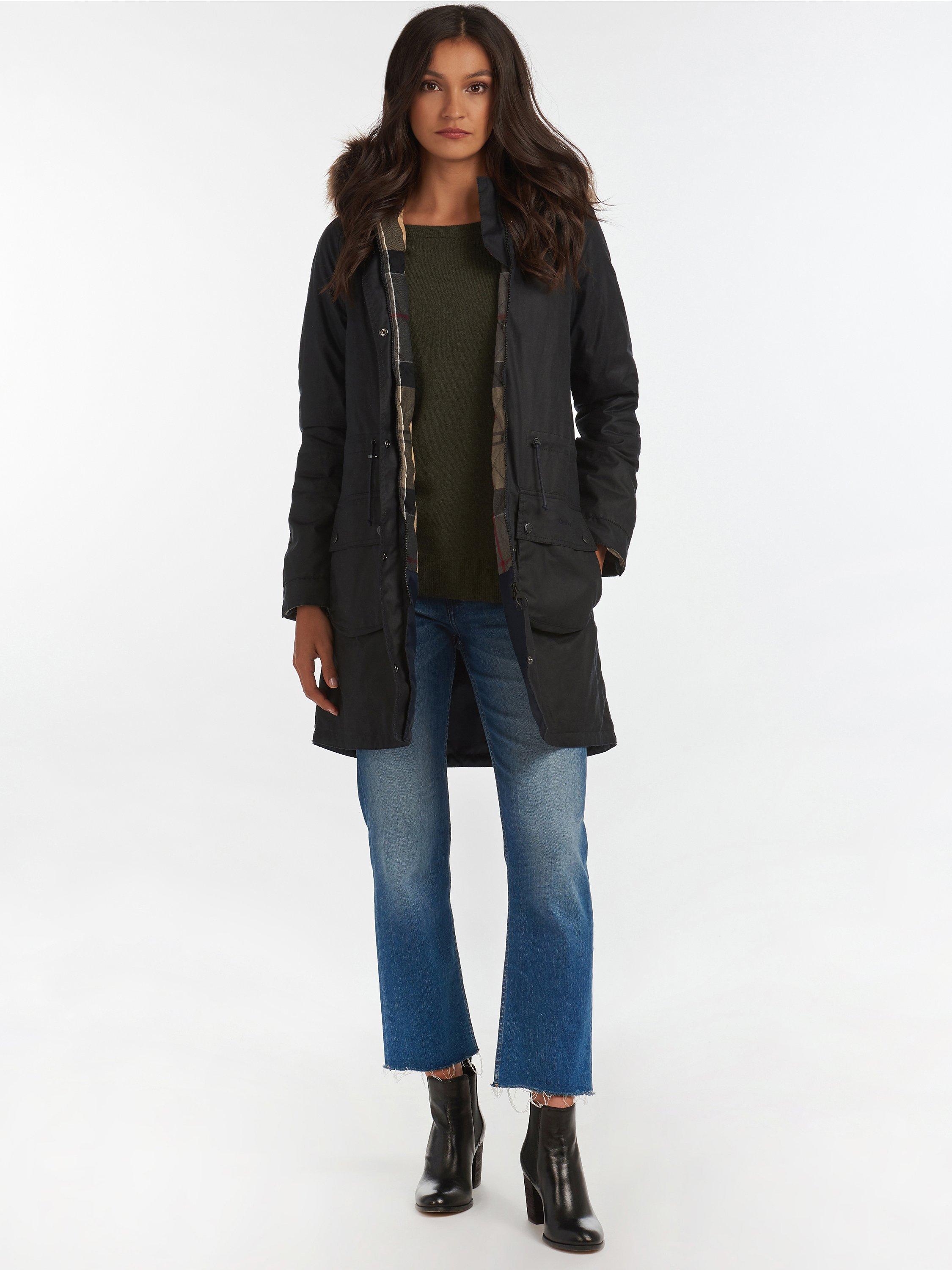 Adapted to suit the colder months with a faux fur trim hood, this Mull jacket from Barbour is a go-to for country walks. Made from waxed cotton, it has a heritage-inspired tartan lining, a drawcord to shape the waist and signature patch pockets topped with branded popper fastenings.
