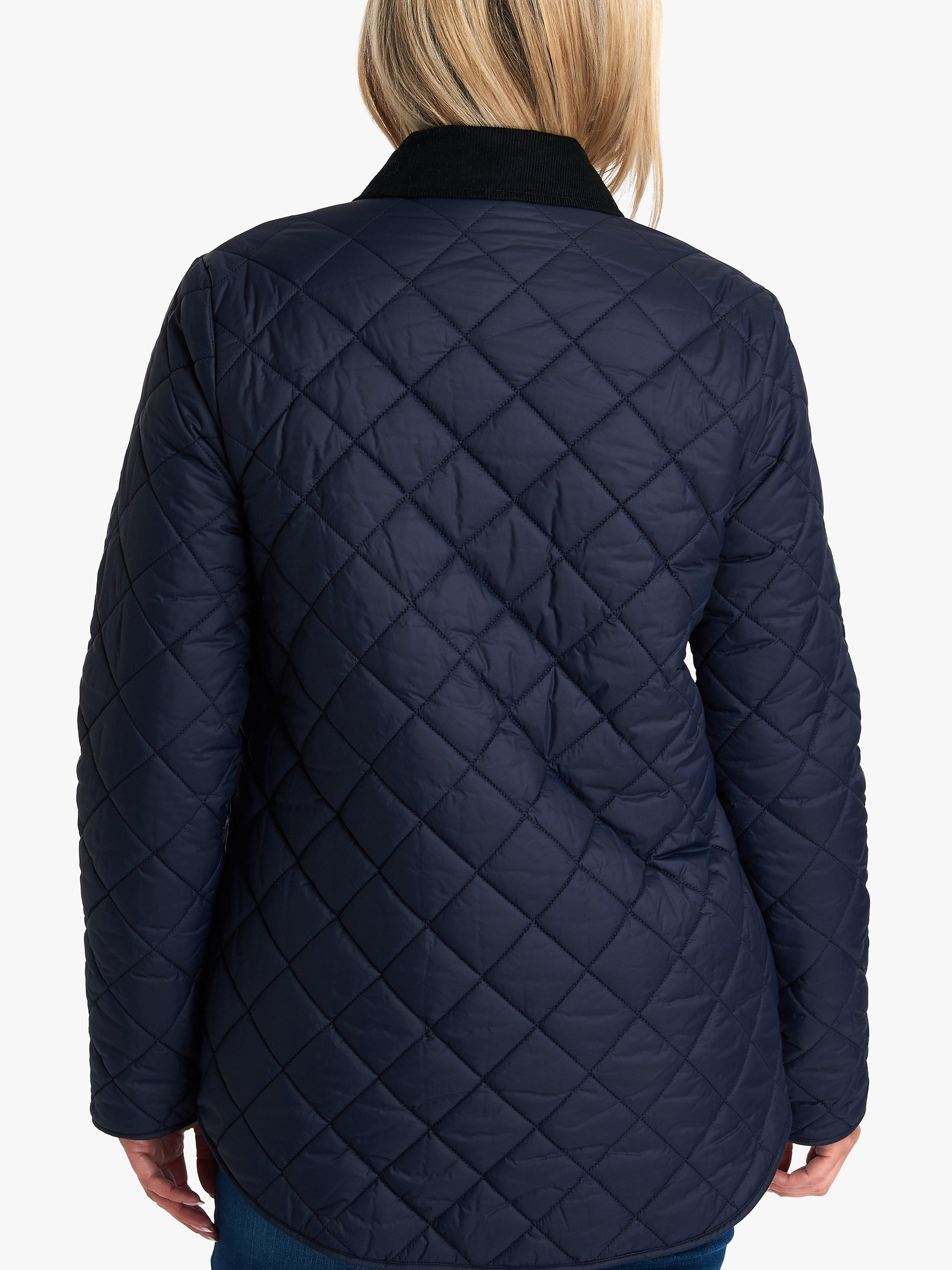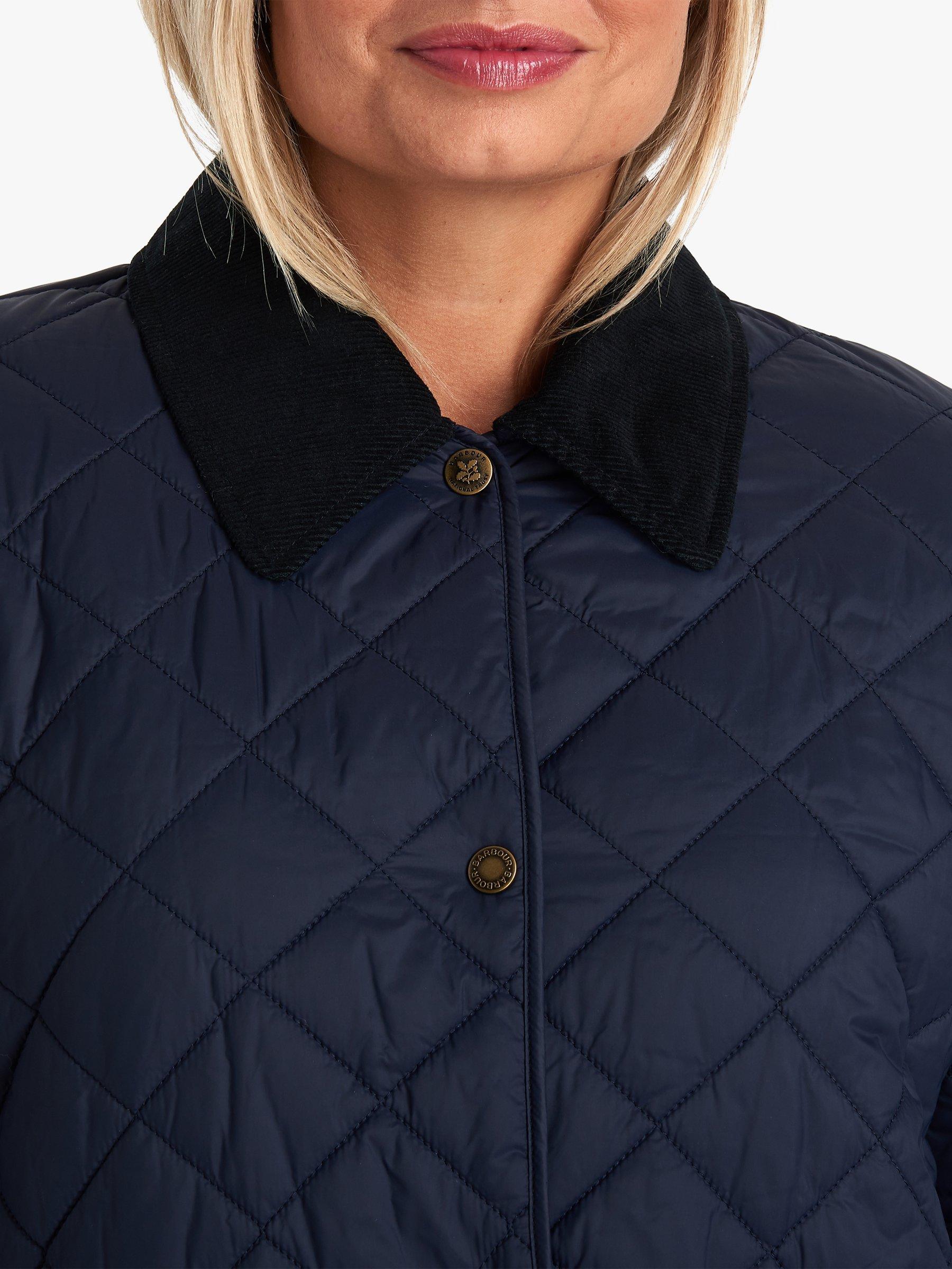 The Moor jacket is an updated version of Barbour's classic quilt with a traditional cord collar as well as patch pocket detailing. Part of the National Trust collection, with a slightly tapered silhouette to give it a contemporary look and feel, this outerwear staple is finished with Barbour and National Trust's unique stud detailing.