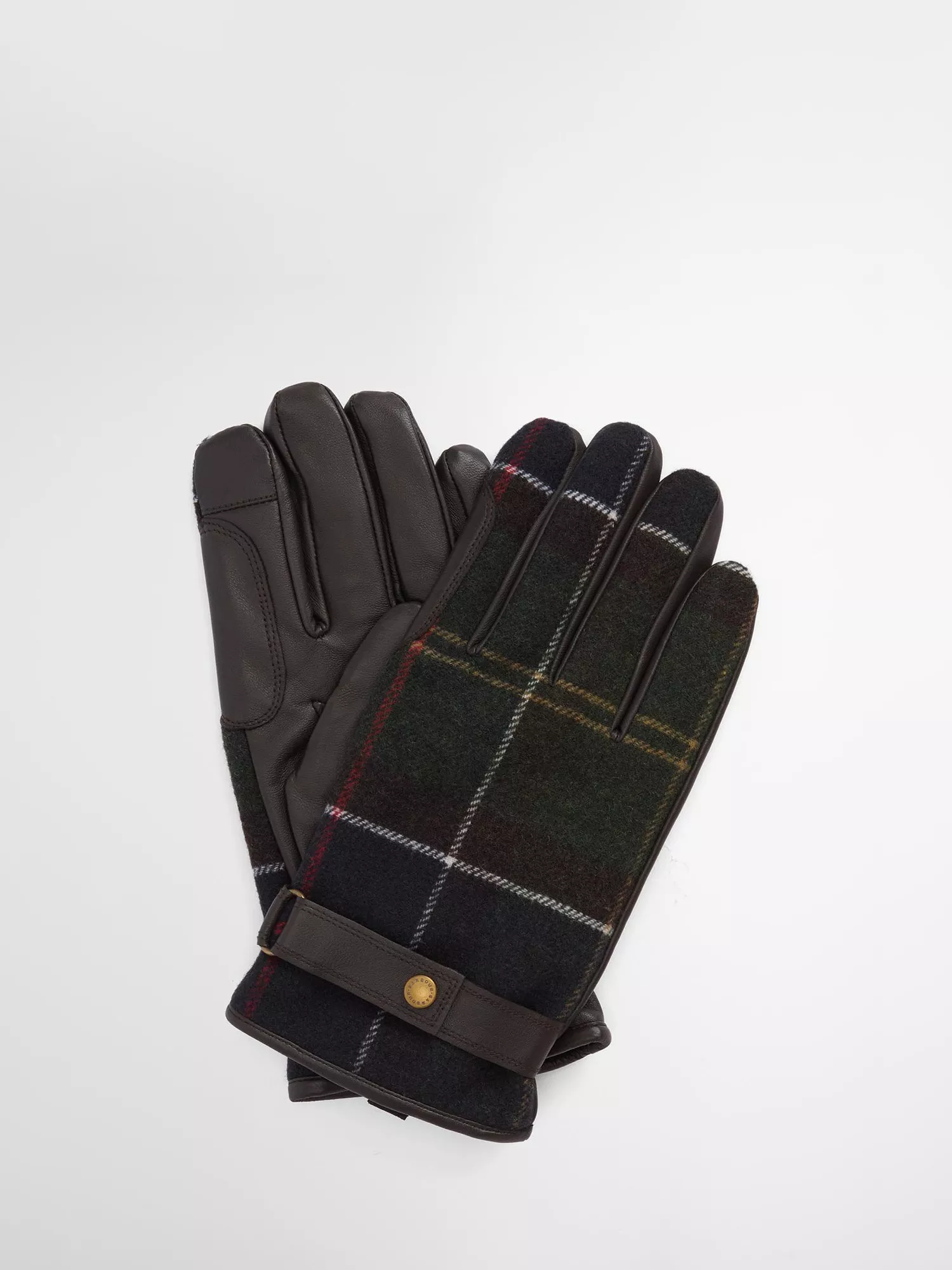 These waterproof gloves combine rich leather with wool-blend fabric in Barbour's classic tartan. A stud-fastening strap at the cuff allows an adjustable fit.
