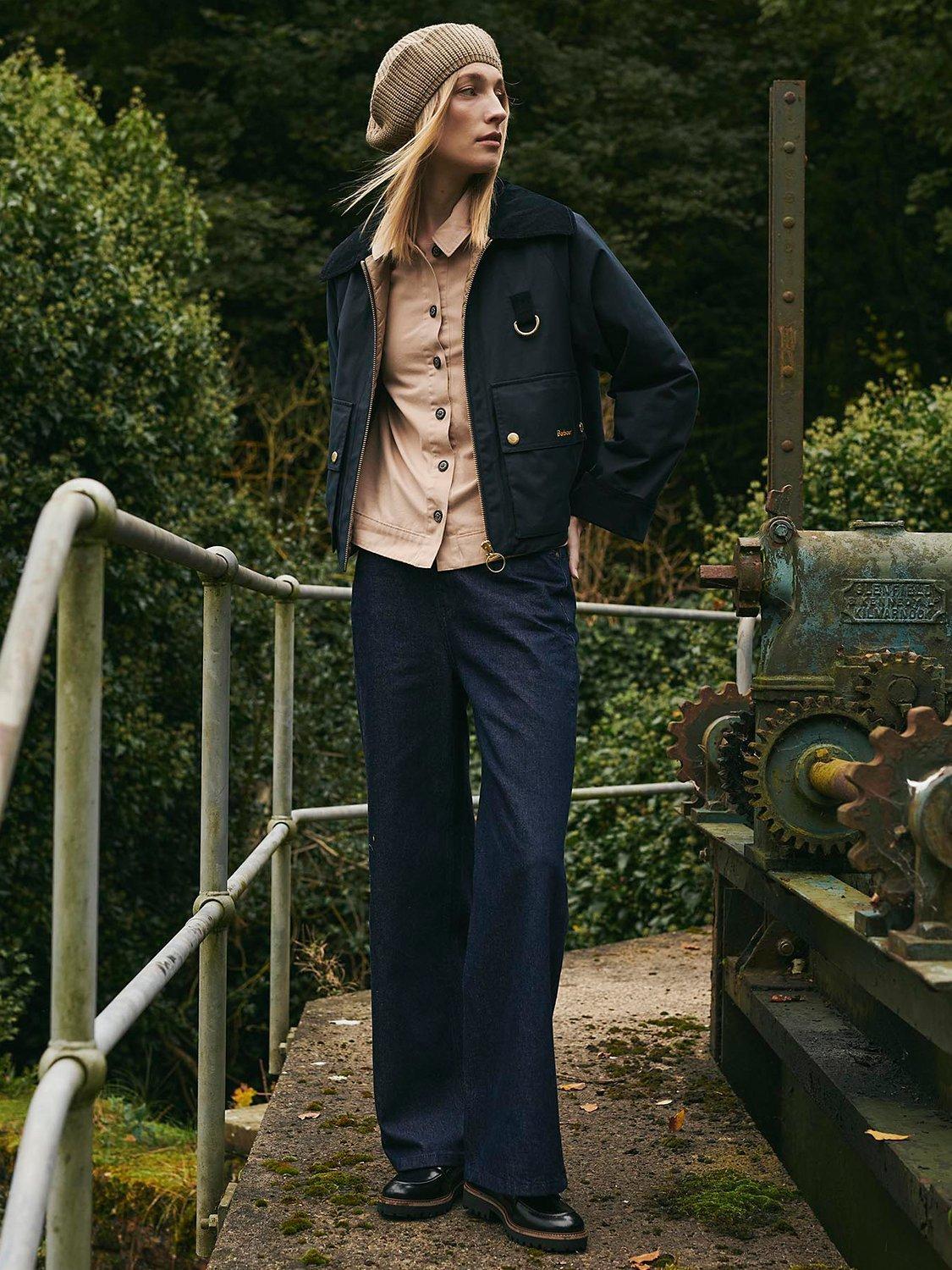 Inspired by the sought-after details of Barbour's iconic Spey Waxed Jacket, the Barbour Nora Casual Jacket tells a story of superior craftsmanship and time-honoured outerwear expertise. This shorter-length casual style features an oversized rendition of Barbour's iconic cord collar and D-ring details. Finished with oversized bellow pockets, giving it a timeless look.