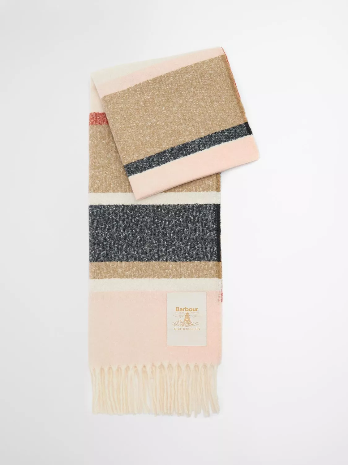 BarbourPaige Boucle Effect Stripe Scarf, Beige/Multi