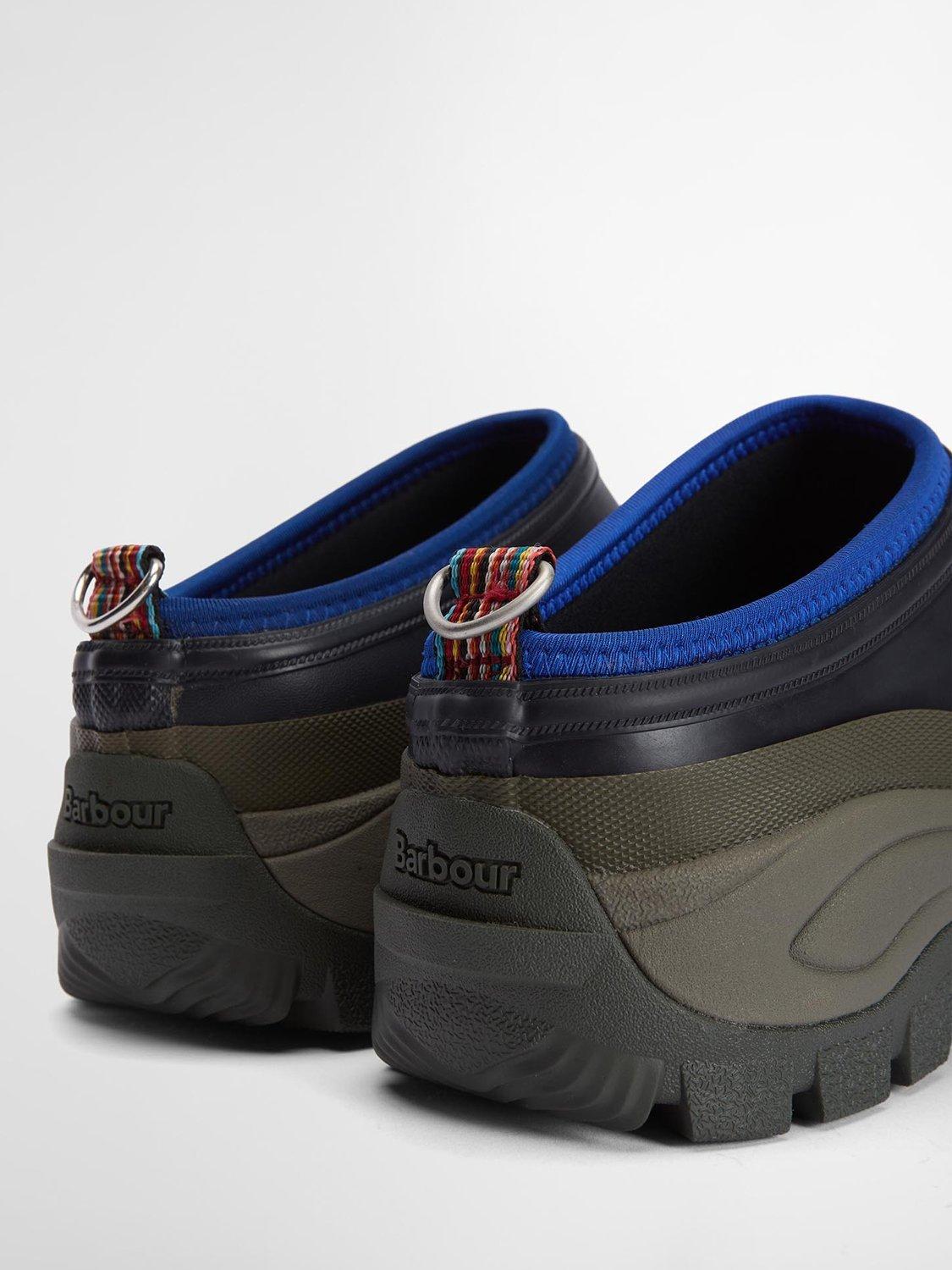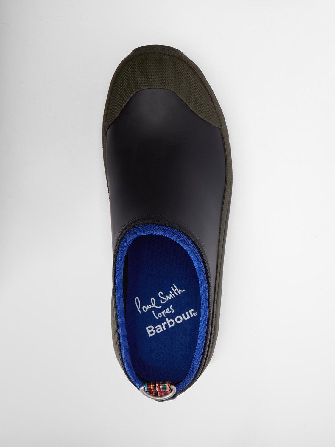 Classic with a twist, the Paul Smith Loves Barbour Women's Clogs reimagine practical footwear through a playful, design-led lens. Built with a dual-density rubber sole for comfort and durability, these clogs are ready for everything from garden strolls to city errands. Signature Paul Smith striped webbing at the heel adds a colourful surprise, while a utilitarian D-ring hardware detail nods to Barbour’s functional roots. Easy to slip on, hard to forget, these clogs are where countryside practicality meets unmistakable Paul Smith style.