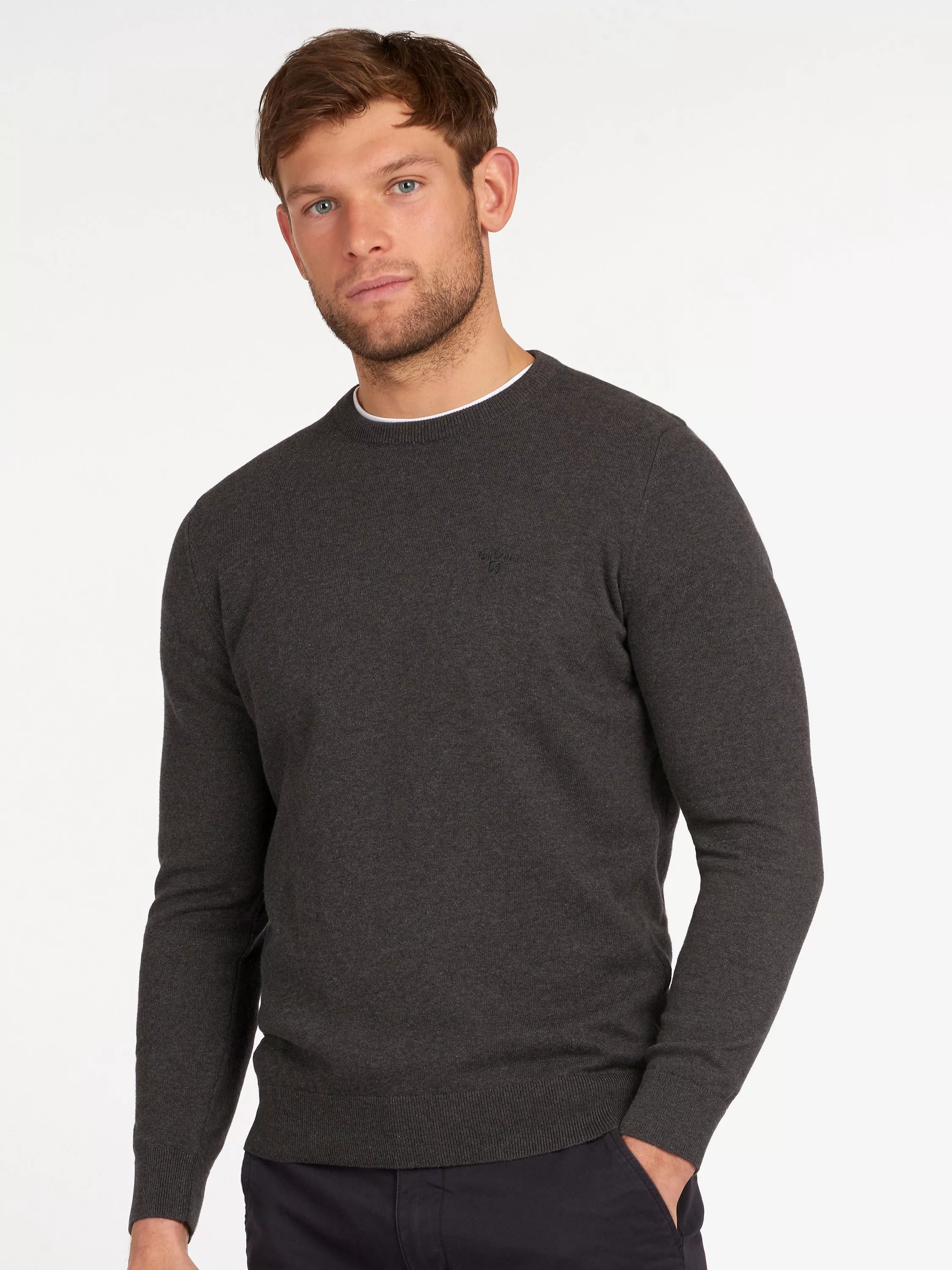 This 100% cotton crew neck sweater by Barbour is a stylish addition to smarten up your look.