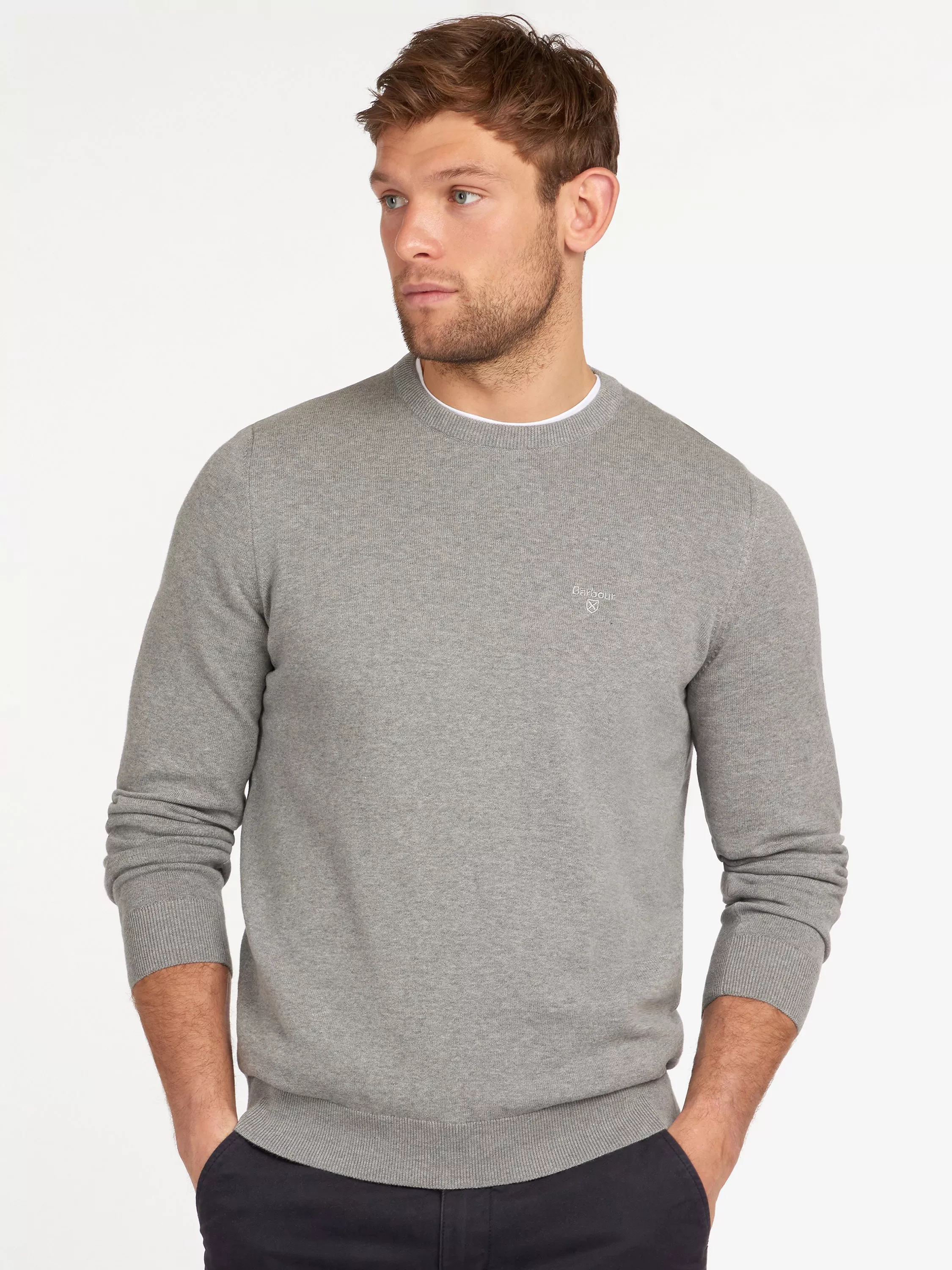 This 100% cotton crew neck sweater by Barbour is a stylish addition to smarten up your look.