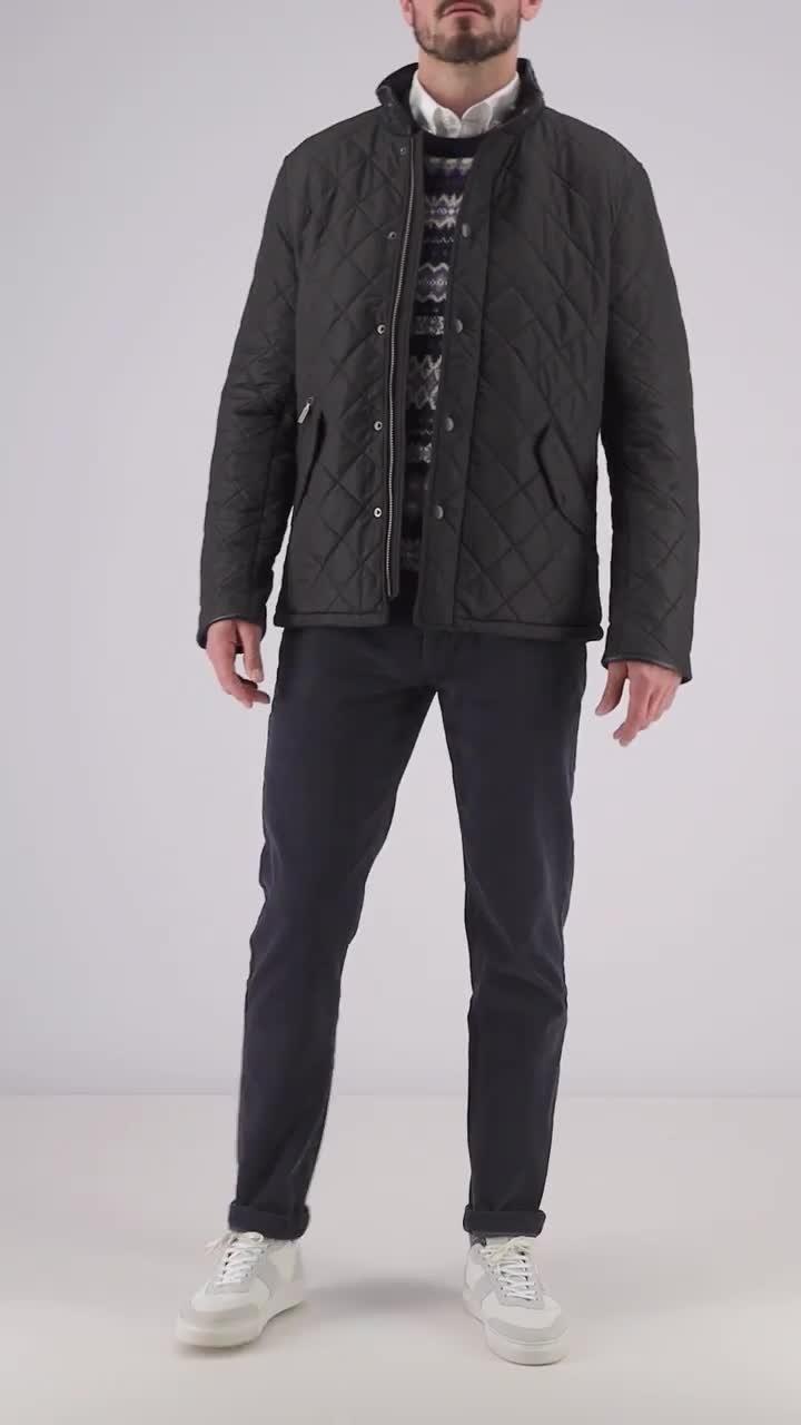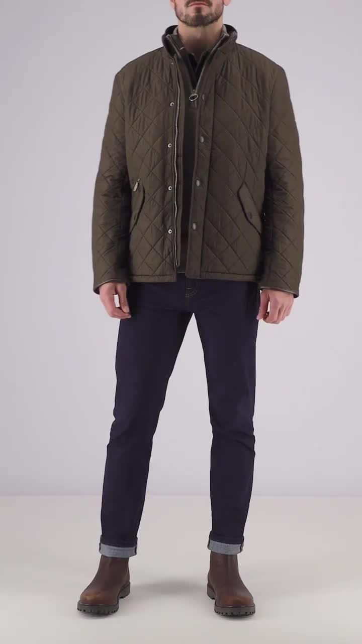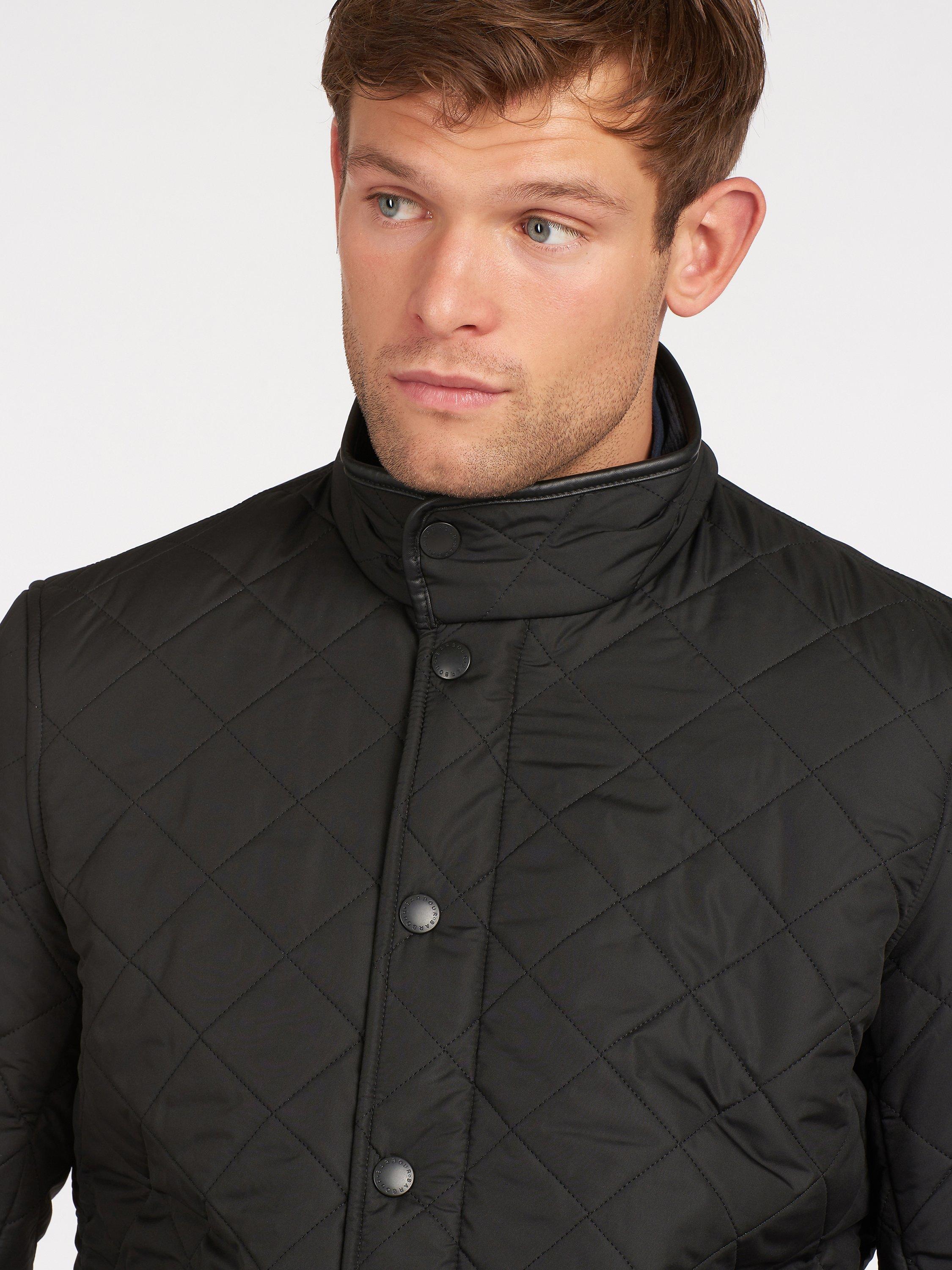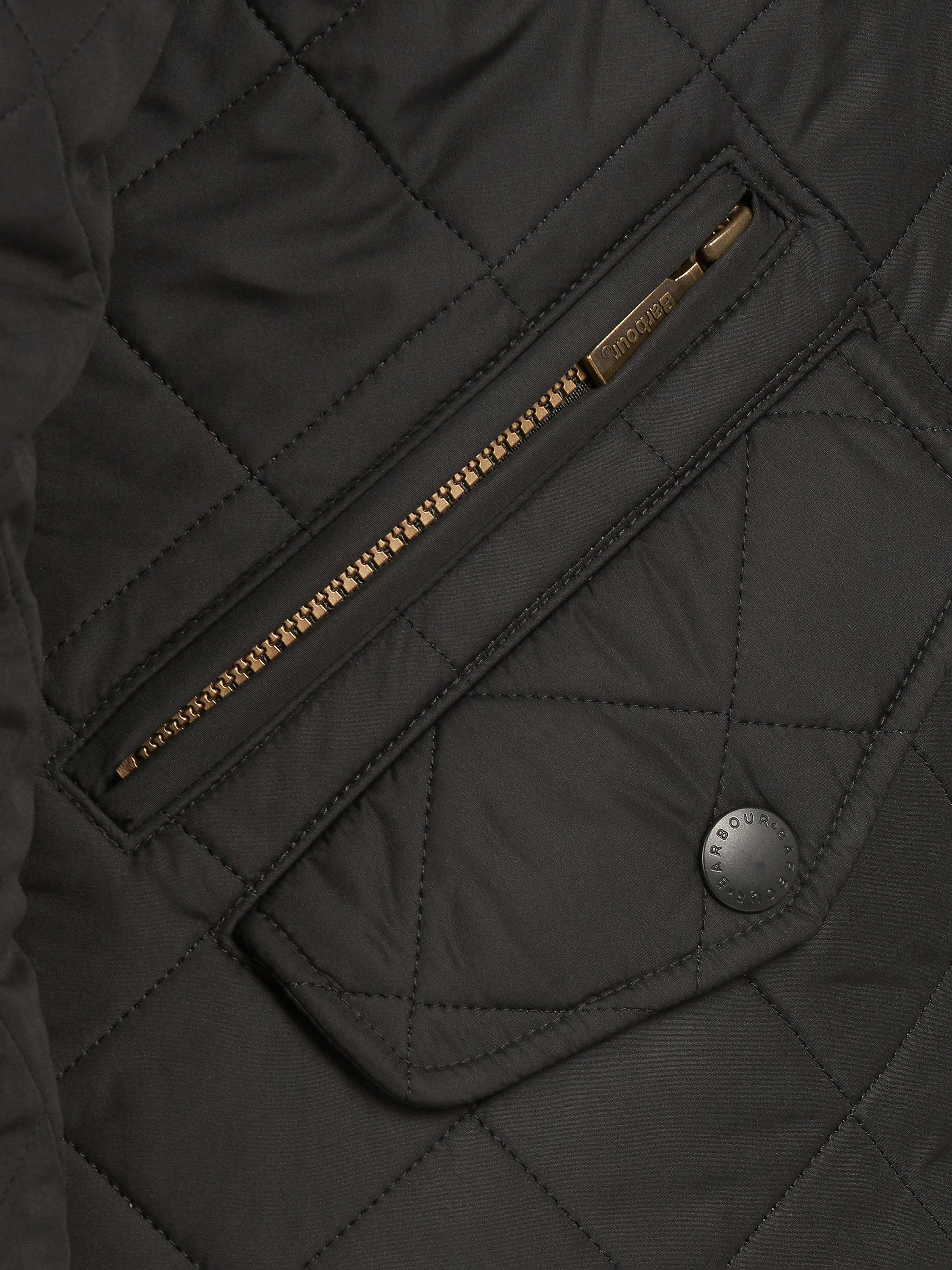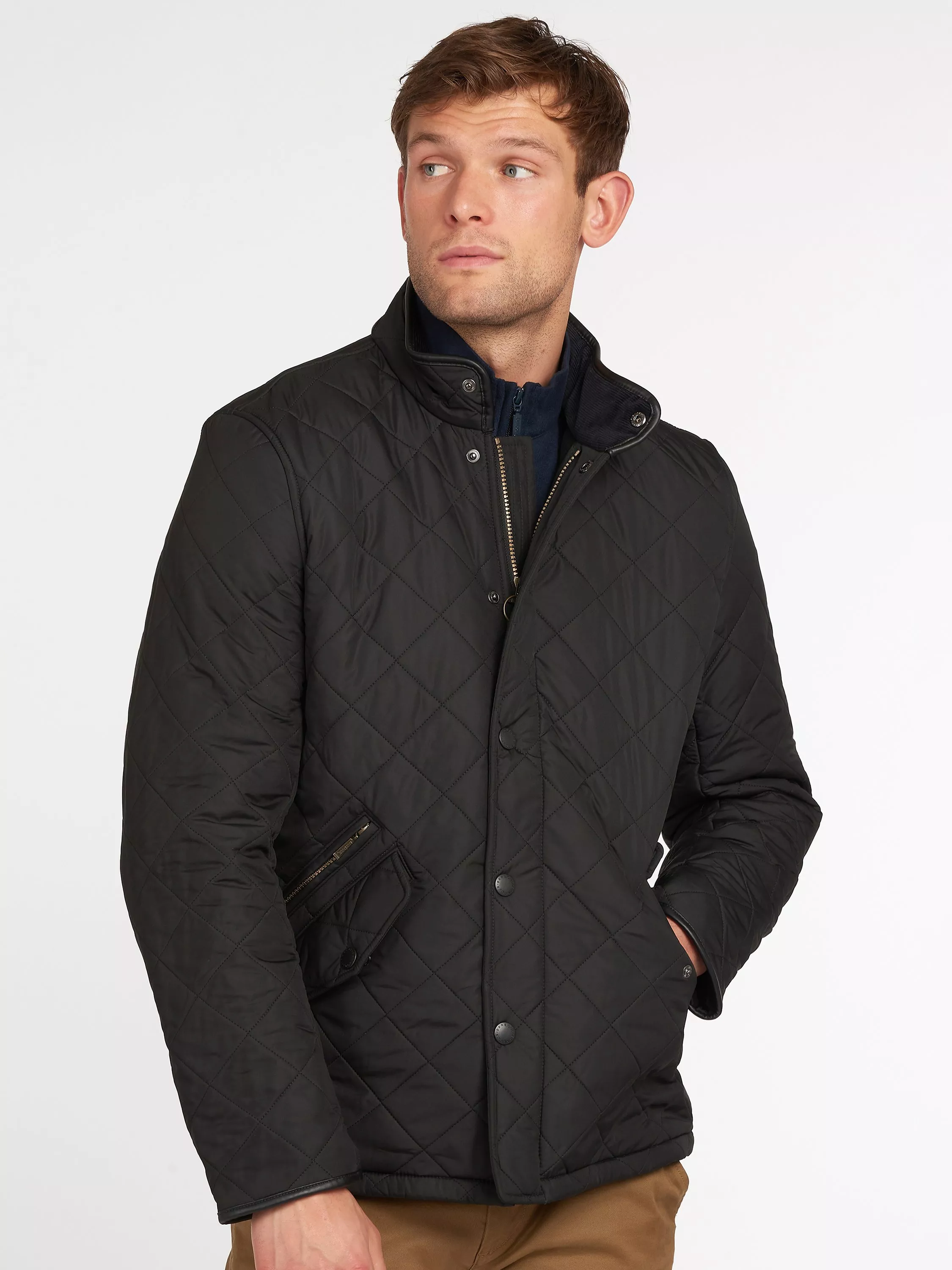 Barbour's Powell quilted jacket has an extra warm polar quilt finish to keep you warm as the temperature drops. The jacket has faux leather trims on the collar and cuffs whilst waist adjuster tabs offer a customised fit.