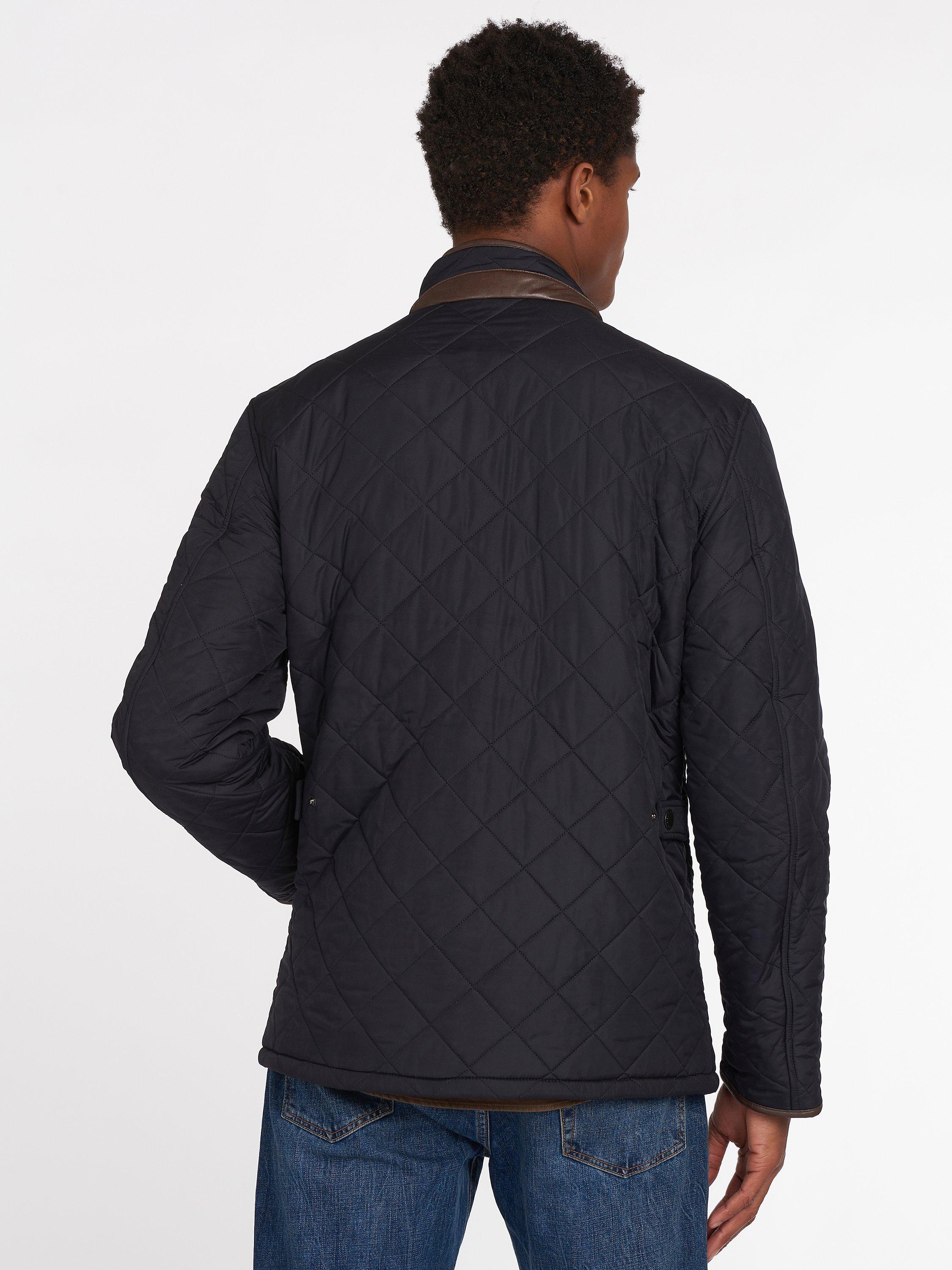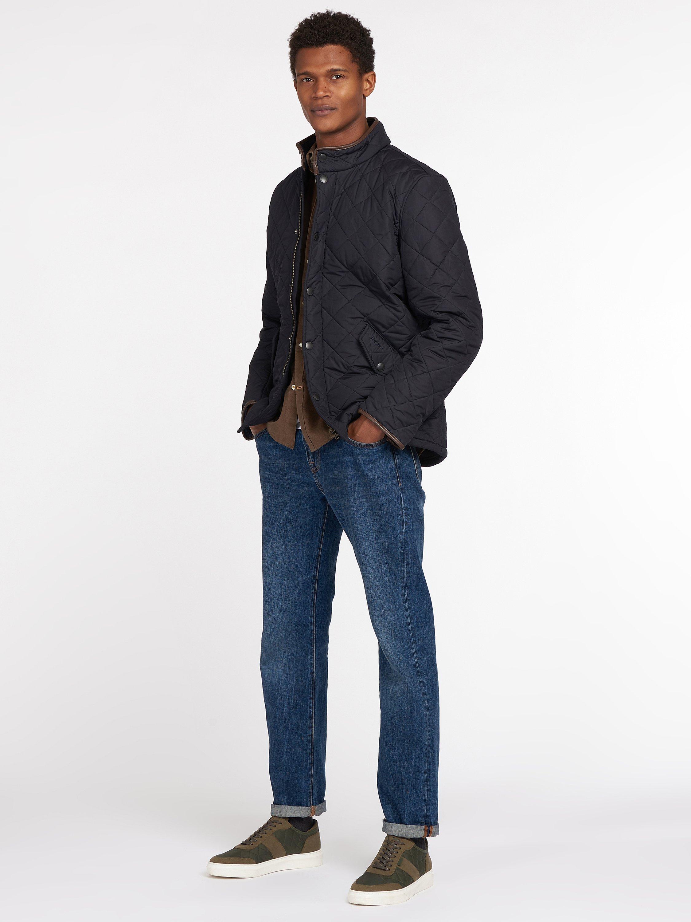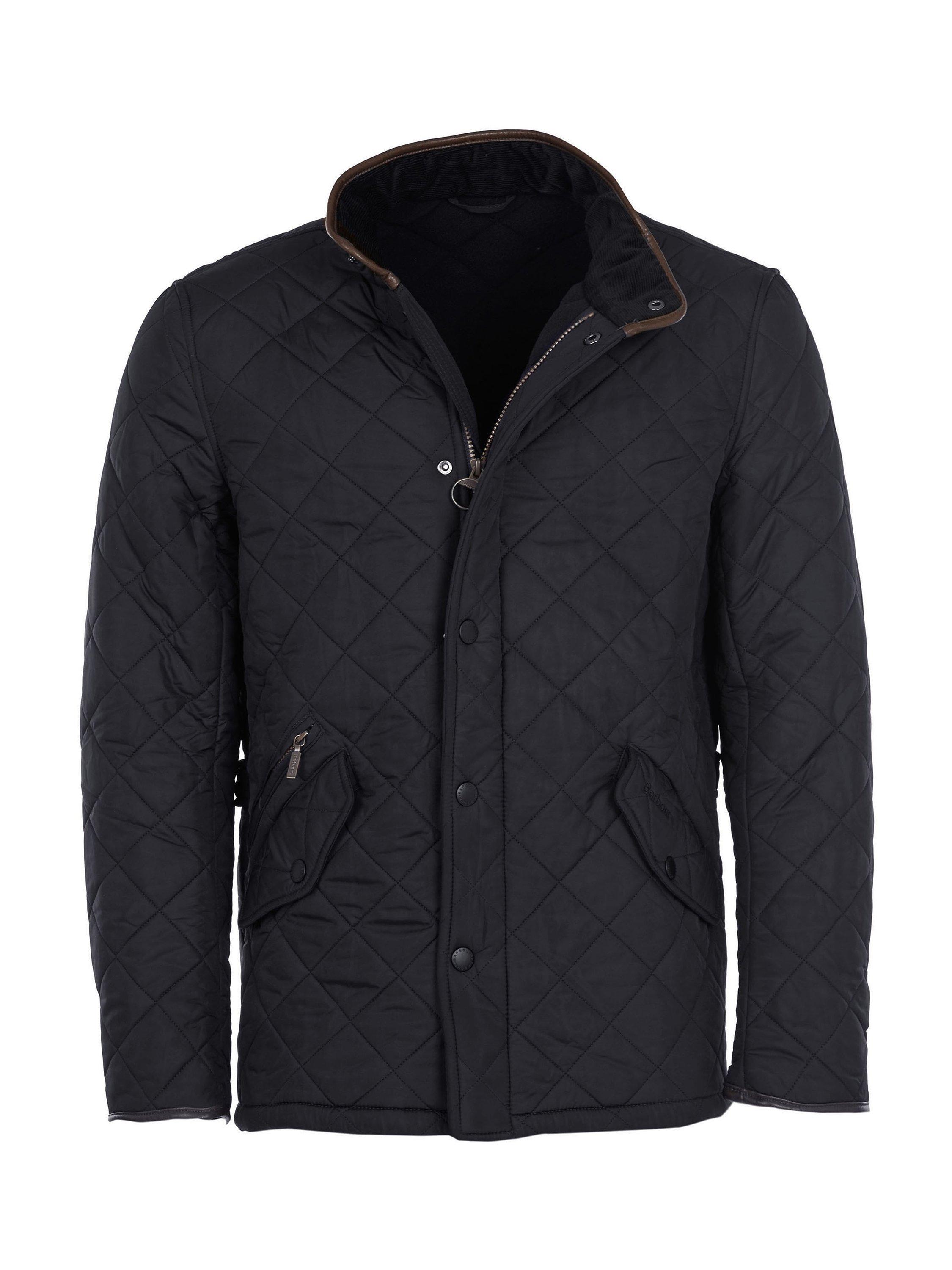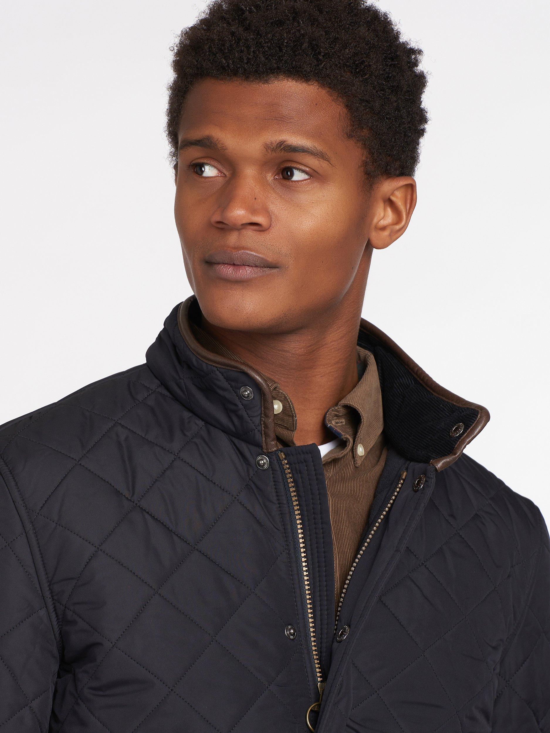 Barbour's Powell quilted jacket has an extra warm polar quilt finish to keep you warm as the temperature drops. The jacket has faux leather trims on the collar and cuffs whilst waist adjuster tabs offer a customised fit.