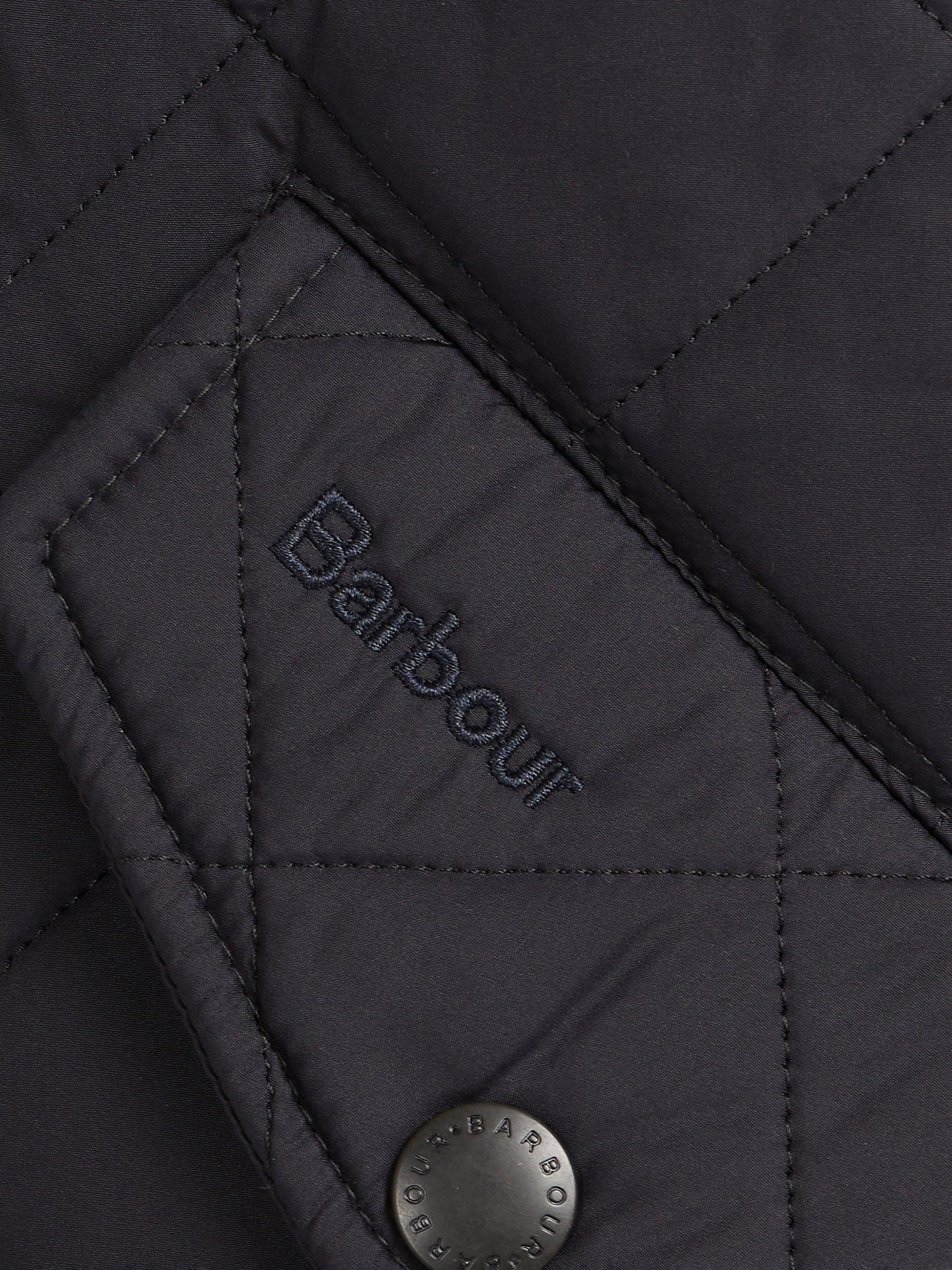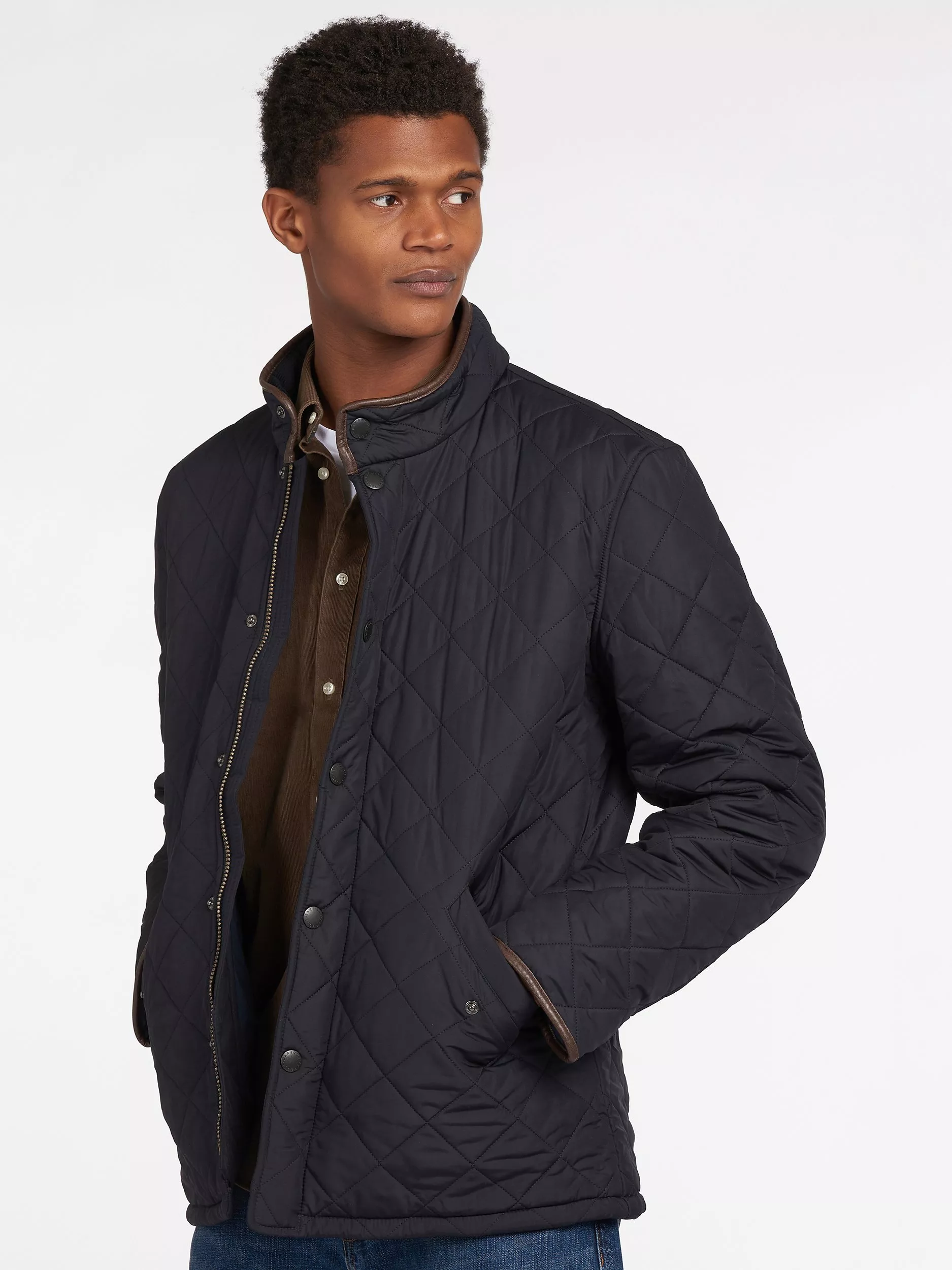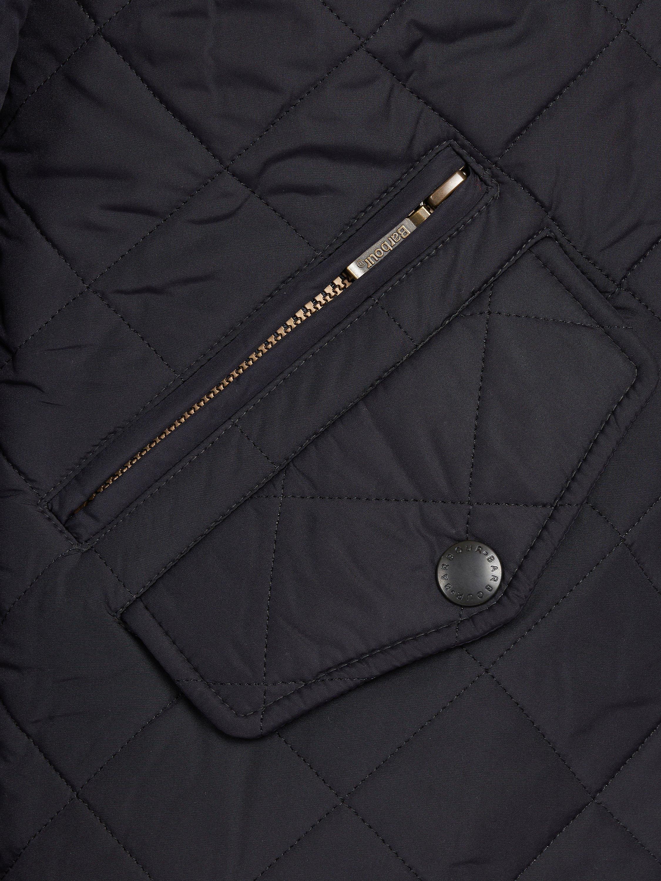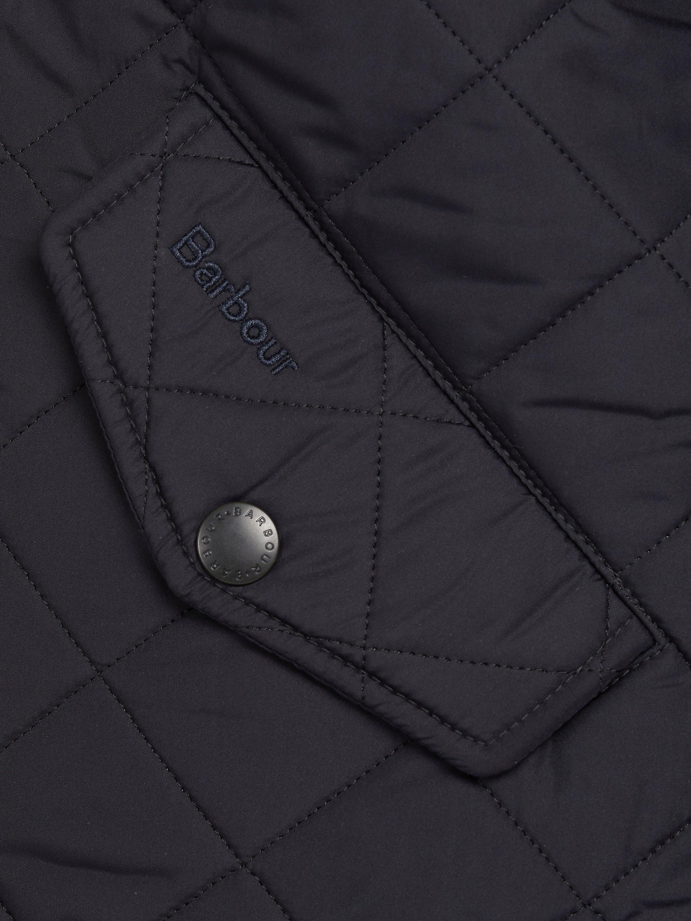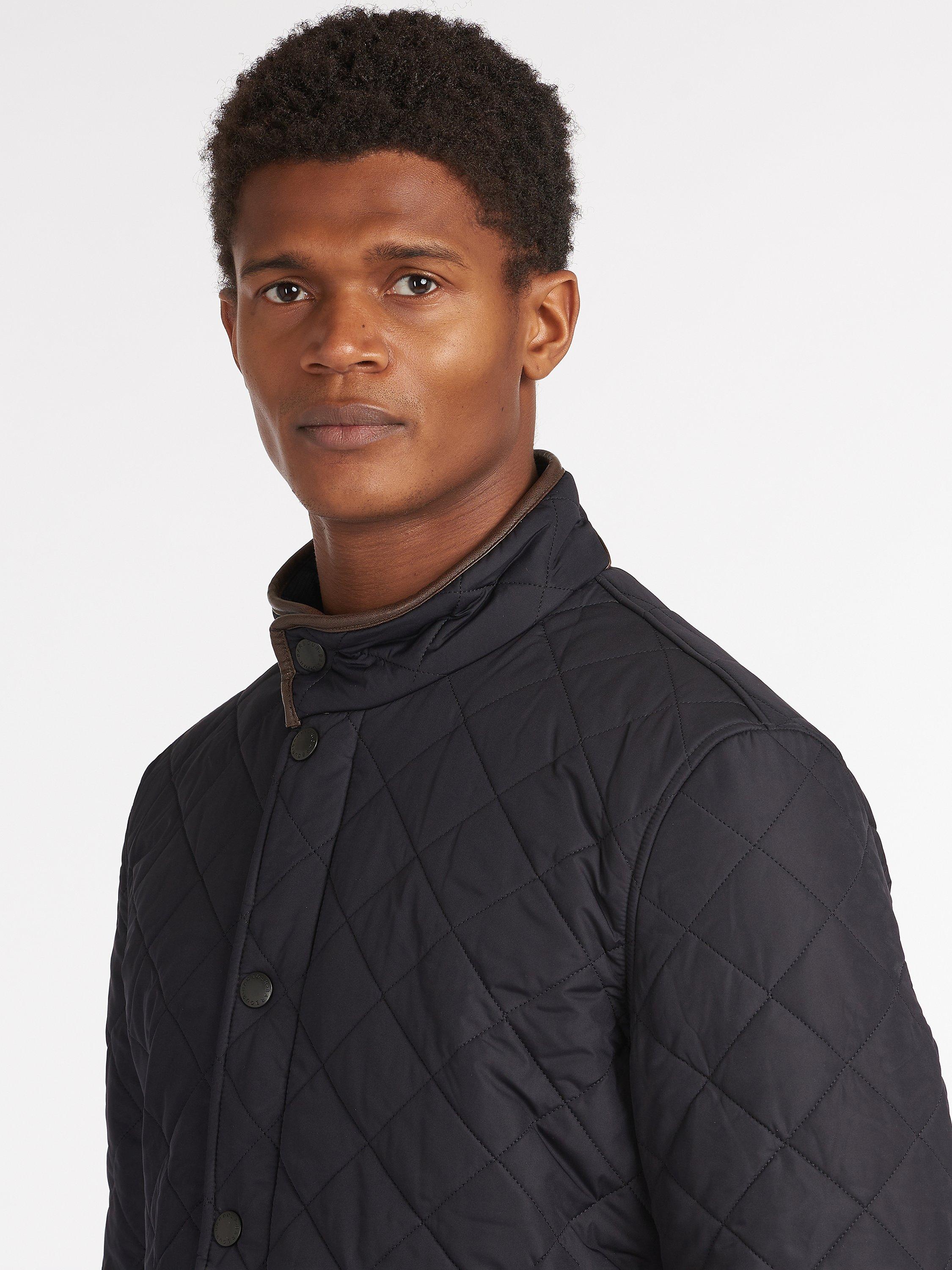 Barbour's Powell quilted jacket has an extra warm polar quilt finish to keep you warm as the temperature drops. The jacket has faux leather trims on the collar and cuffs whilst waist adjuster tabs offer a customised fit.