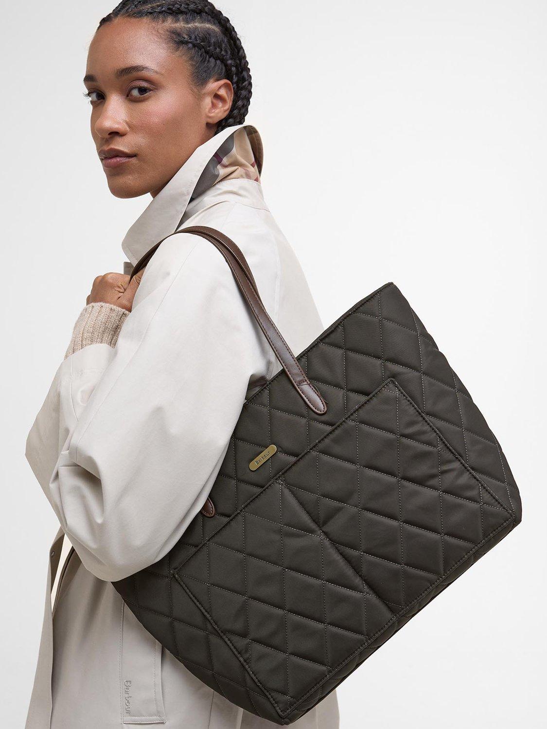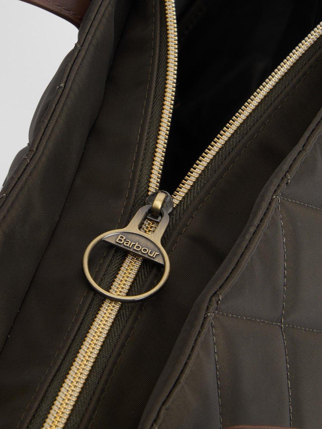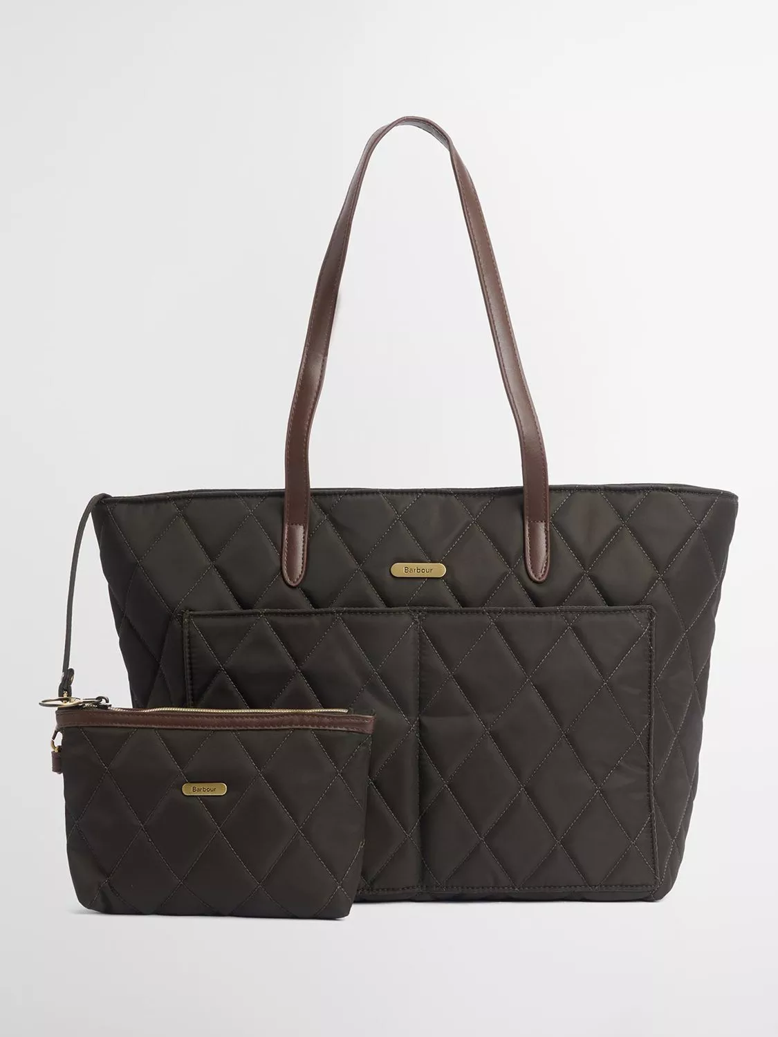 The Barbour Quilted Tote Bag is great for transporting everyday essentials in quintessentially British style. Boasting leather-look handles and a matching logo badge to the front, this spacious accessory is designed with two external slip pockets for easy access and one zipped security pocket inside for valuables. There's also a removable inner pouch or keeping items neatly organised.