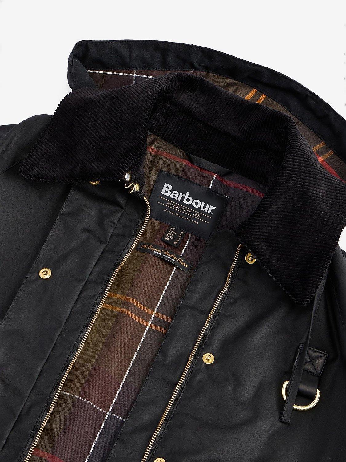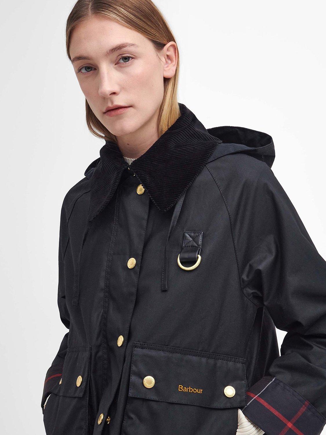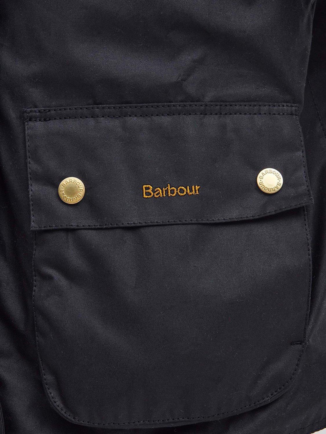 An iconic Barbour style, this waxed jacket sits at the hip for versatile coverage.