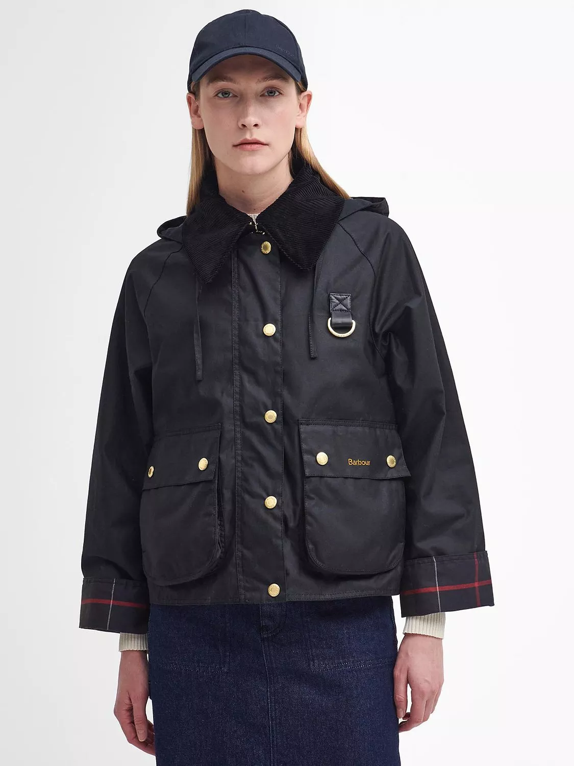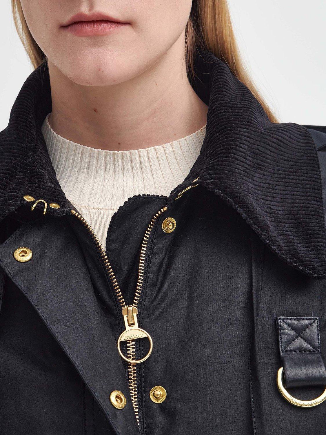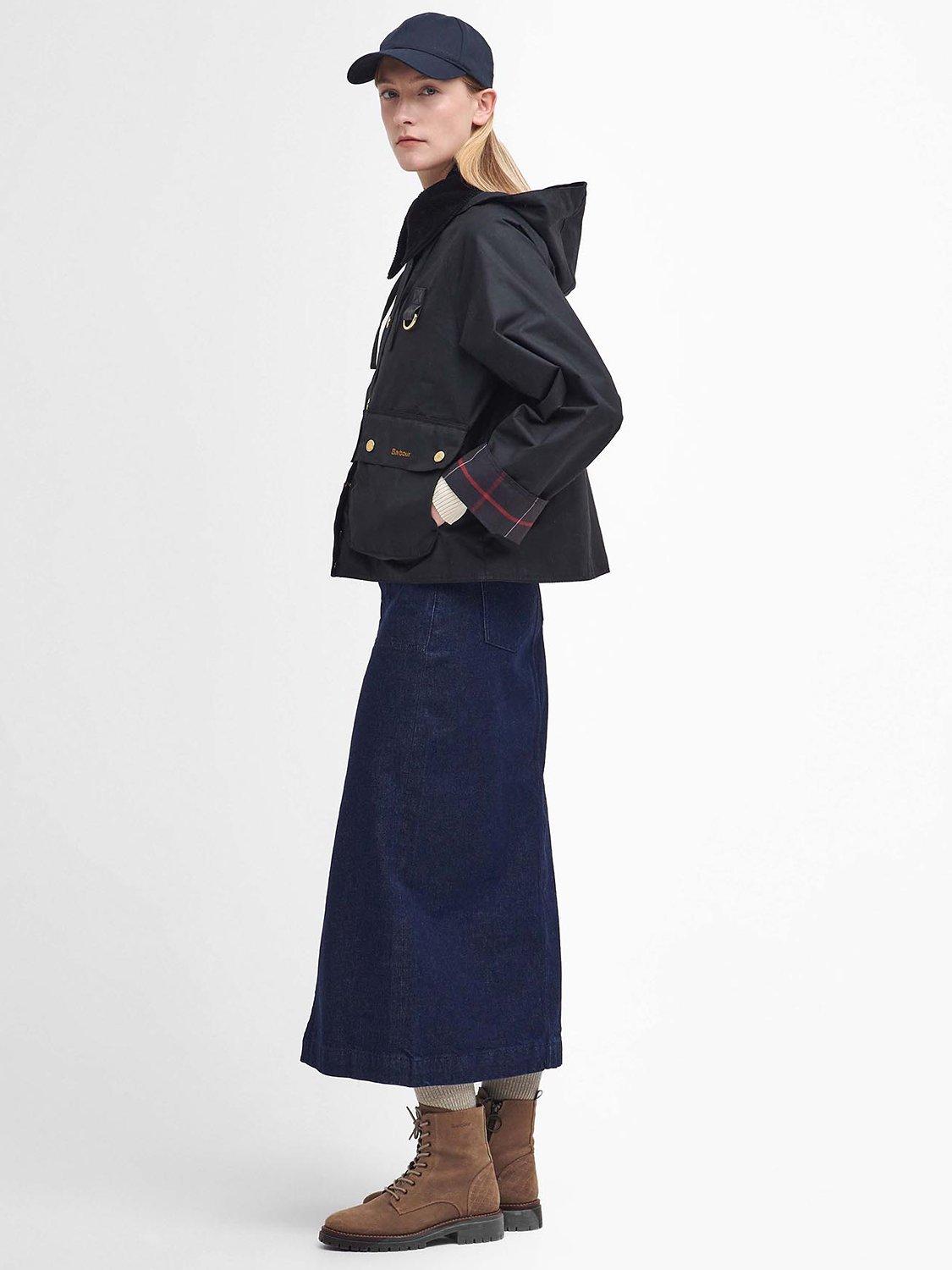 An iconic Barbour style, this waxed jacket sits at the hip for versatile coverage.