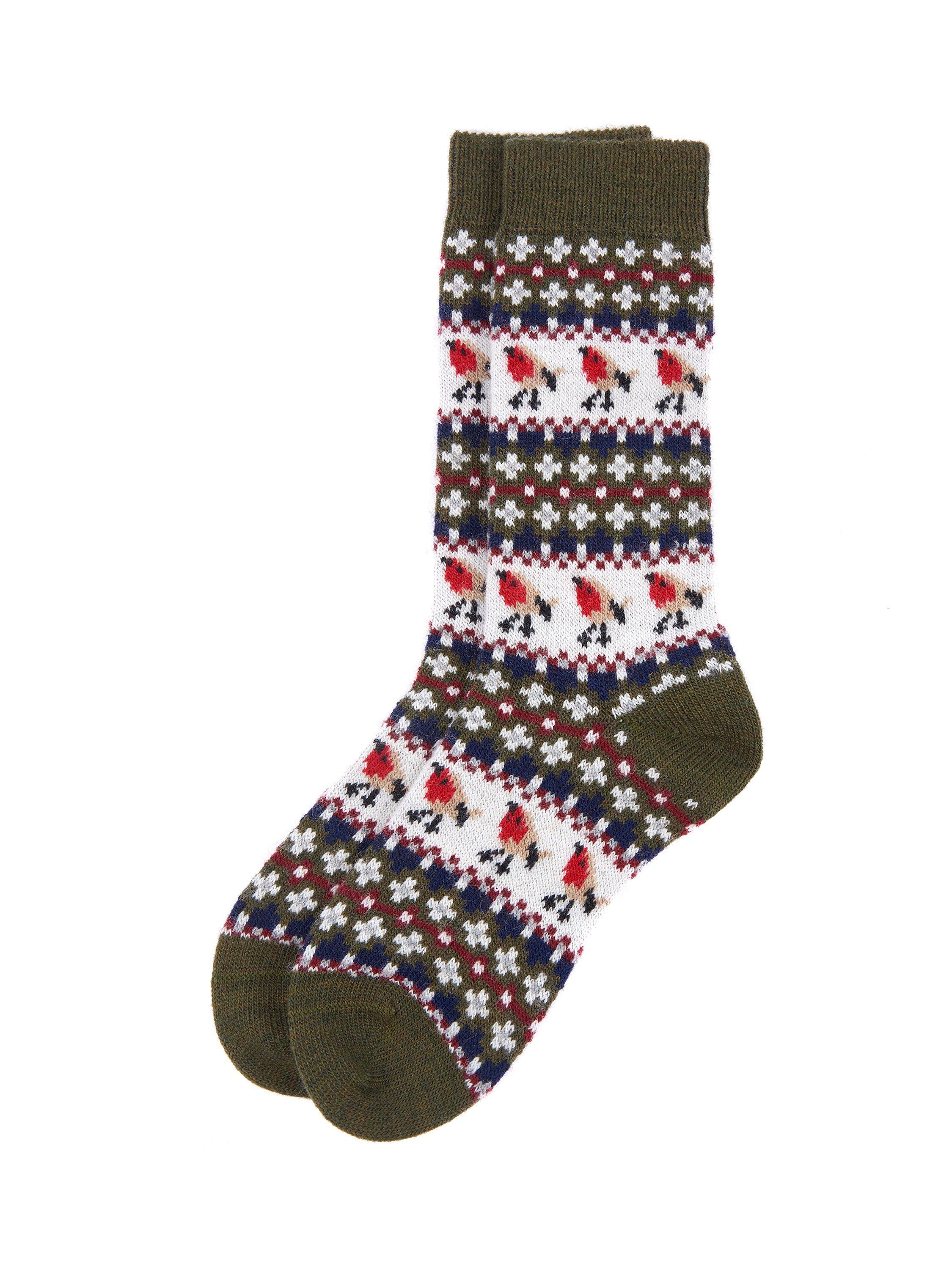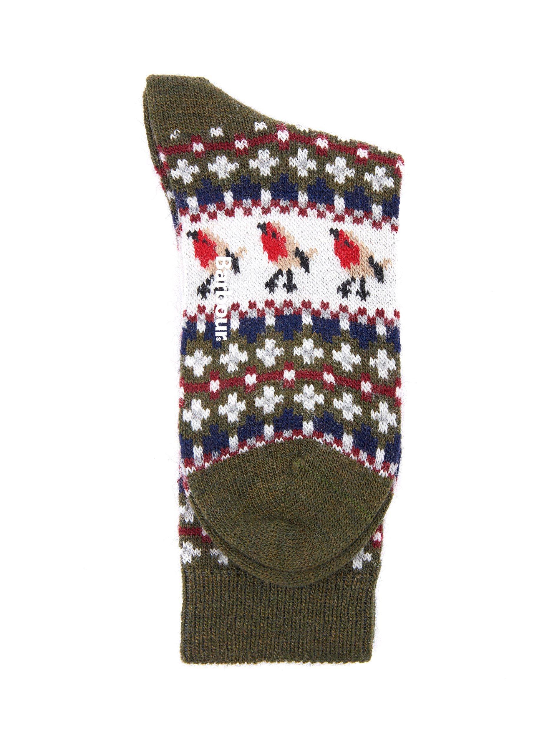 Featuring an all-over Fair Isle design, these Barbour ankle socks boast a sweet festive robin. Perfect for a stocking filler, these socks offer premium comfort and include a touch of wool for warmth.