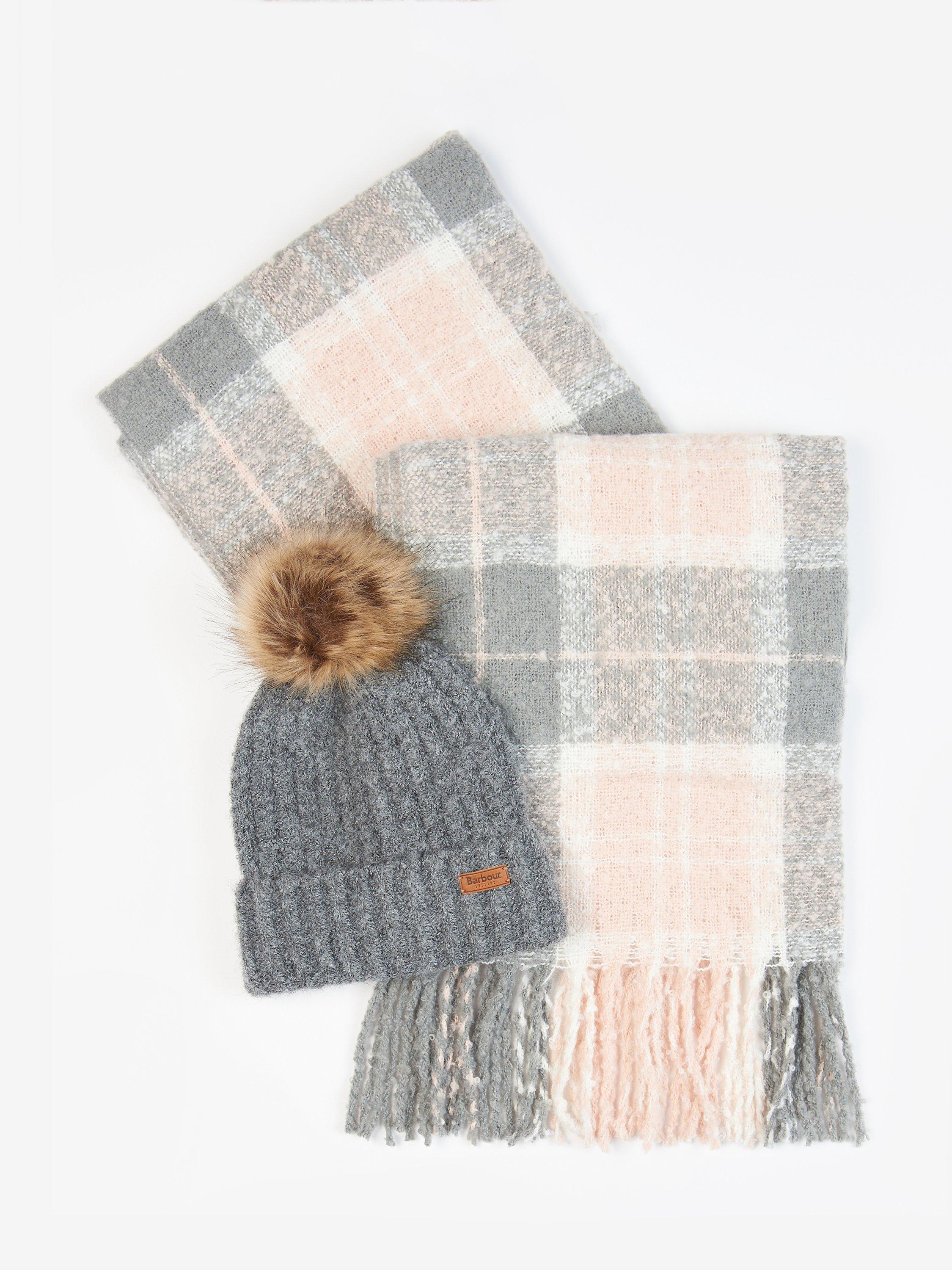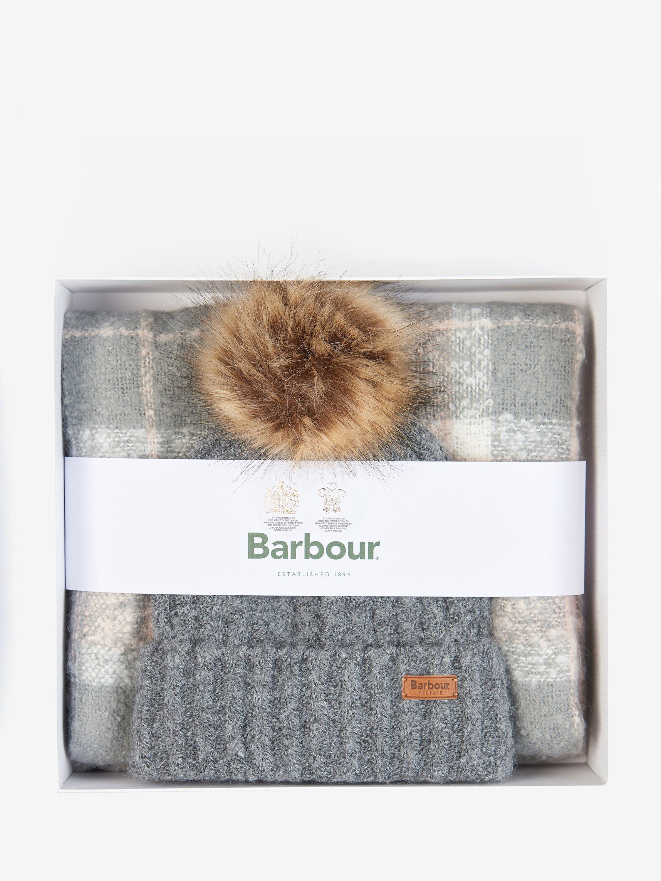 Lending itself to multiple styling options, this accessory gift set includes a tartan boucle scarf and a Barbour Saltburn beanie hat. The hat has a chunky ribbed knit structure with faux-fur pom-pom adding a feminine touch. This set is presented in a branded gift box.