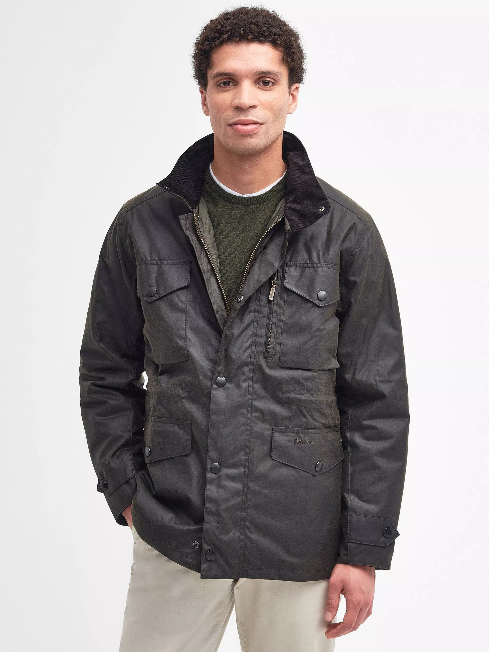 This subtly tailored version of Barbour's popular Sapper Jacket blends rugged functionality with an effortlessly smart look. It's made from lighter-weight Sylkoil waxed cotton and features a drawcord waist, four outer pockets and a stowaway waterproof hood.