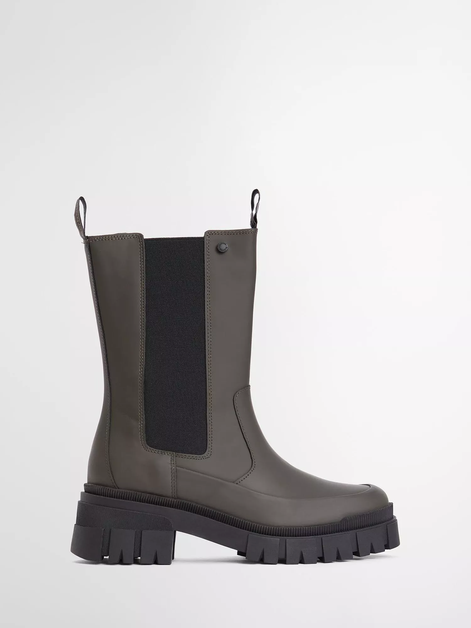 Add the latest trends to your wardrobe with these Barbour Sidneigh Chelsea Boots. Crafted from a soft rubberised leather, these boots boast a chunky utility look thanks to their cleated sole and statement profile. Ideal for adding an edgy finish to any smart-casual look.