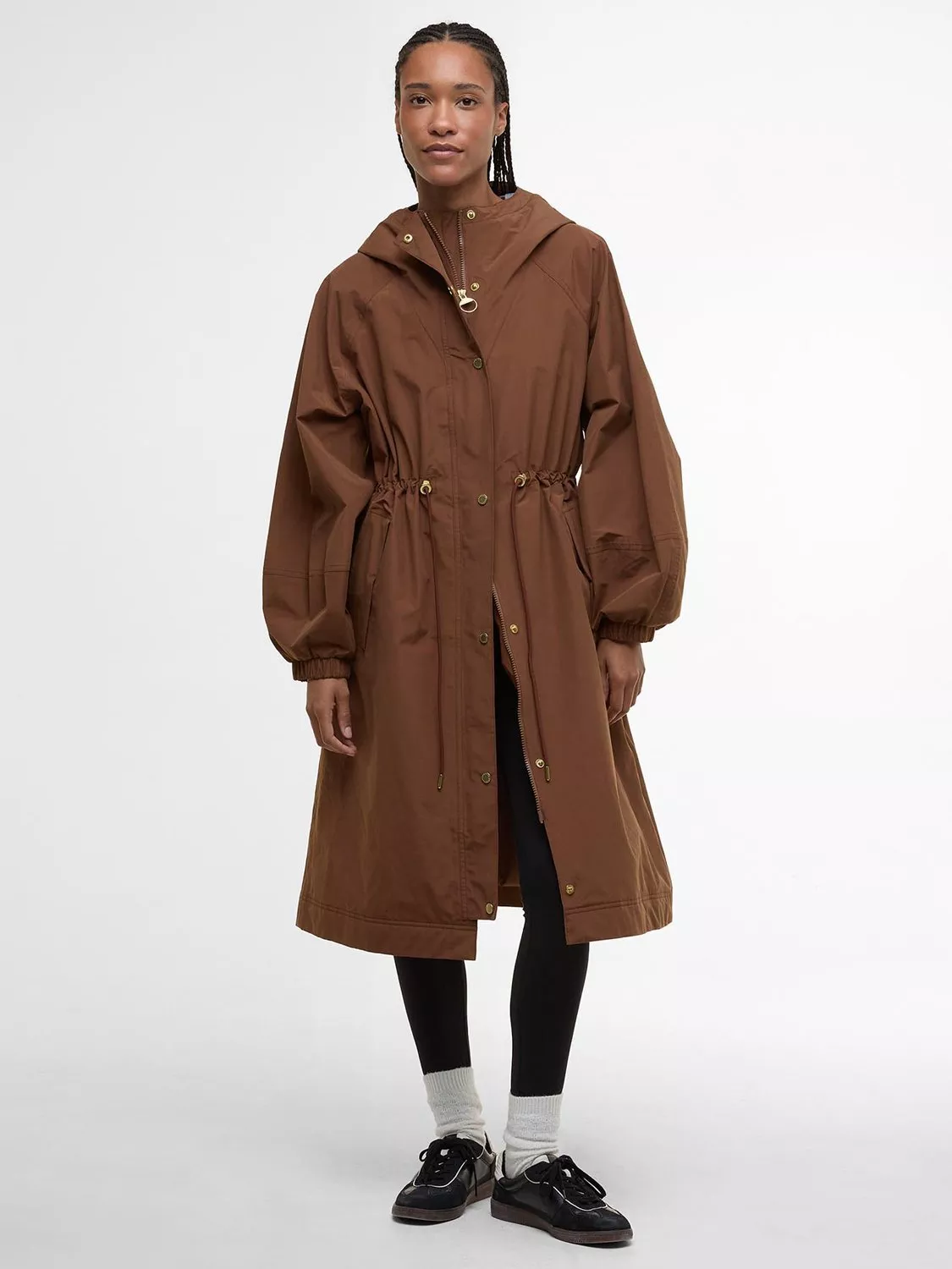 Come rain or shine, Barbour has you covered with the Barbour Sidney Waterproof Parka. This longer length coat design is ideal for unpredictable weather, thanks to its hood, elasticated cuffs and drawcord to the waist for added protection.