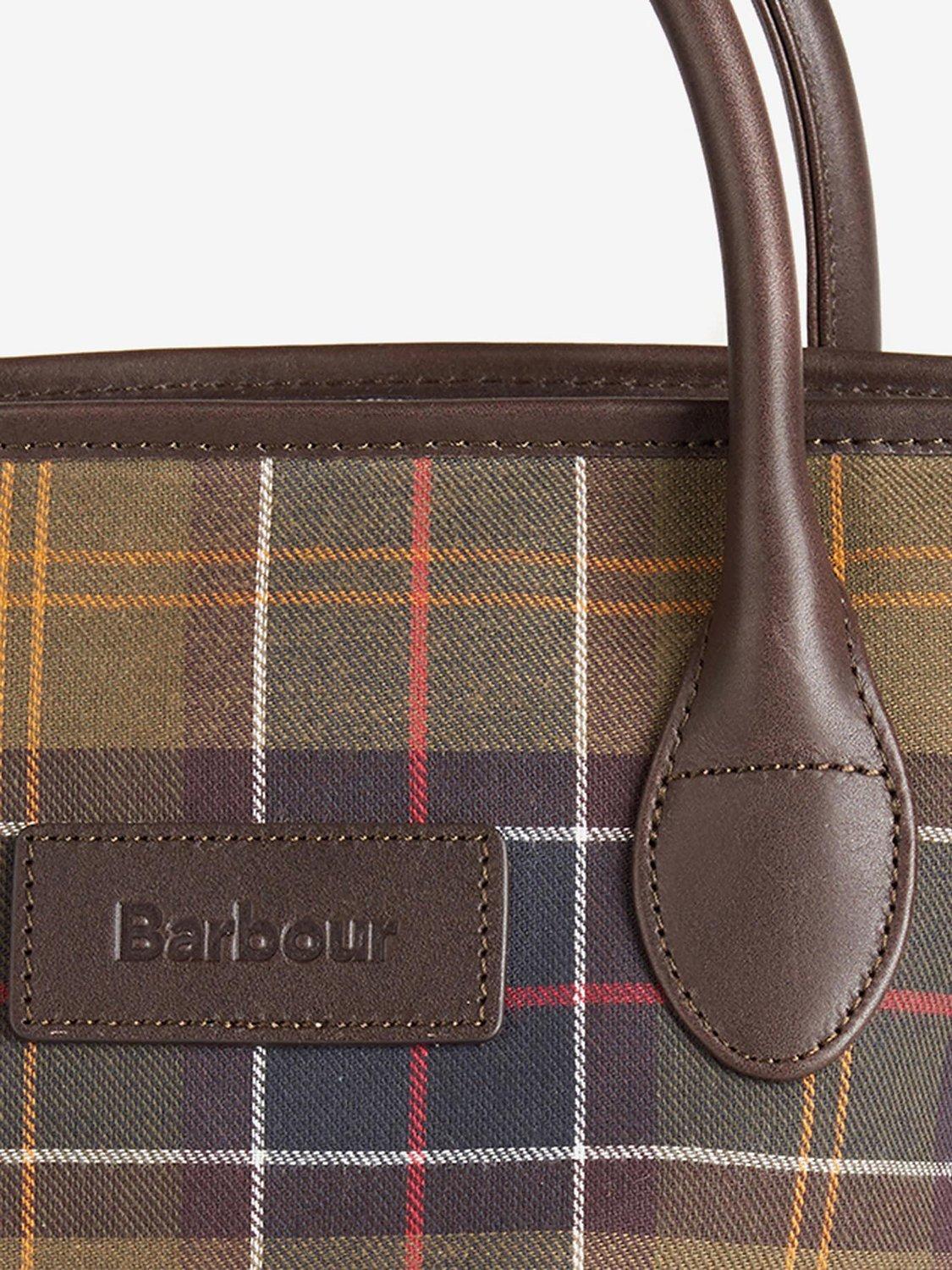 Paying homage to Barbour's Scottish roots, this small tote bag is designed with a heritage-inspired signature tartan print. Adding a sophisticated finishing touch to any outfit, it's a practical and versatile accessory with a water-resistant laminated cotton outer trimmed in fine leather with sturdy leather handles and embossed Barbour branding. A zip closure and inner security pocket ensure valuables stay safe.