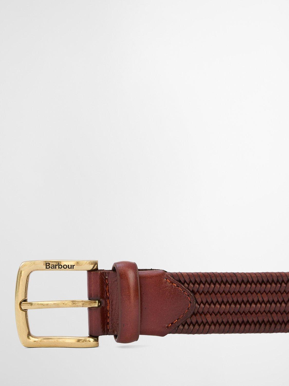 Brbour's Stretch Leather Belt combines classic style with modern comfort. Crafted from durable stretch webbing and finished with leather trim at the tip and buckle end, it features an embossed Barbour logo on the loop. Flexible yet refined, it offers a heritage-inspired accessory that’s ideal for everyday wear.