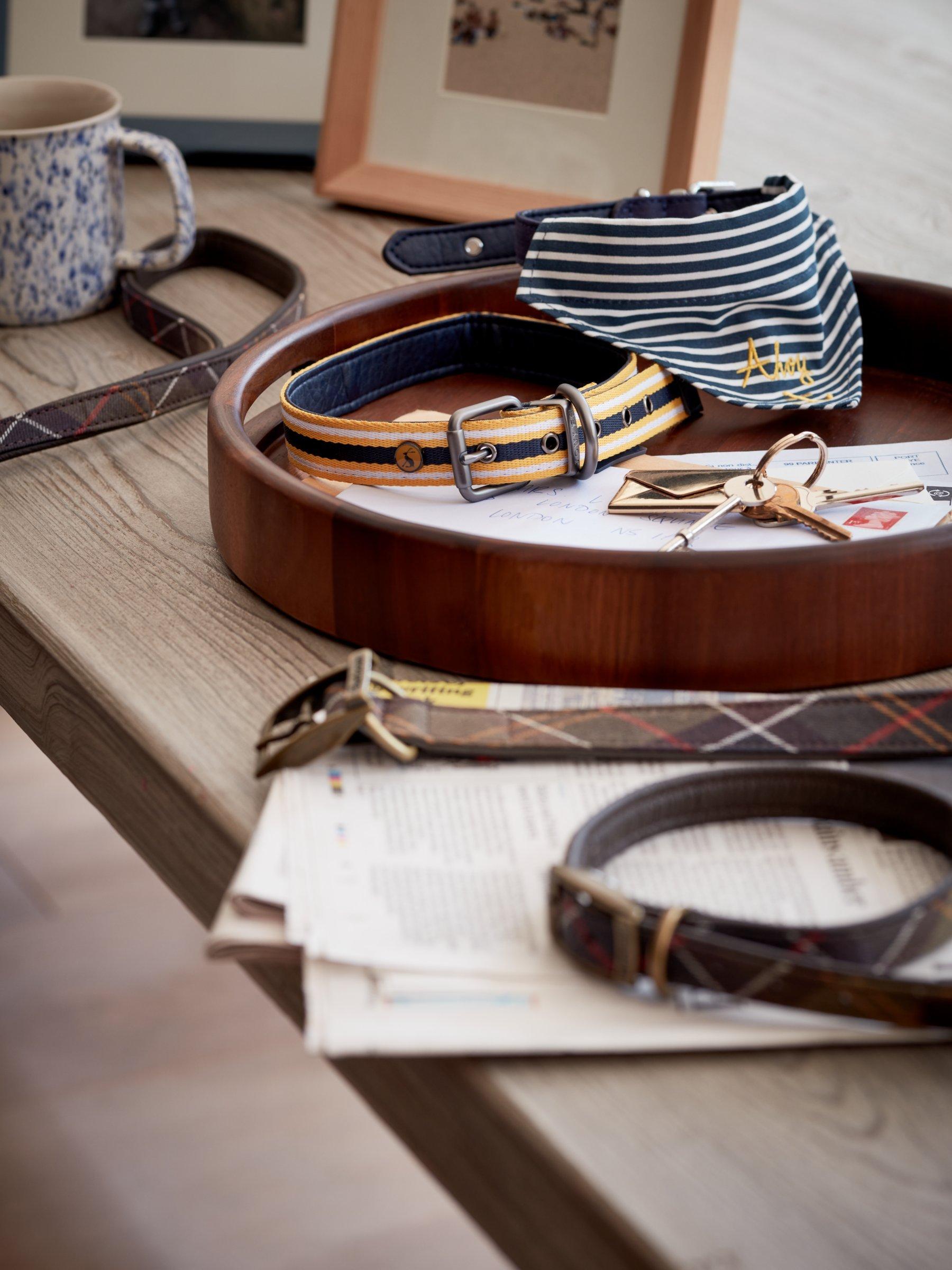 Barbour's smart tartan dog collar is made from leather and cotton webbing. The classic styling will look great in the park, the street, or anywhere else you and your canine companion may wander.