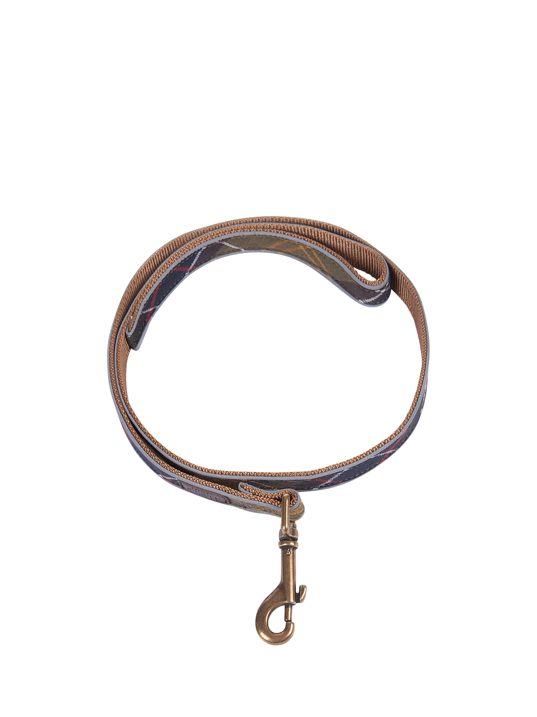 This tartan webbing dog lead features reflective binding at the edges to keep your dog safe when the days get shorter. It's got a loop handle and an aged brass clip to secure it to your dog's collar.