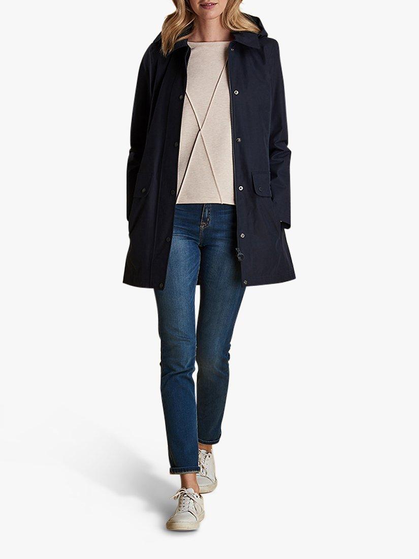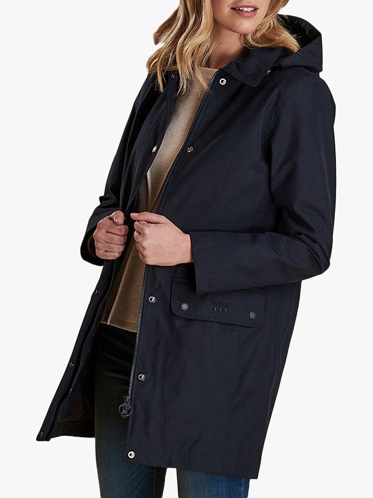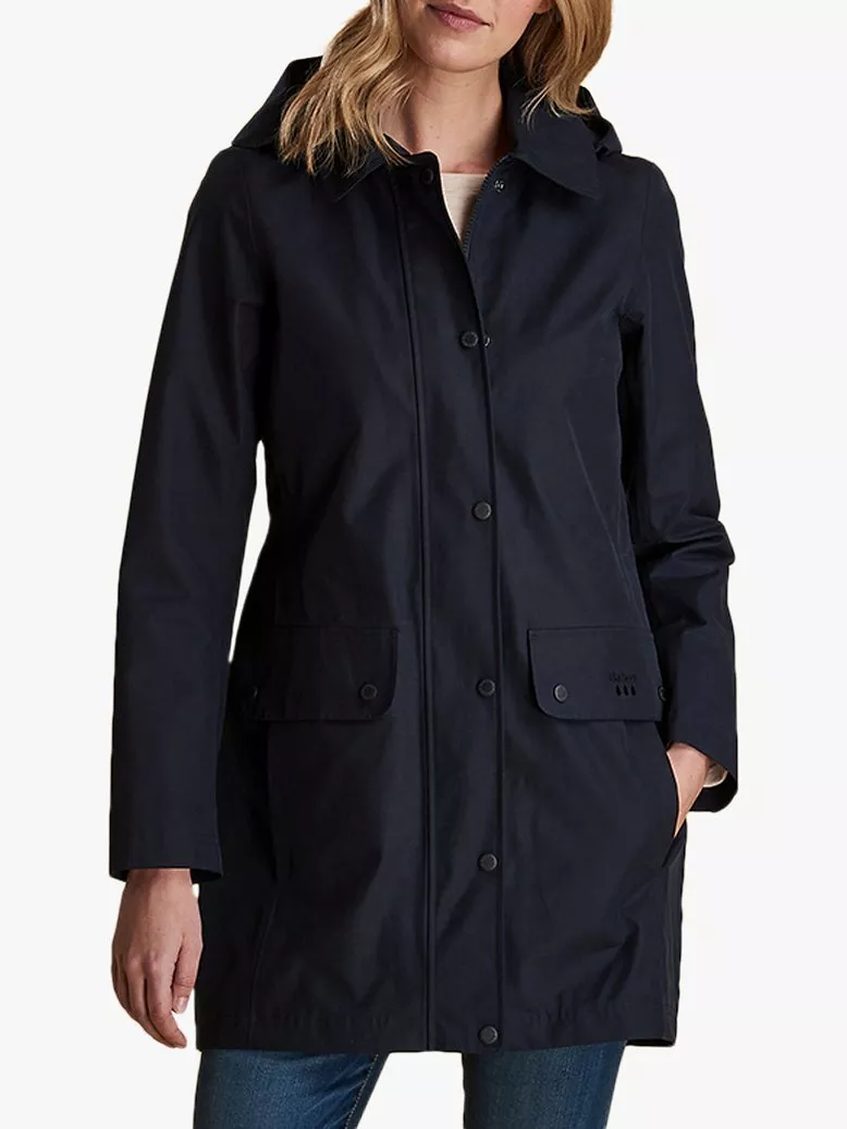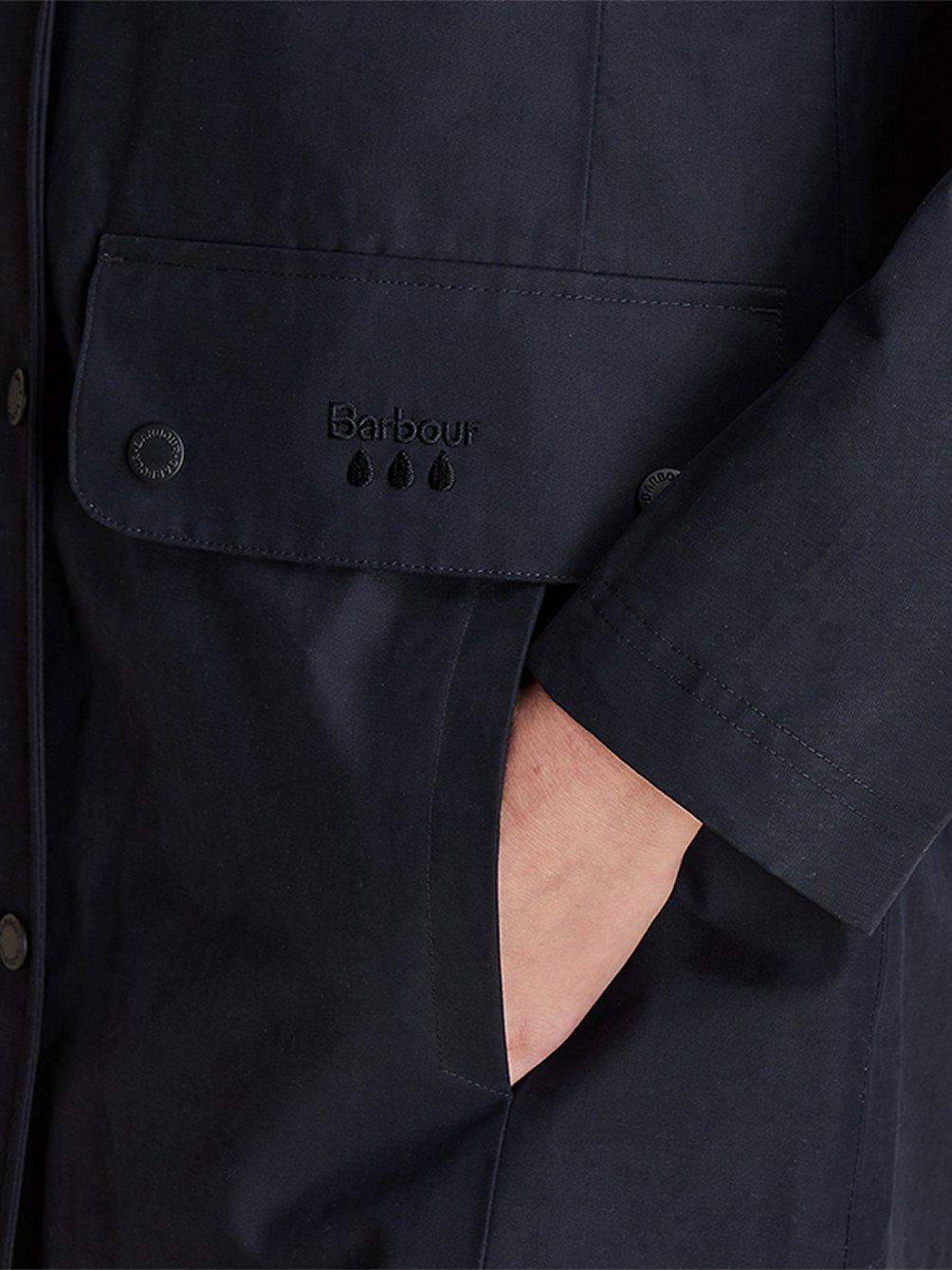 Influenced by Barbour's popular Border style, this jacket offers a neat silhouette you can throw on over casual and dressier looks. In a streamline shape, it has a neat collar and a detachable hood with rain protector to keep you dry.
