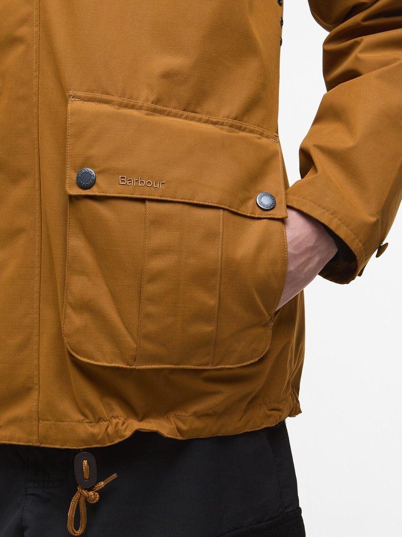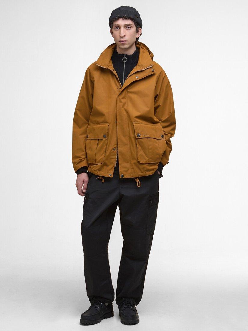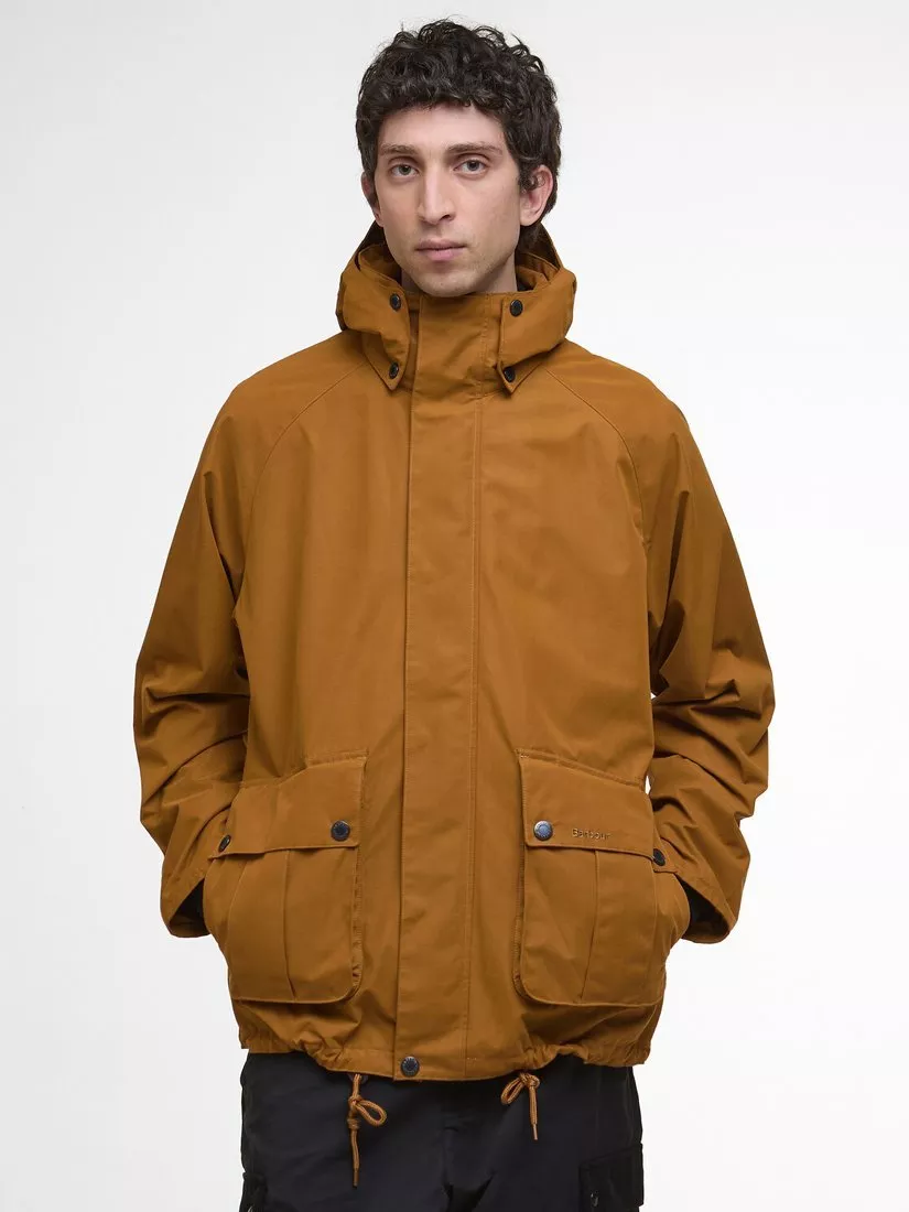 The Barbour Wading Spey Showerproof Jacket. Designed to take you seamlessly from riverside adventures to city strolls. Crafted with showerproof fabric and featuring a detachable hood, this jacket is built to handle the great British weather, while generous bellow pockets ensure all your essentials are within easy reach. Blending timeless Barbour craftsmanship with modern functionality, it's the perfect jacket for every season.