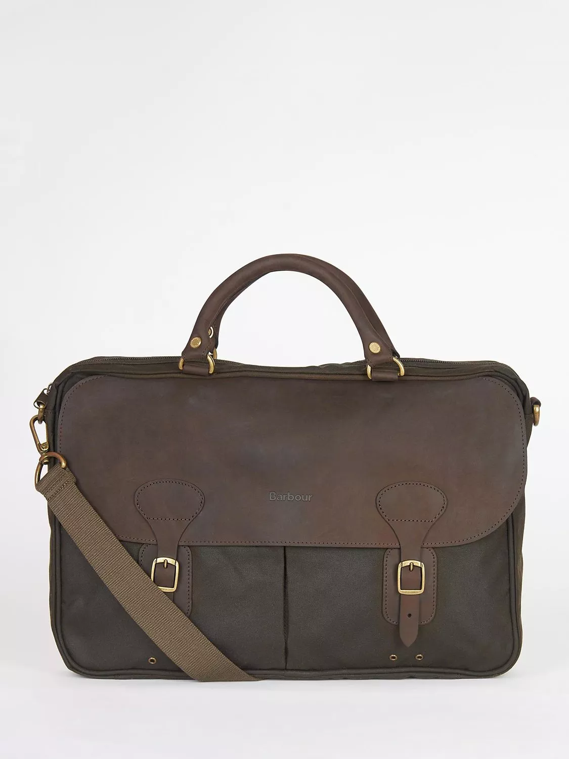 This Barbour satchel is both strong and suave, and will carry everything you need for a busy day. The style of this satchel will add some classic country style to your look It features a sturdy top handle, a detachable and adjustable shoulder strap, and 2 metal front buckles for added security.