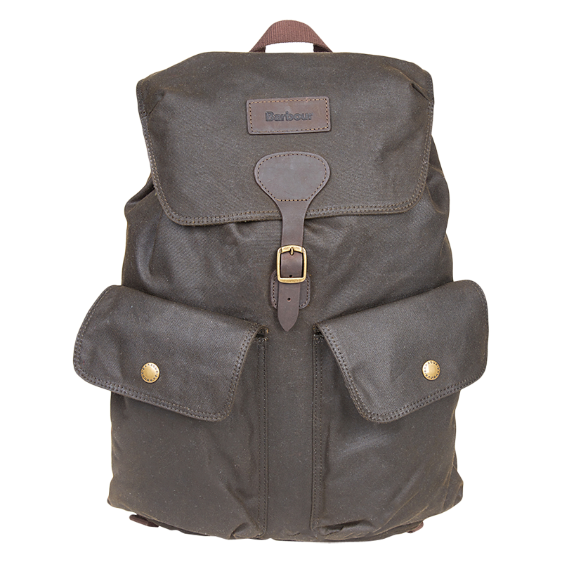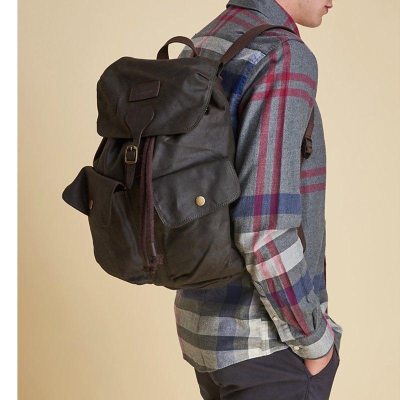 This men's waxed cotton backpack by Barbour has a leather trim to add a touch of refinement to your look.