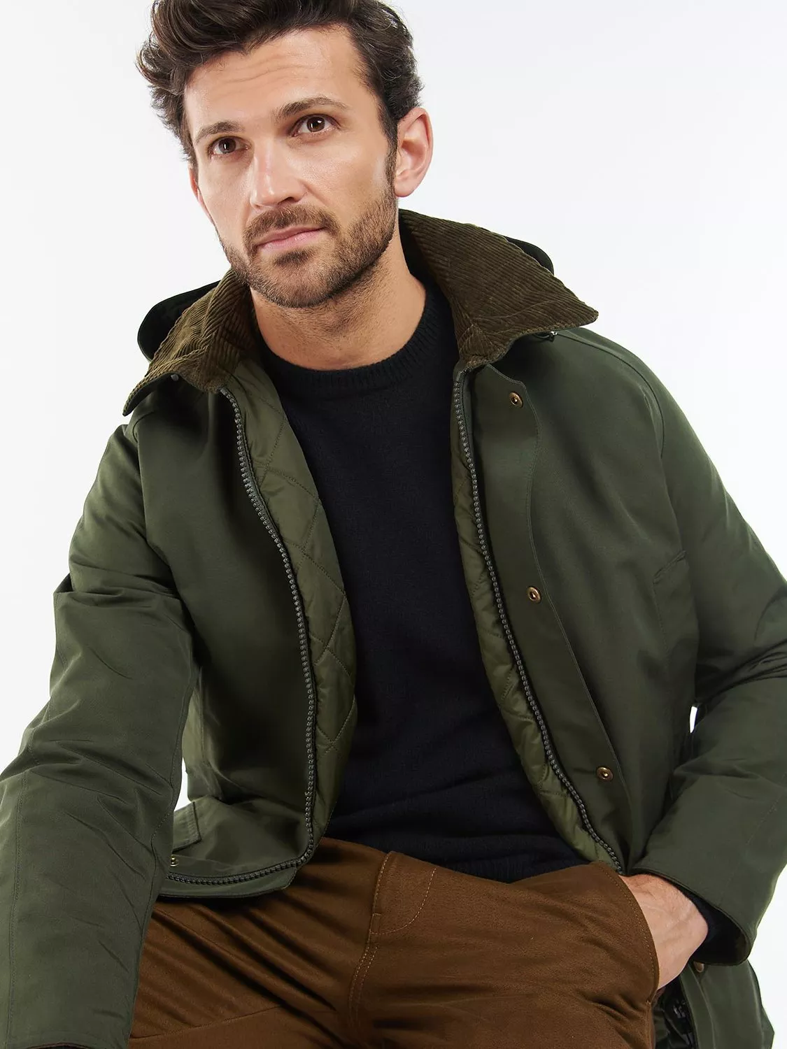 Combat unexpected downpours in perfect style with this field jacket from Barbour.