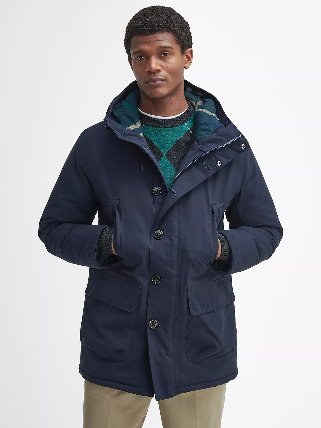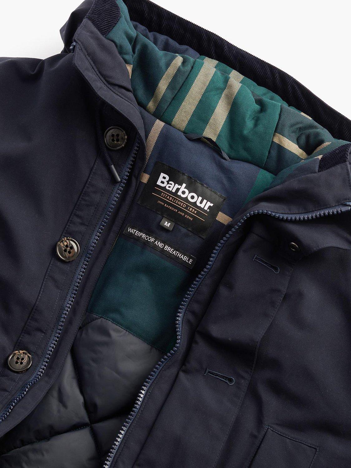 Offering uncompromising style and practical protection on rainy days reach for this parka from Barbour.