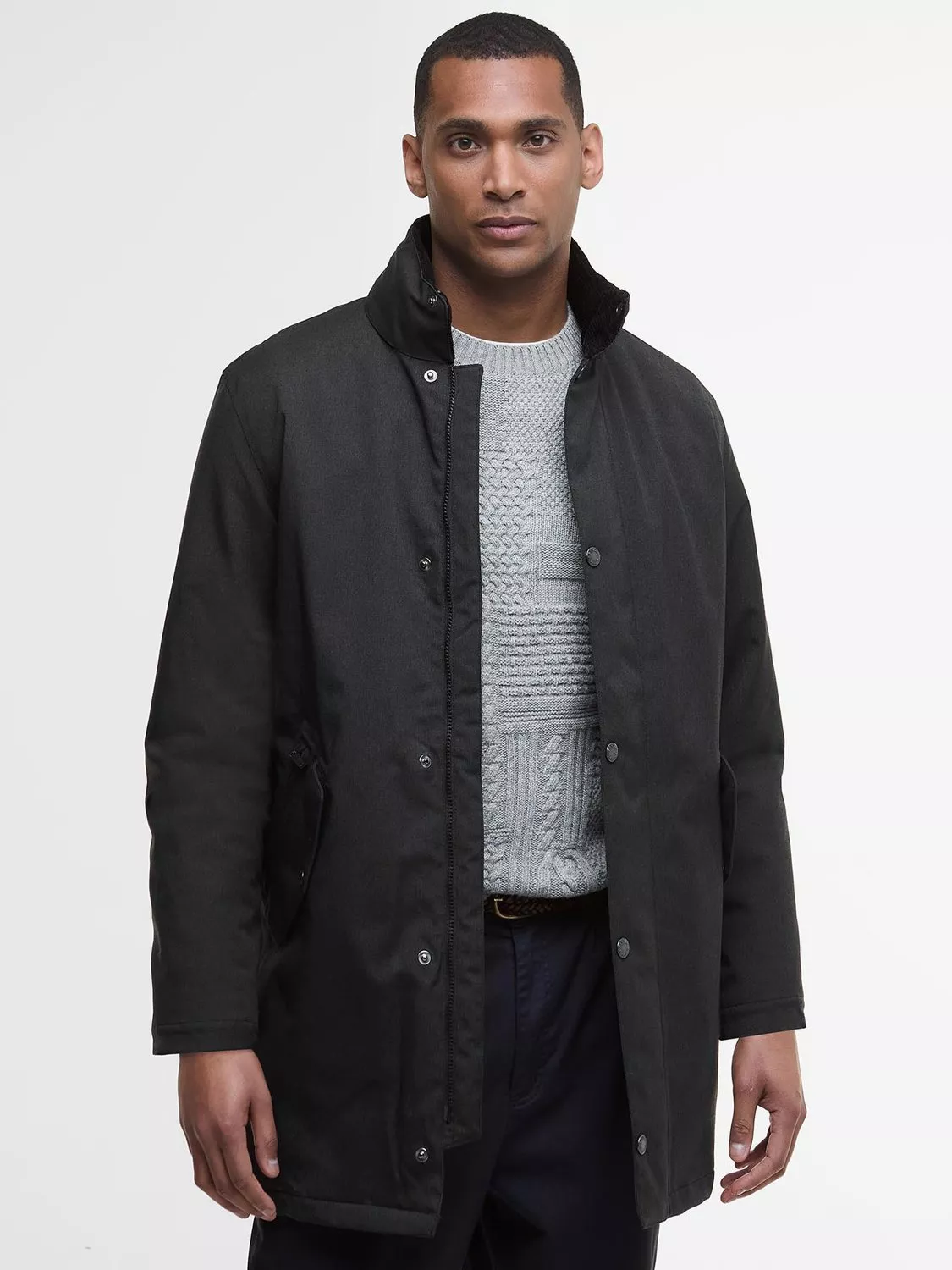 Built for the outdoors without compromising on style, the Barbour Winter Powell Waterproof Jacket boasts a Chelsea-style silhouette that proves a firm favourite year after year. Two practical front pockets offer plenty of room to carry essentials, with an additional zipped pocket to safeguard valuables.