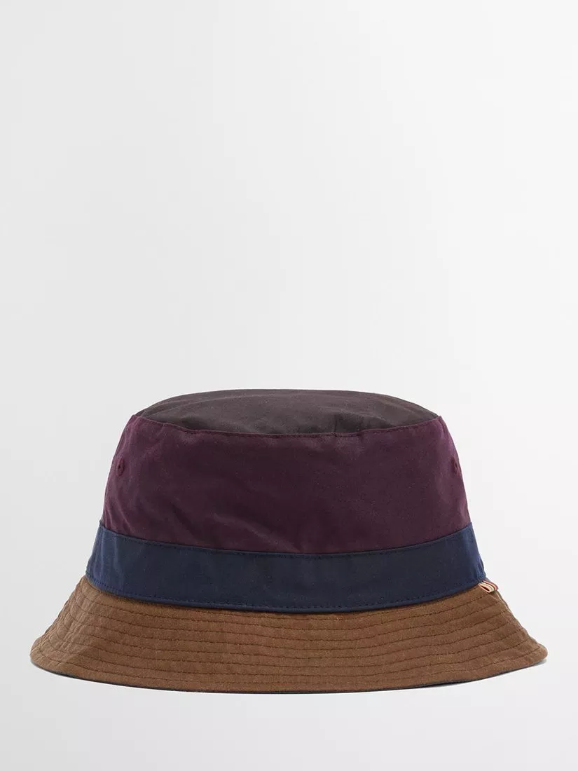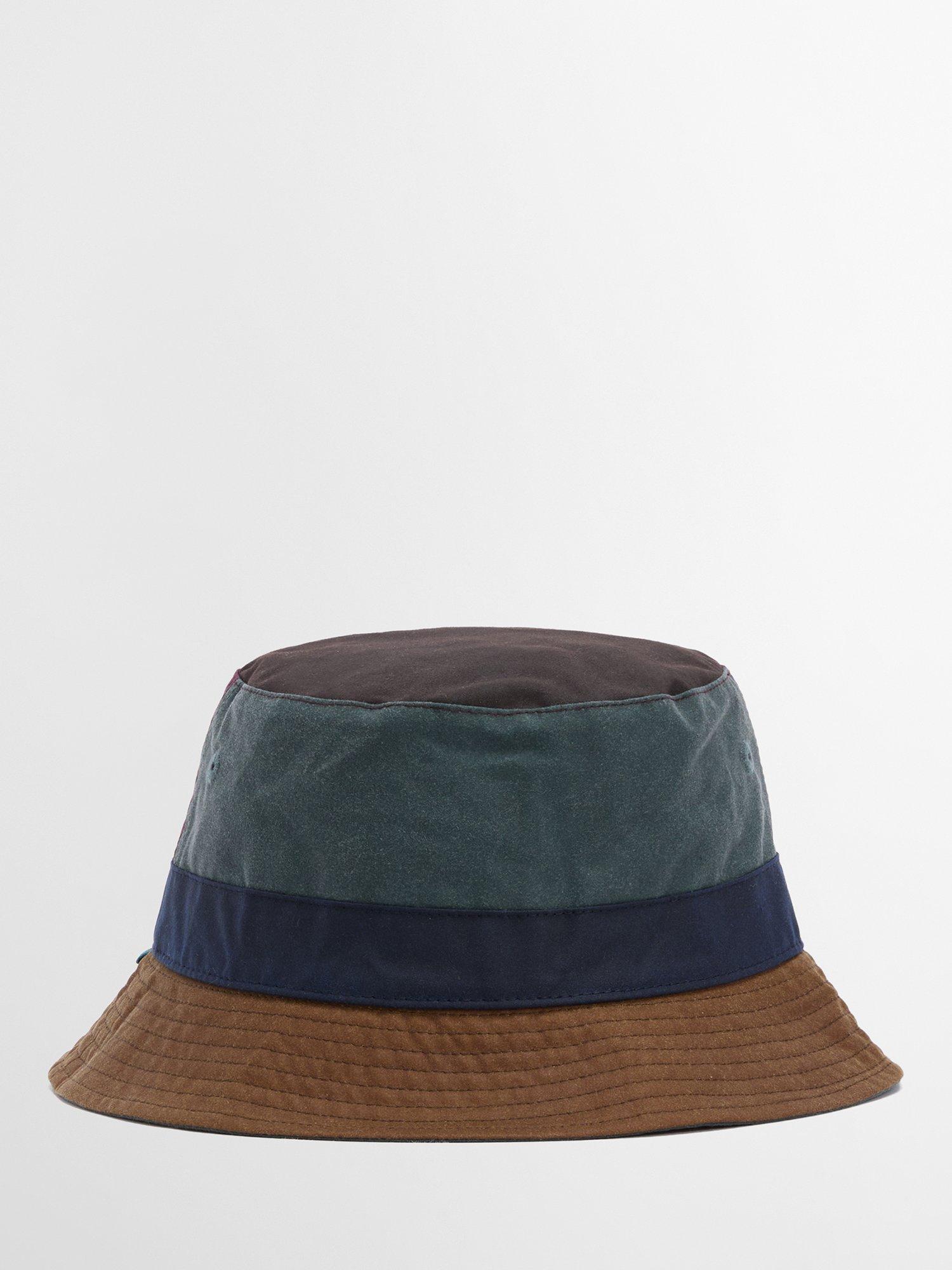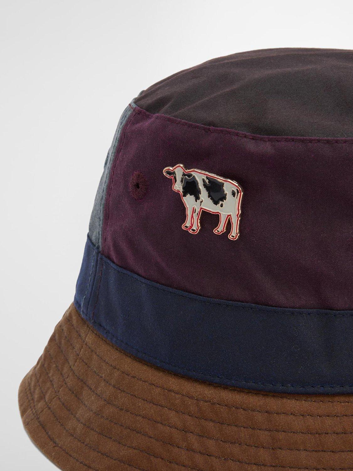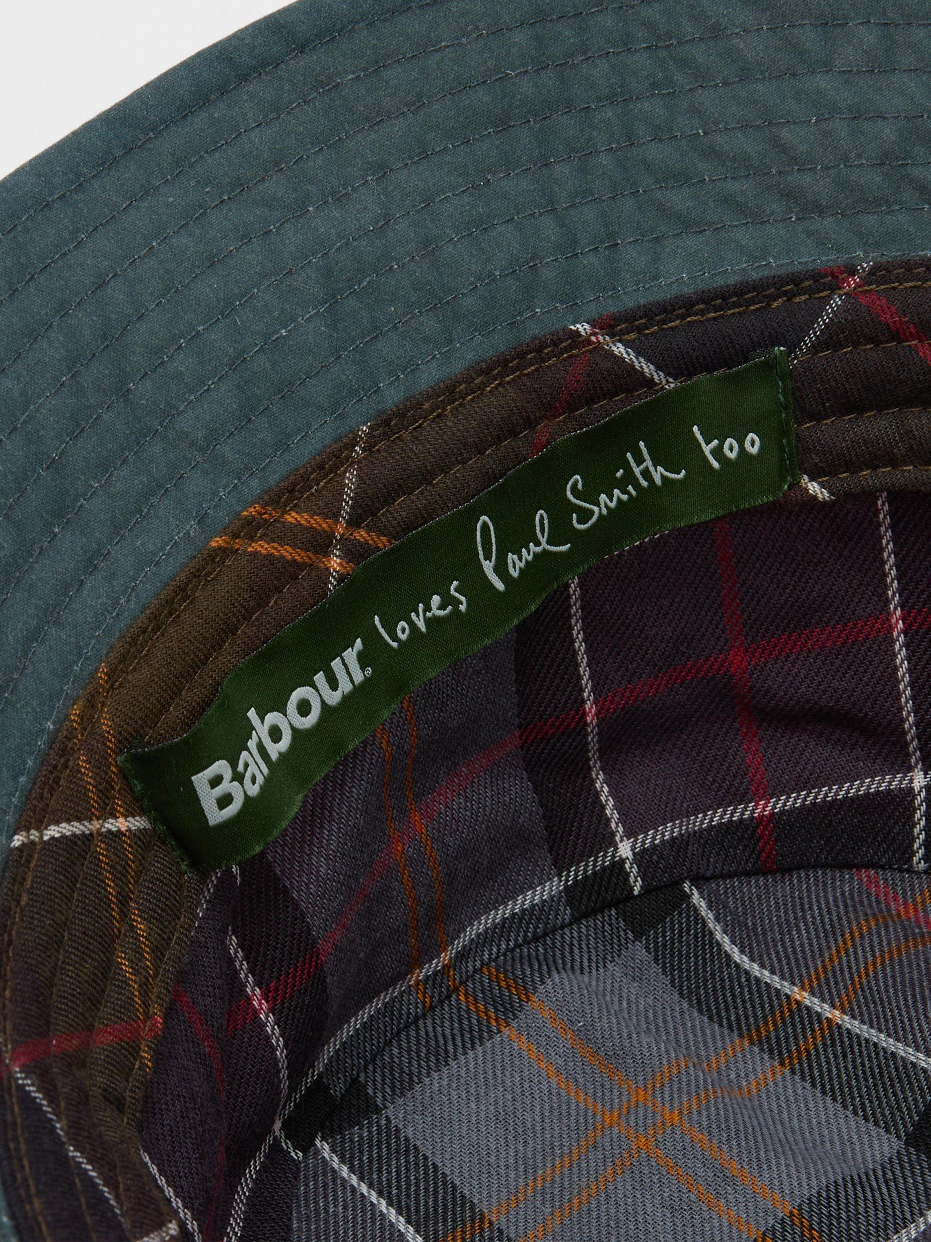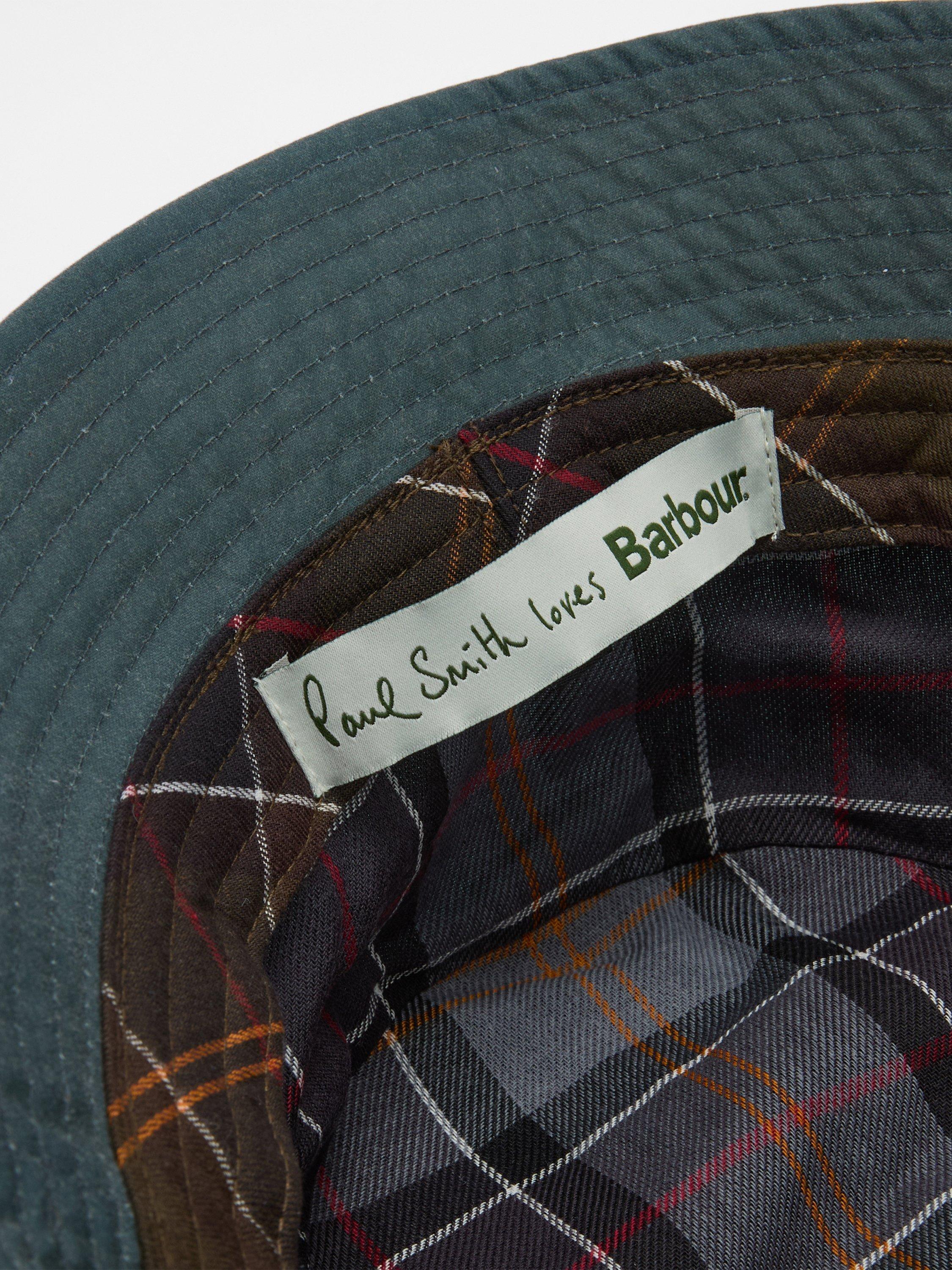 The Barbour x Paul Smith Waxed Bucket Hat is where countryside charm meets unmistakeable flair. Crafted from Barbour's signature waxed cotton, this unique bucket hat boasts contrasting panels for a touch of distinction and stitched brim detail for an elevated finish. The quirky cow pin badge adds a final playful twist and tips the hat to Paul Smith's irreverent trademark style. Whether you're braving the drizzle or making a bold style statement, this waxed bucket hat has you covered. Pair it with your favourite jacket or coat for a look that’s as practical as it is effortlessly cool.