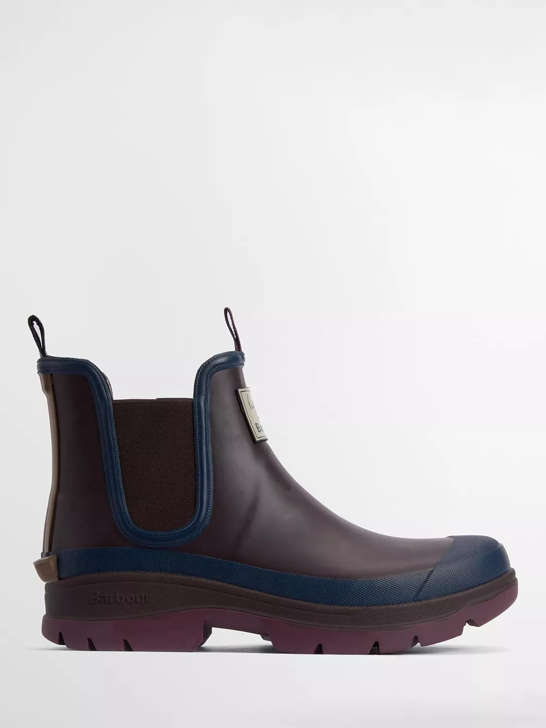 A British must-have with a sense of style, this pair of Chelsea-style wellington boots from Barbour is made from hard-wearing rubber to tackle the elements with ease. Resting on a flat heel, they are rounded off at the toe for a timeless finish.