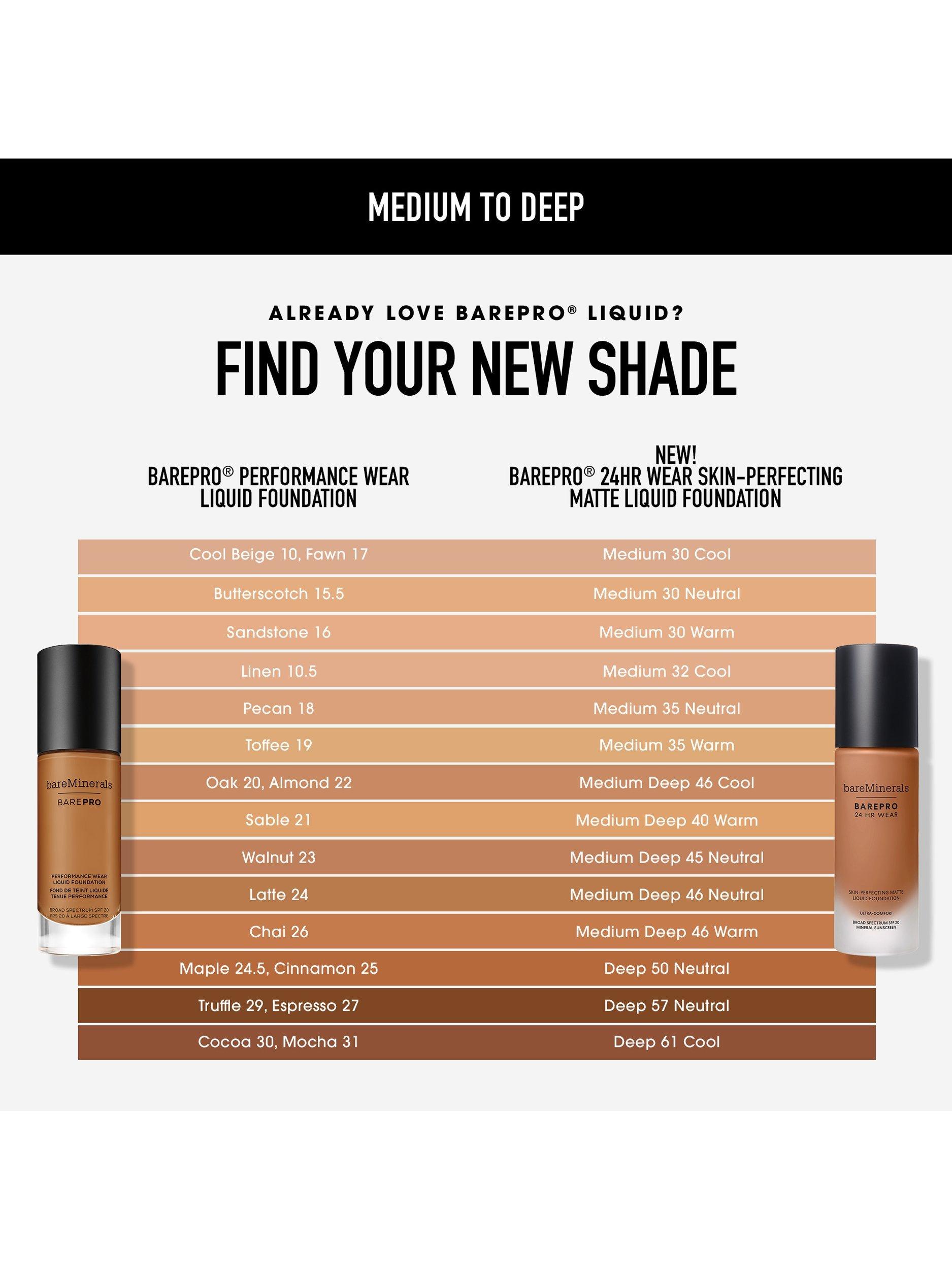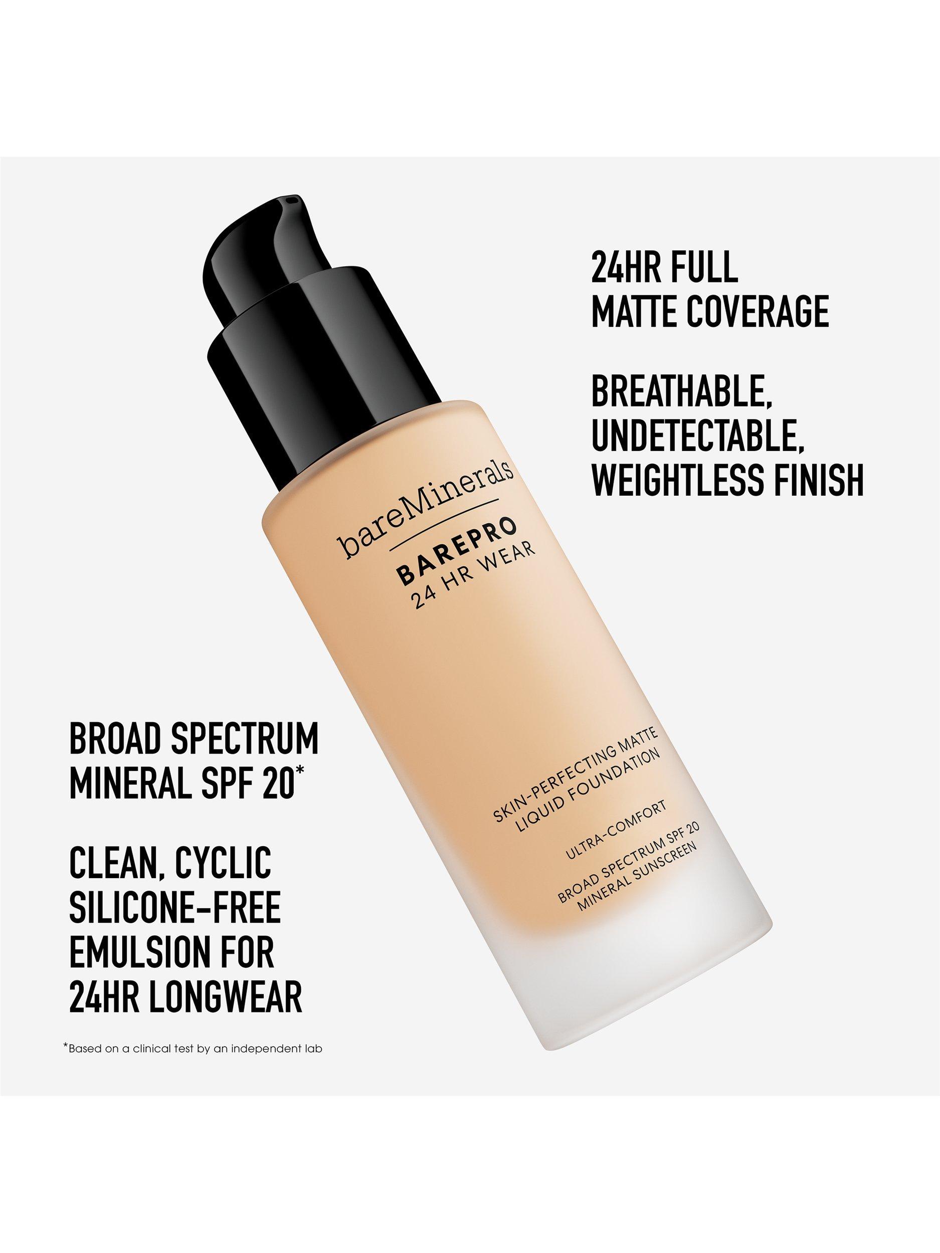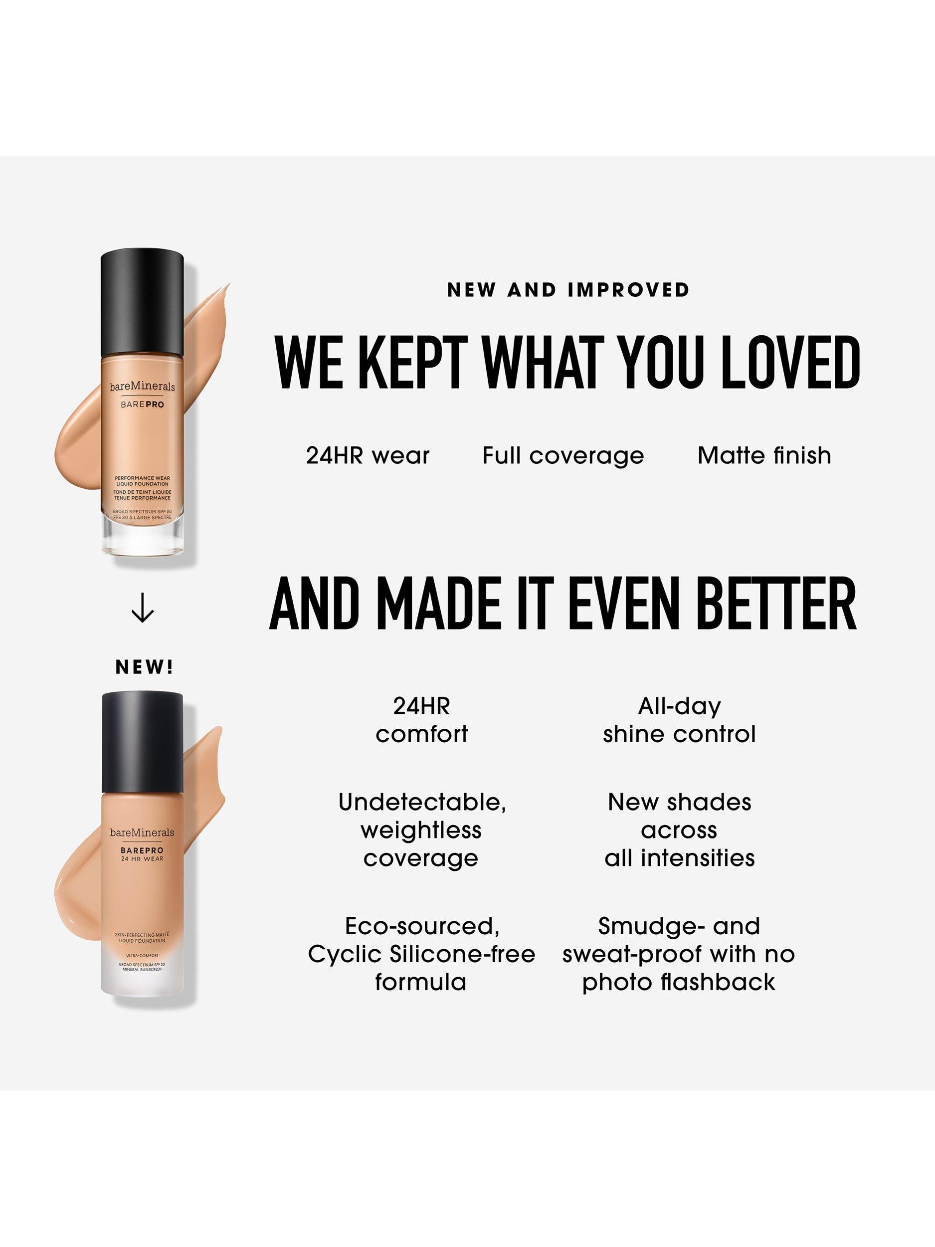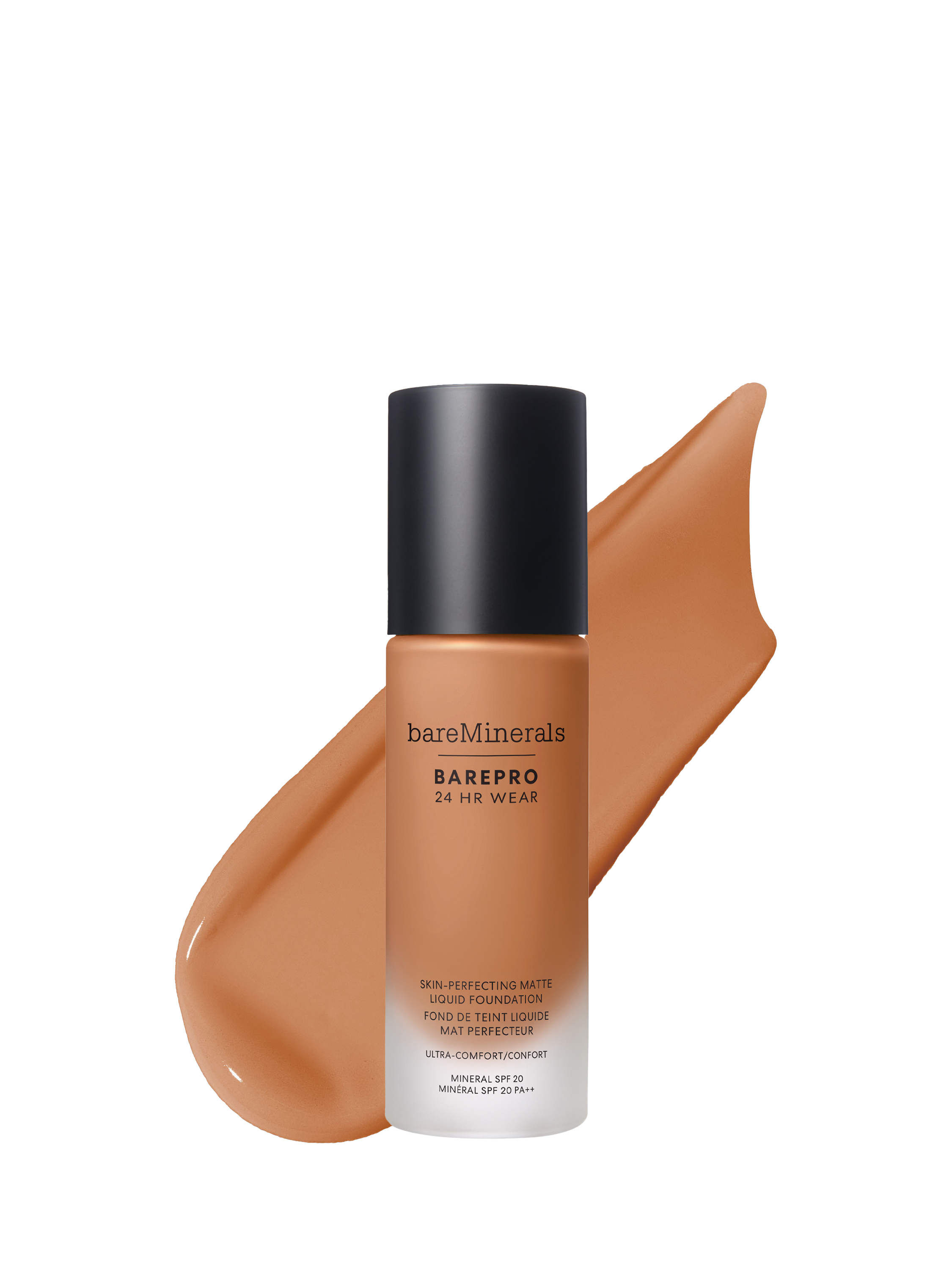 New BAREPRO™ 24HR Wear liquid foundation with a unique formula saturated with skin tone-mimicking pigments, oil-absorbing minerals, and skin-loving ingredients to provide breathable, undetectable, stay-true coverage. 24HR matte wear + 24HR comfort*.