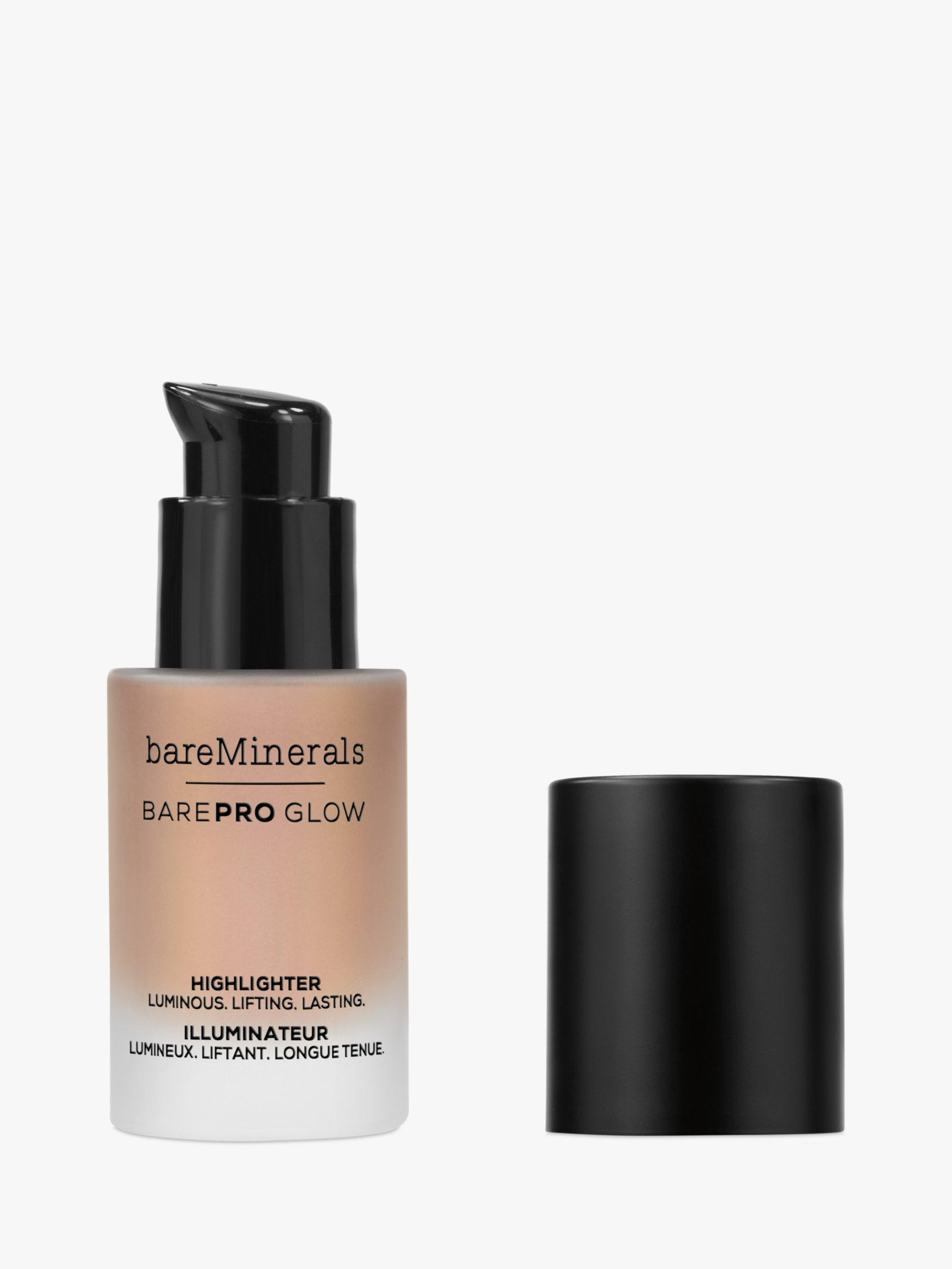 - Using ring finger, dot BAREPRO Glow Highlighter in a half moon shape from cheekbones up to brow bones and blend in with fingers or synthetic brush (Recommended Brush: Dual Finish Blush & Contour) for a focused glow on high points of face. Build up more layers for a more intense glow. Pro Tip: Apply a tiny amount to the top of the V of your cupid's bow to create the illusion of fuller lips.