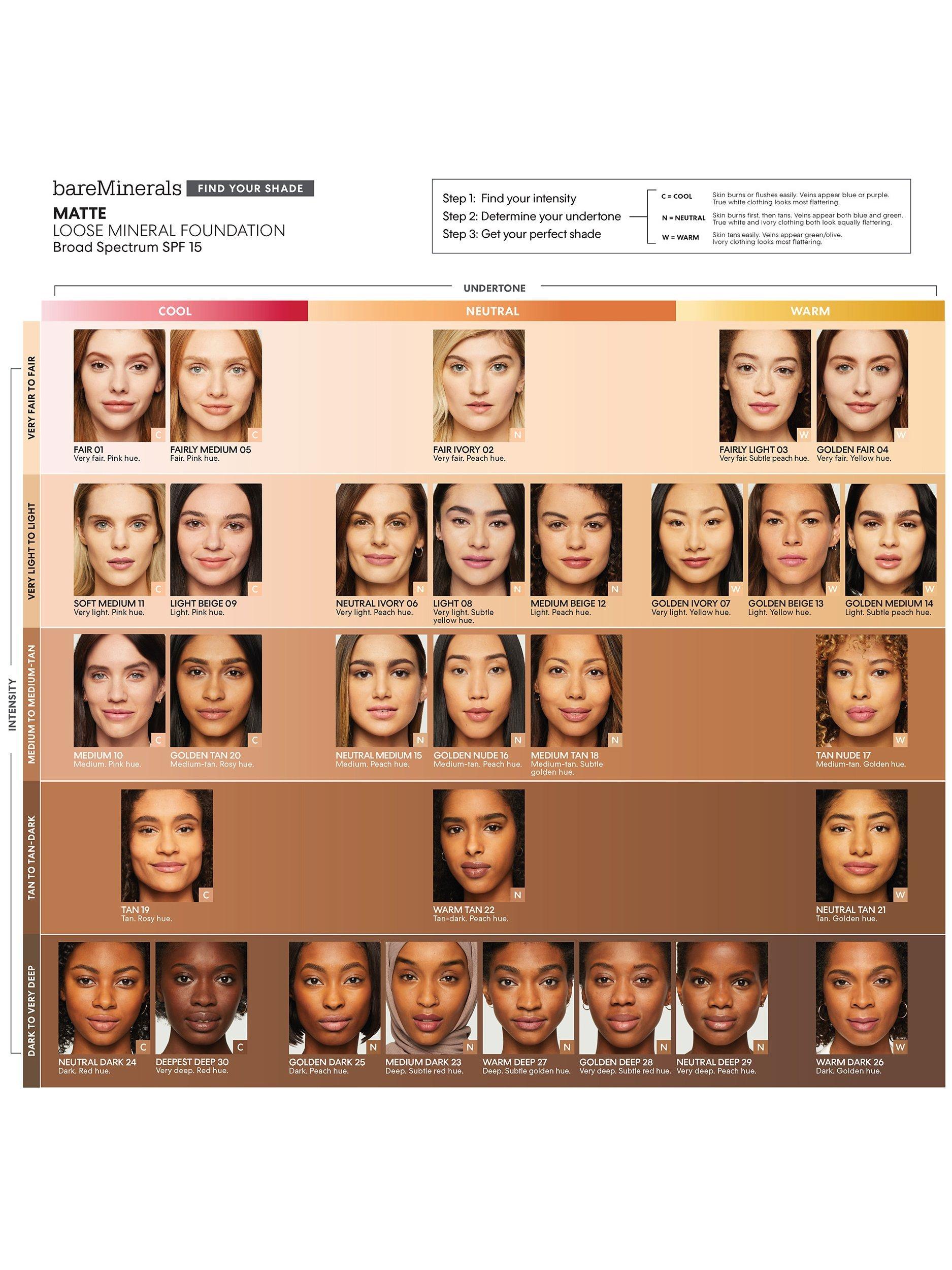 A clean, loose mineral foundation that delivers buildable, sheer-to-full coverage with a matte finish while helping to control excess oil.