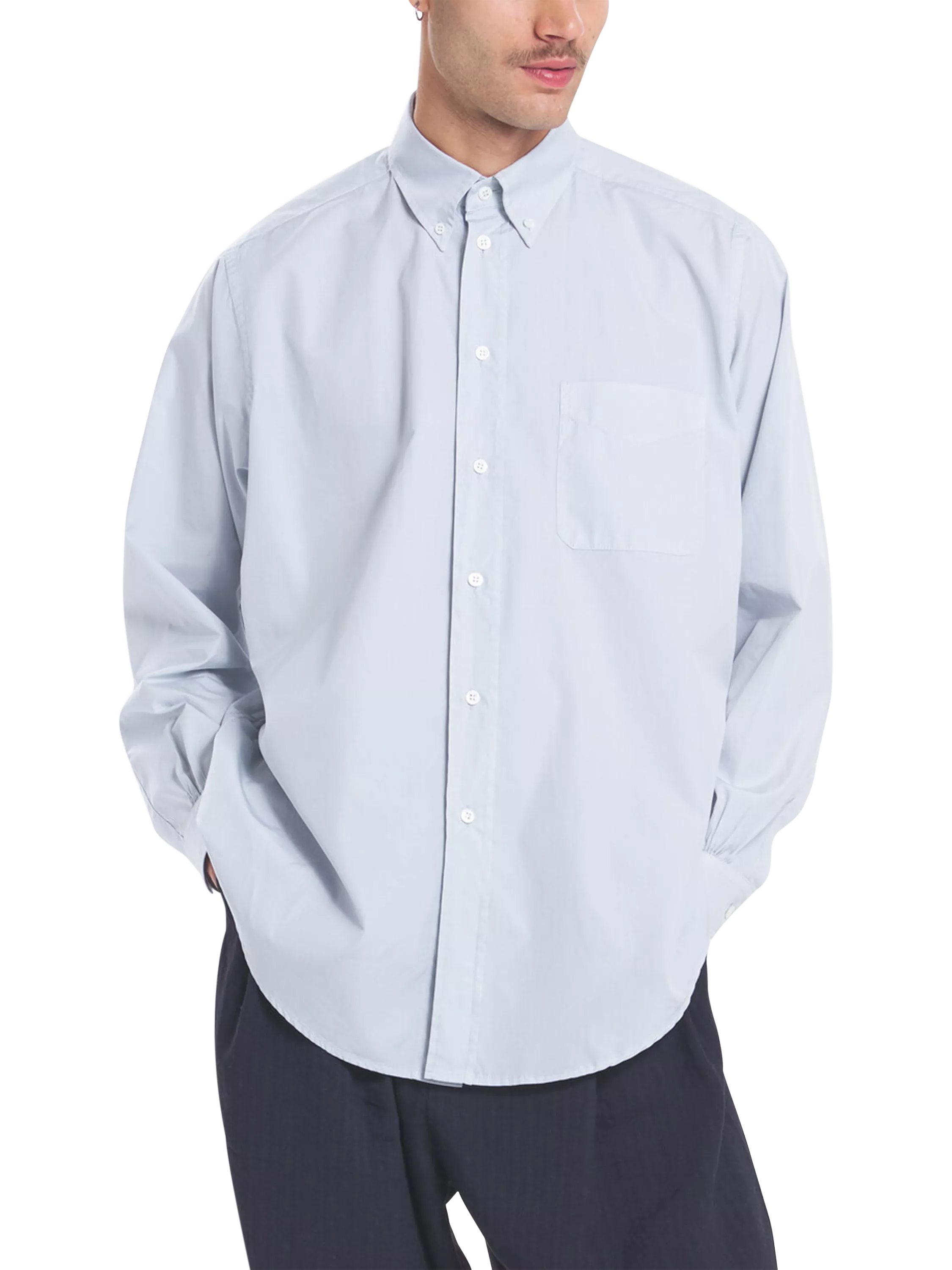 This garment-dyed cotton shirt serves as an extension of the brand's established association with modern workwear. It features a button-down collar and a single chest pocket, with both adding a utilitarian edge to the timeless silhouette.