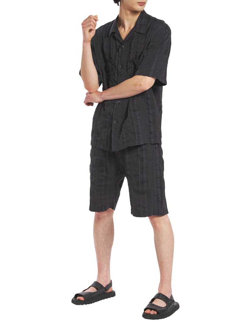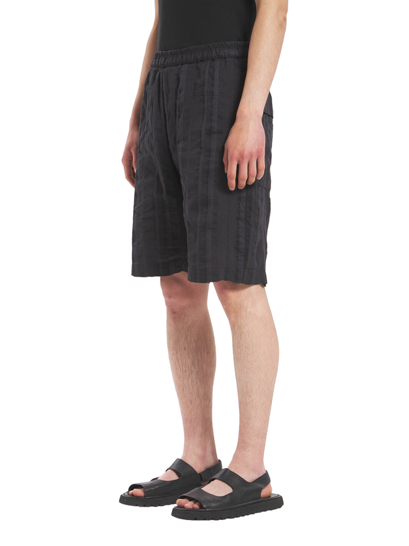In a comfort fit these jogger shorts are made in linen-cotton, garment washed fabric with an exclusive crinkle stripe pattern.