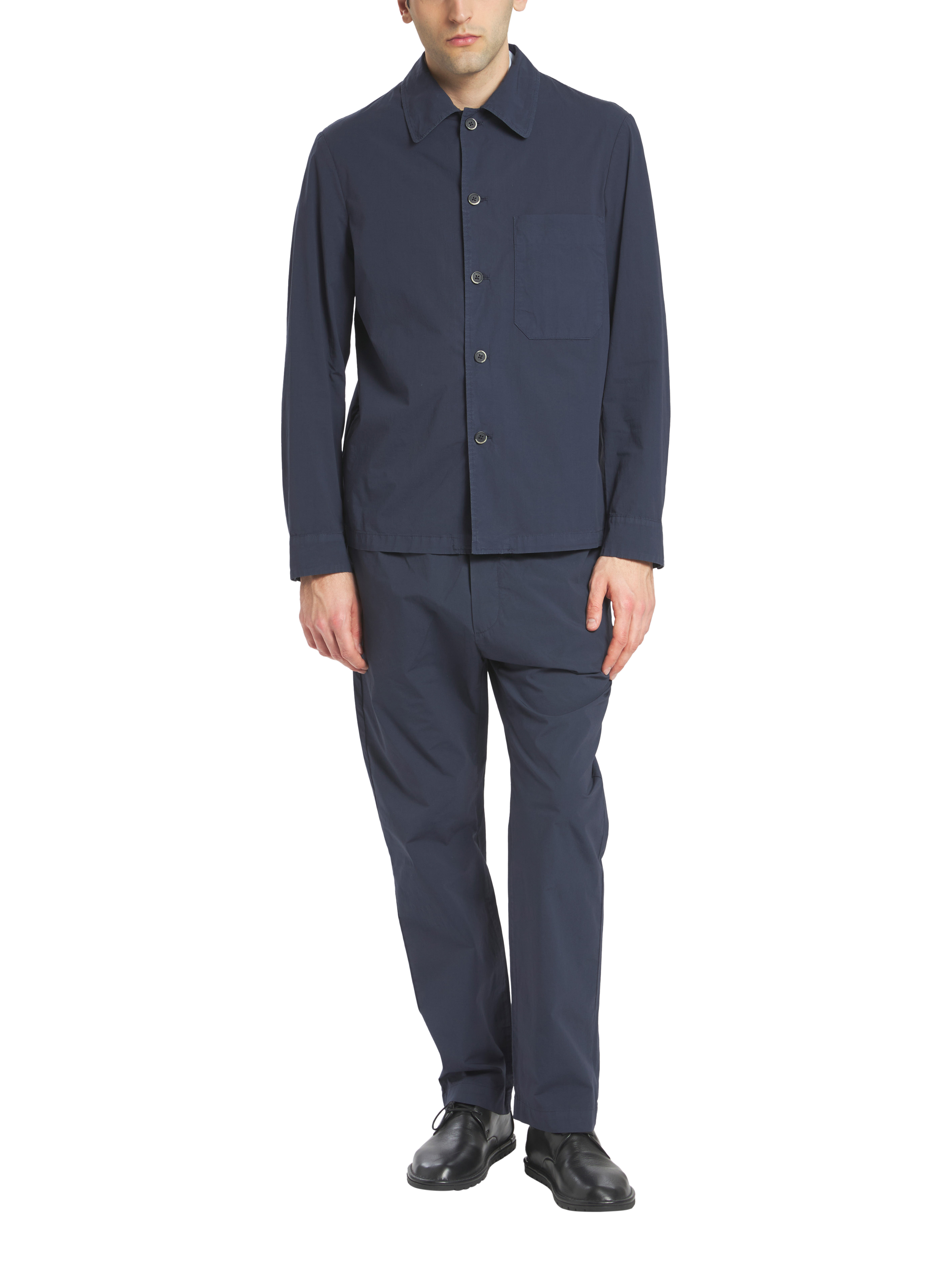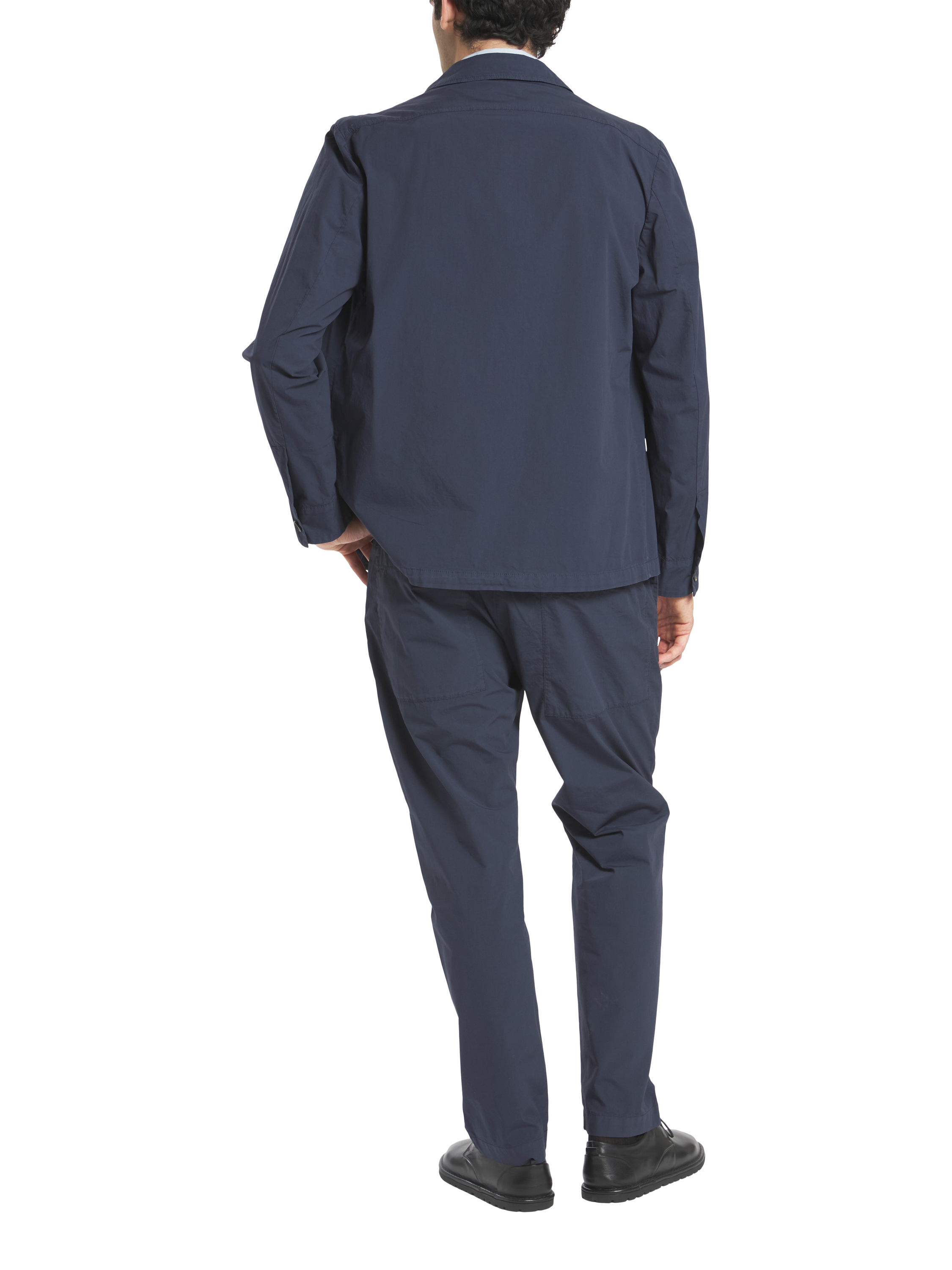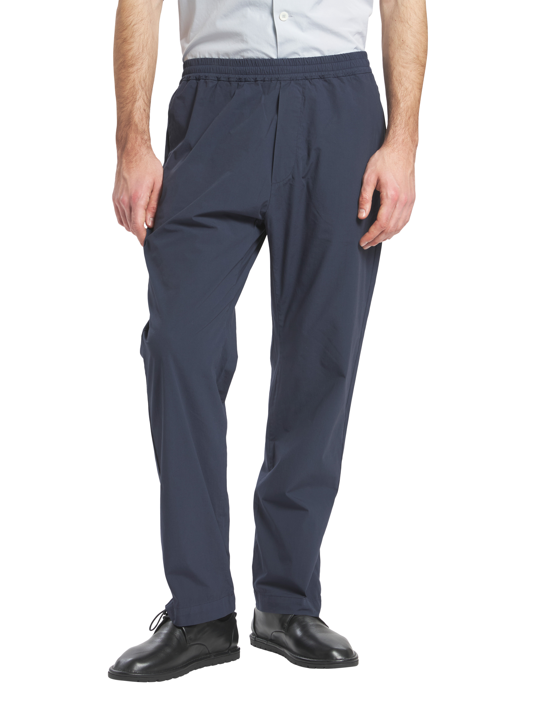 Trimmed jogger trousers shaped for a comfortable fit, featuring an elasticated drawstring waistband and back patch pockets. They are cut for a comfortable fit with a regular leg length and a low rise. Made from parachute stretch cotton, garment dyed.